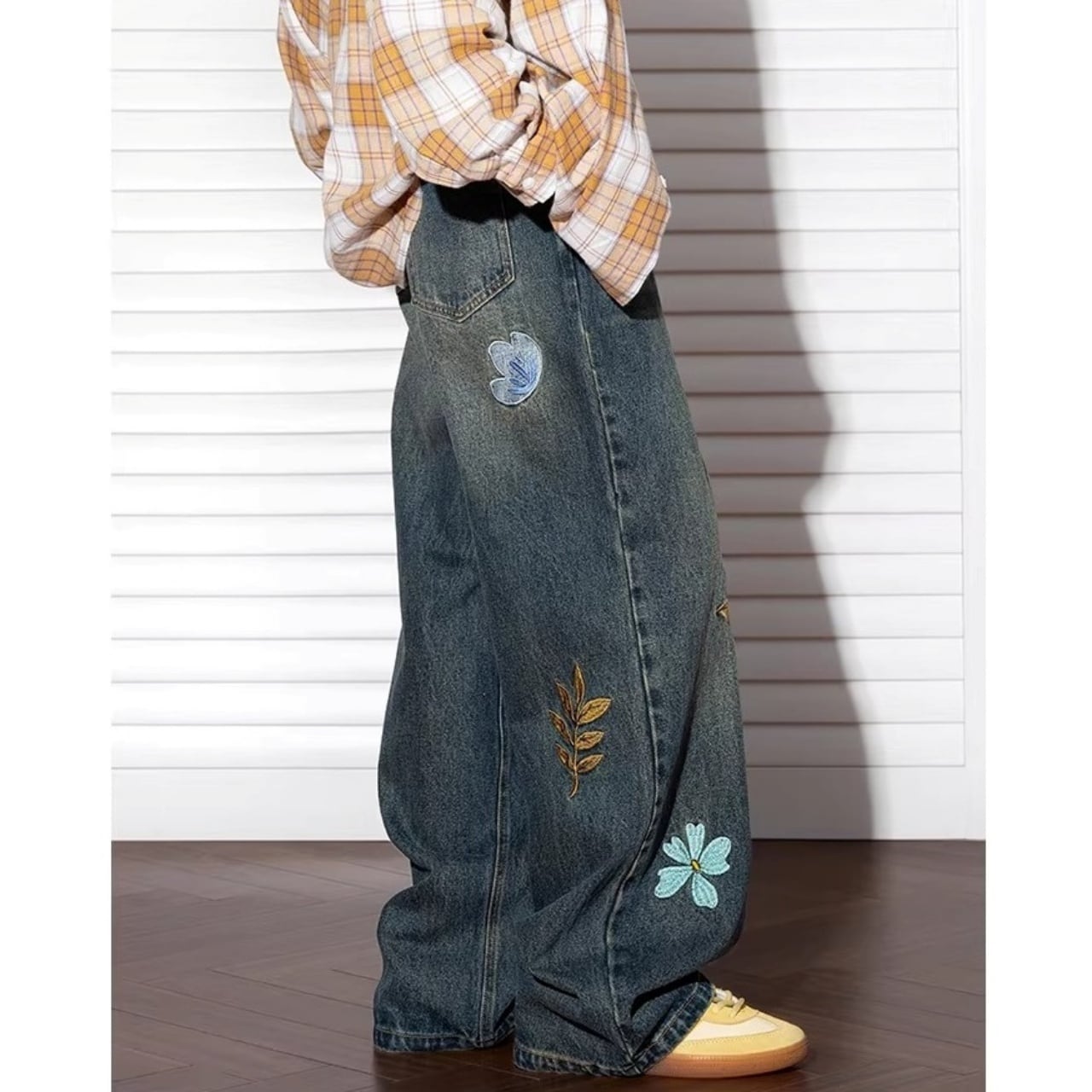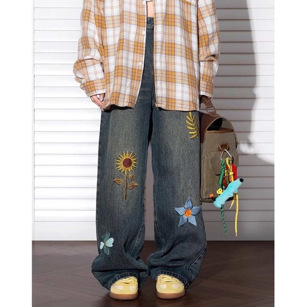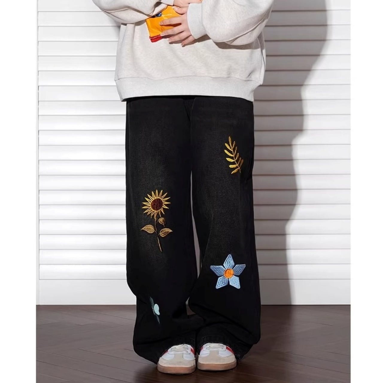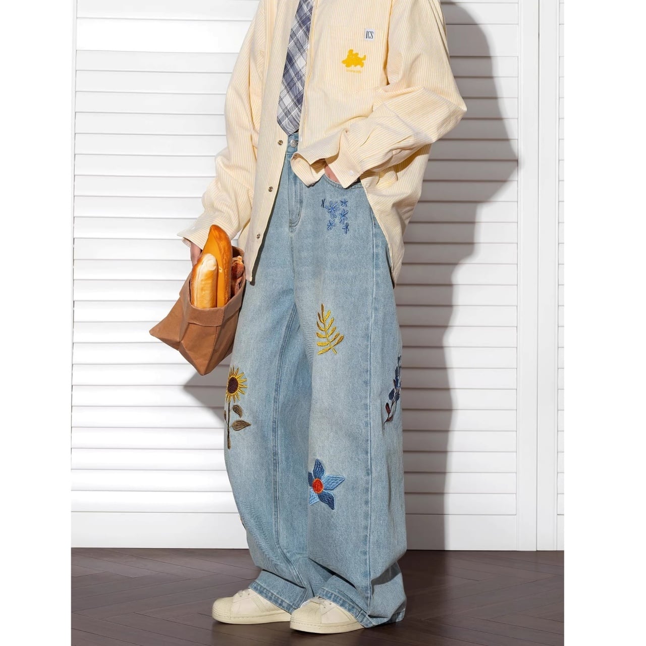 遊び心あふれるボタニカルなモチーフを散りばめた、ポップな表情のワイドデニム。