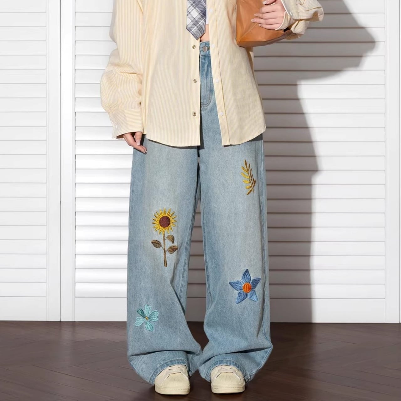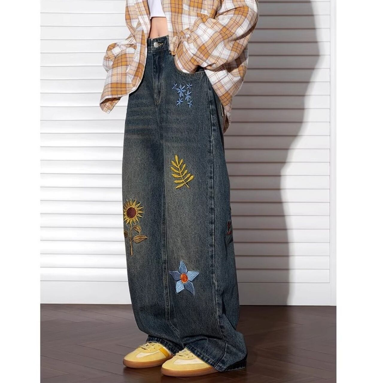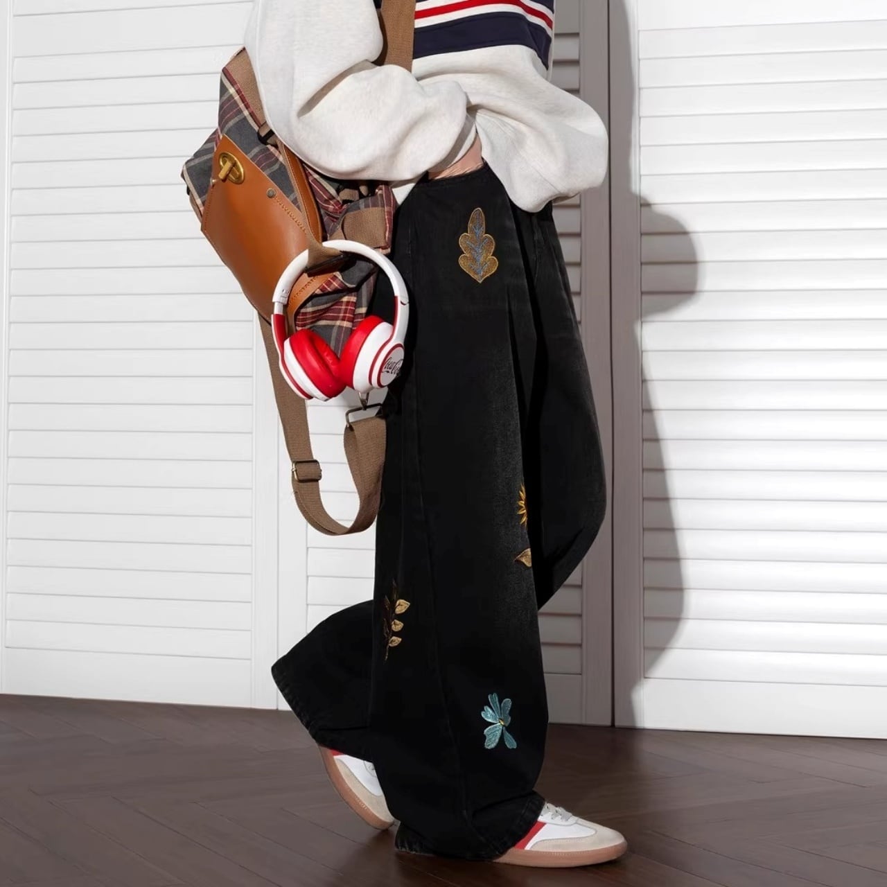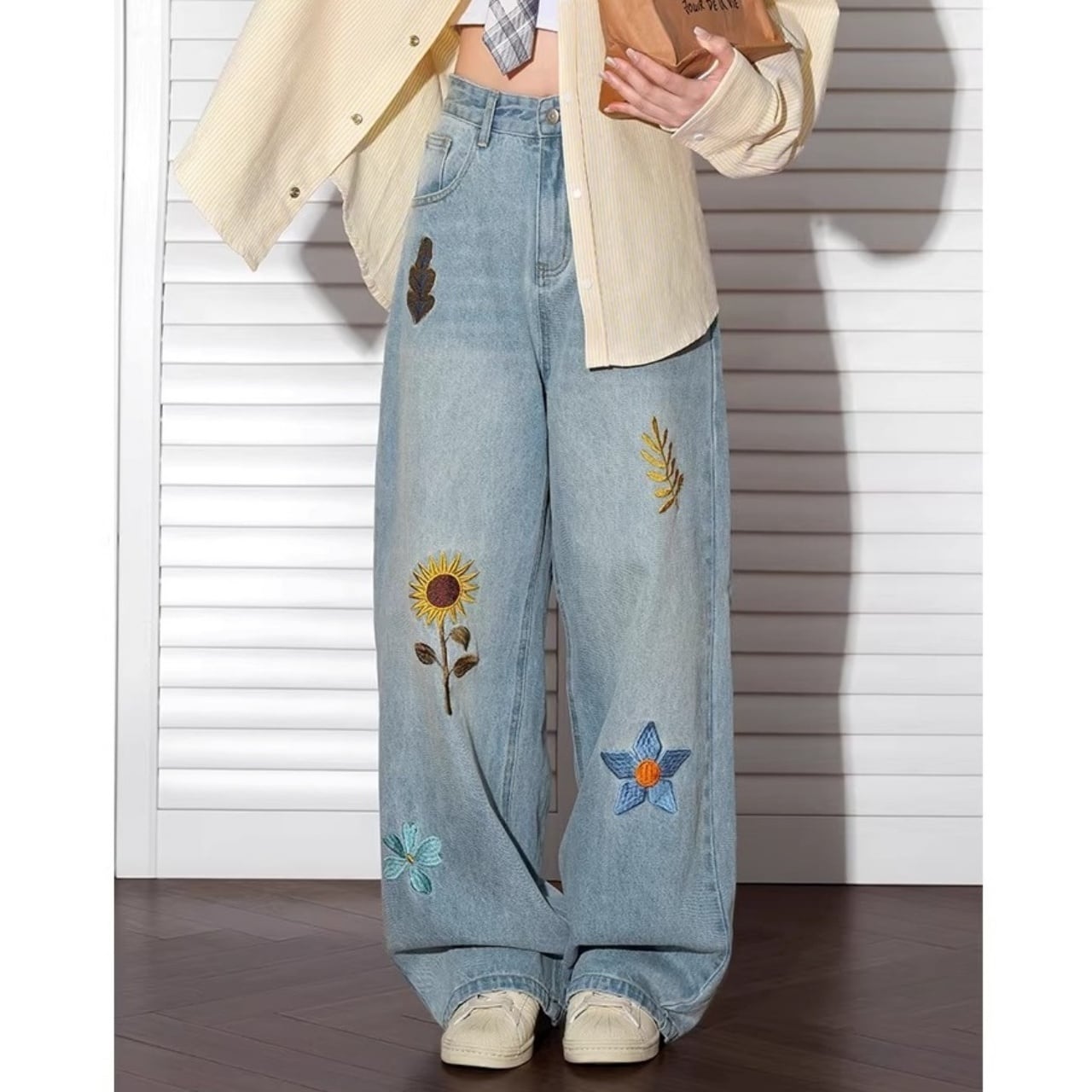 遊び心あふれるボタニカルなモチーフを散りばめた、ポップな表情のワイドデニム。