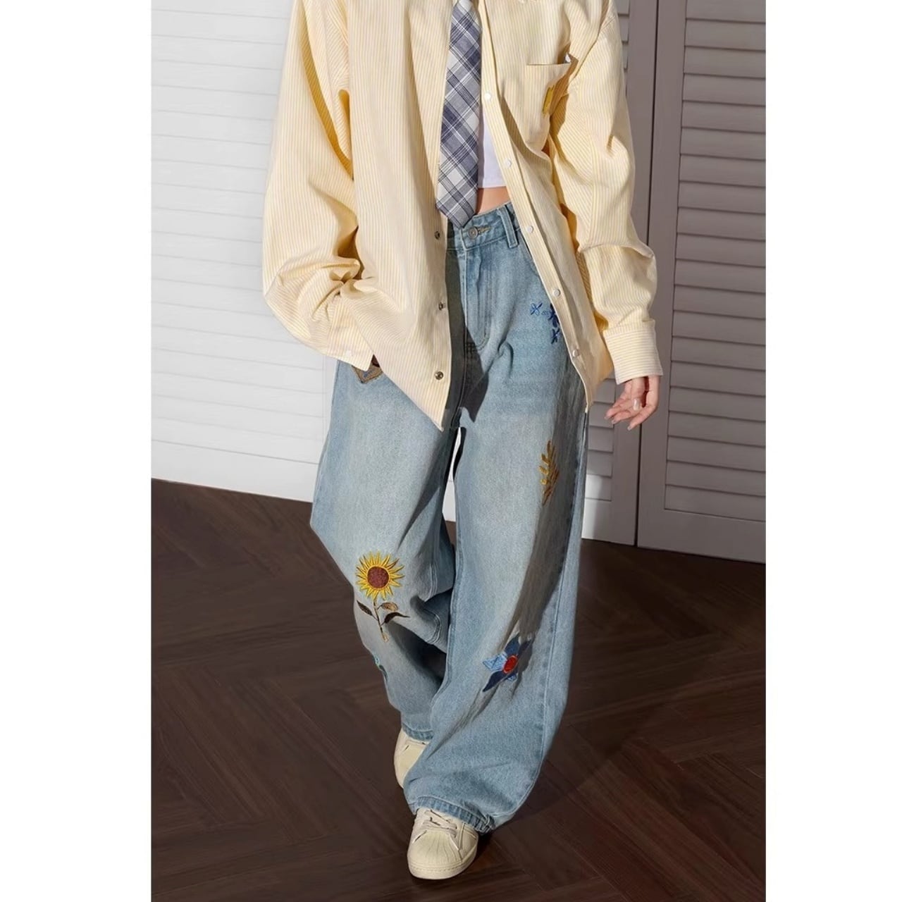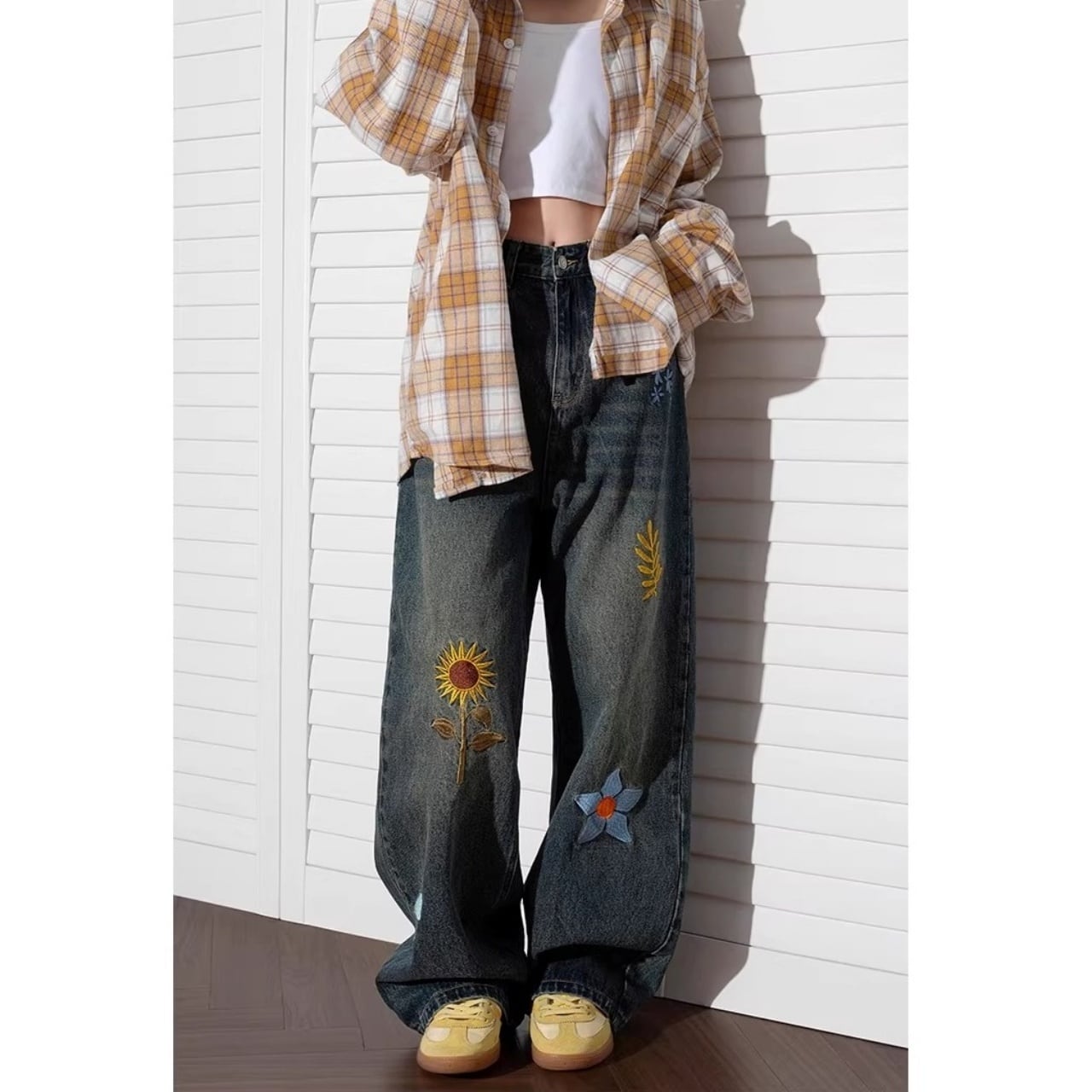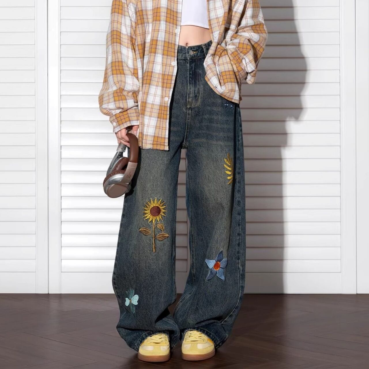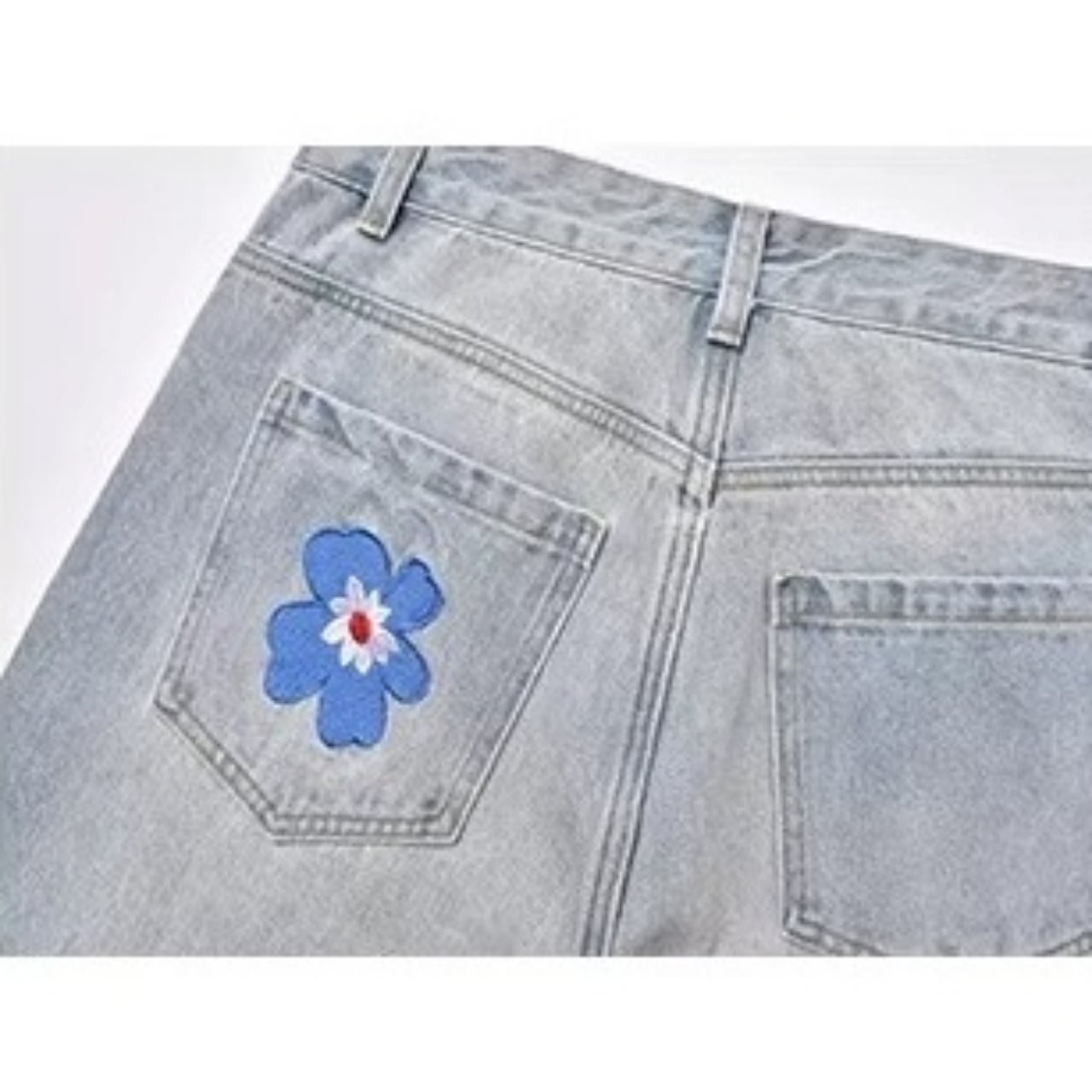 遊び心あふれるボタニカルなモチーフを散りばめた、ポップな表情のワイドデニム。