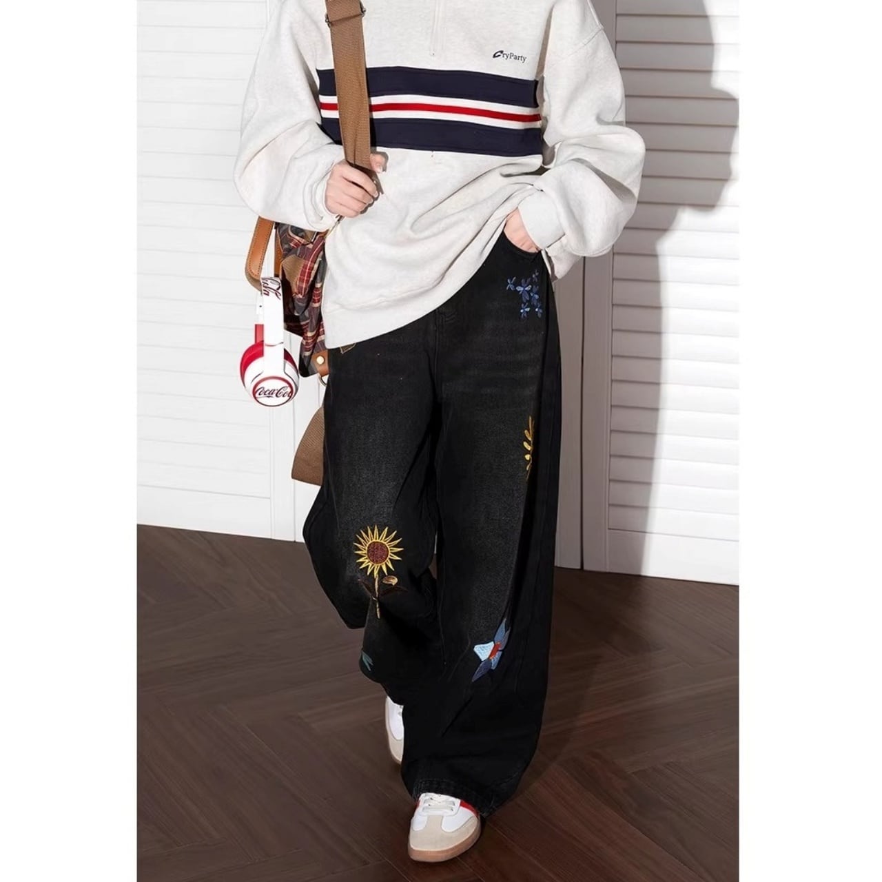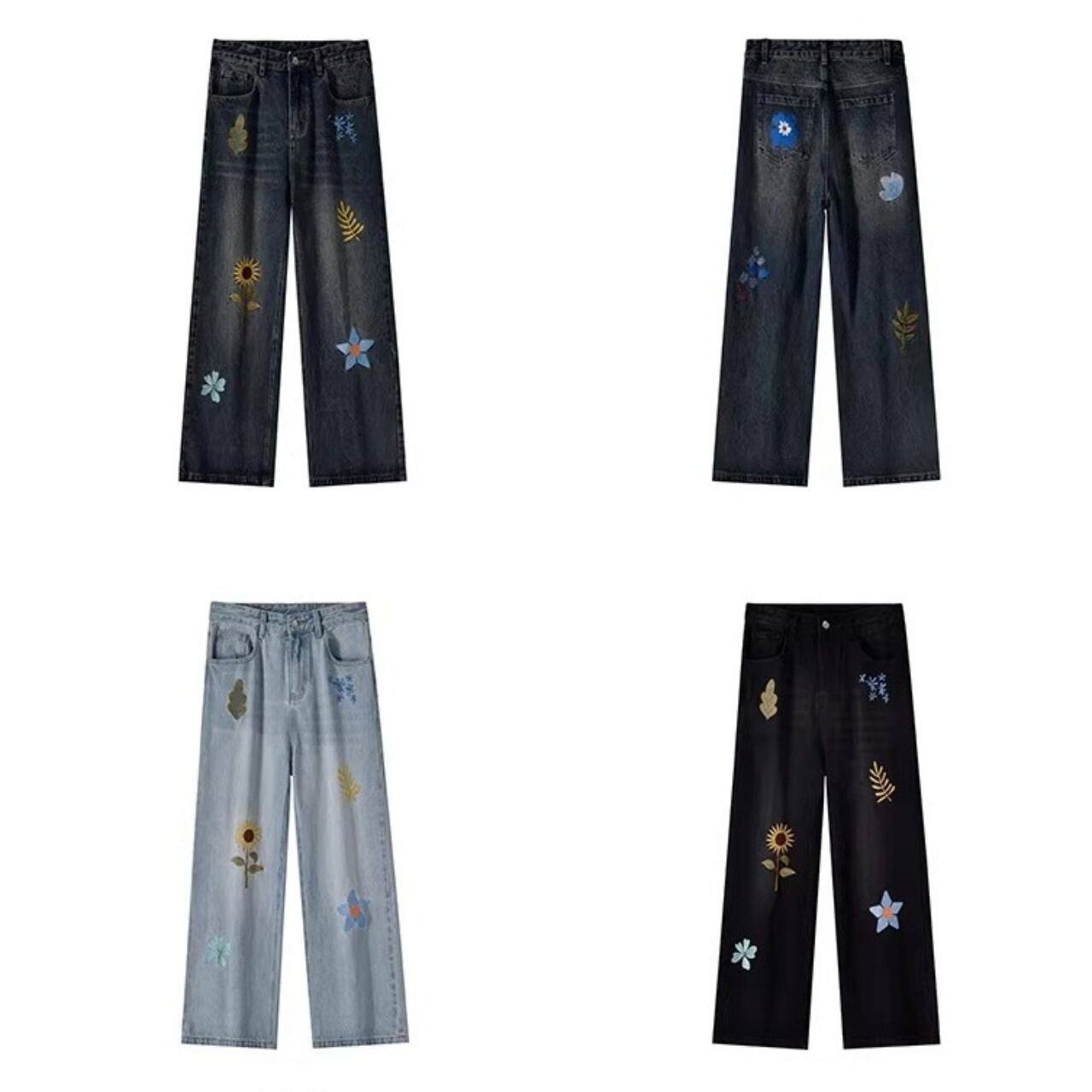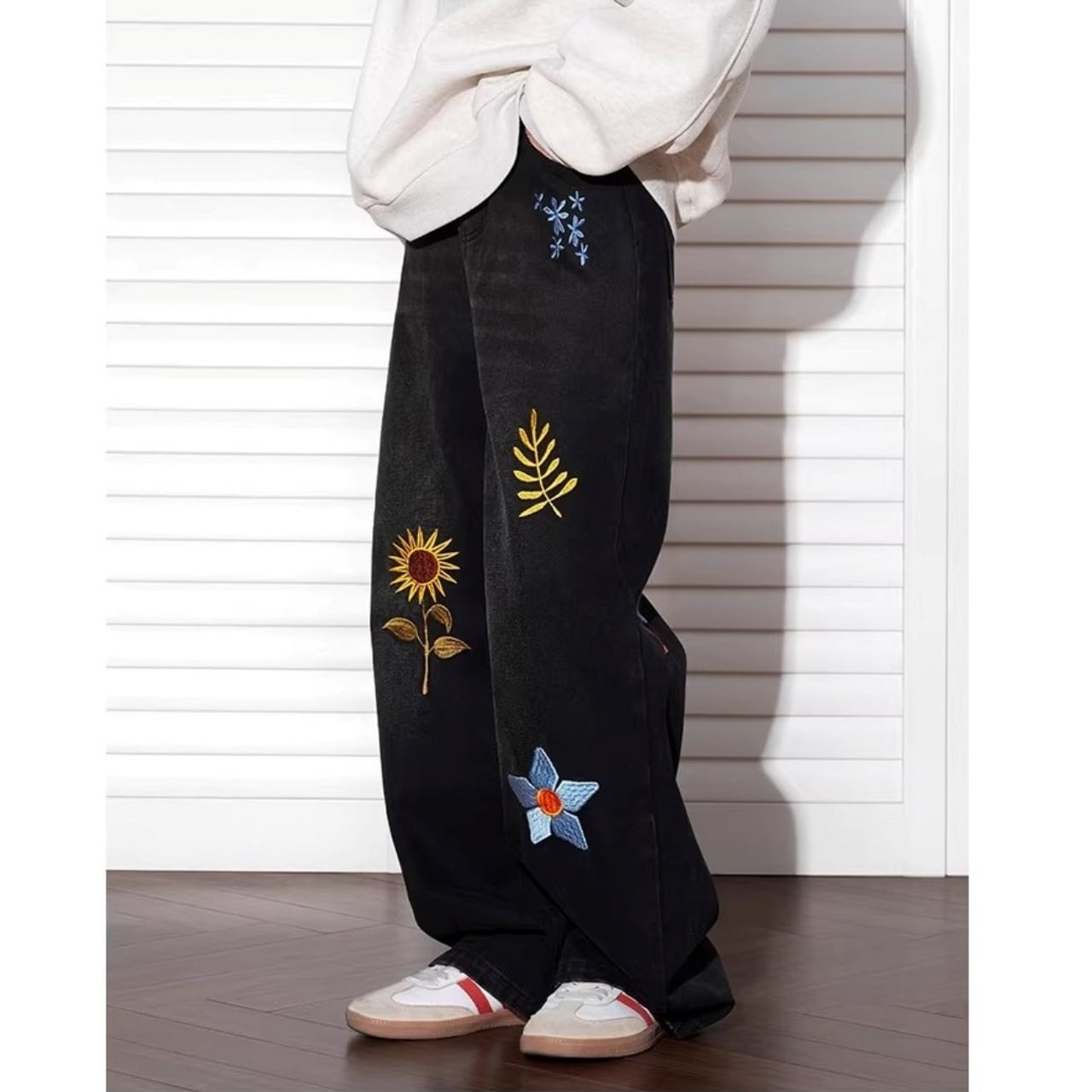 ボタニカルモチーフステッチワイドラインデニムパンツ 3col R01865