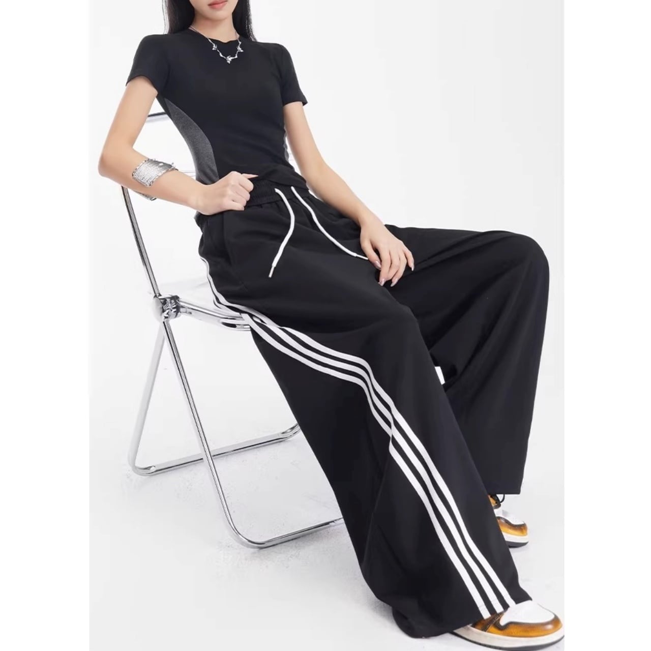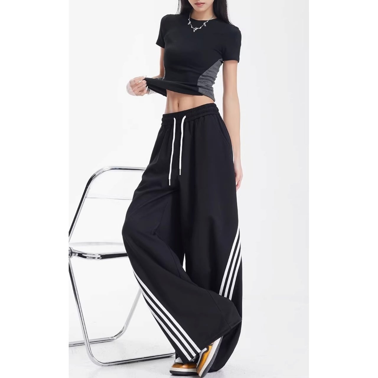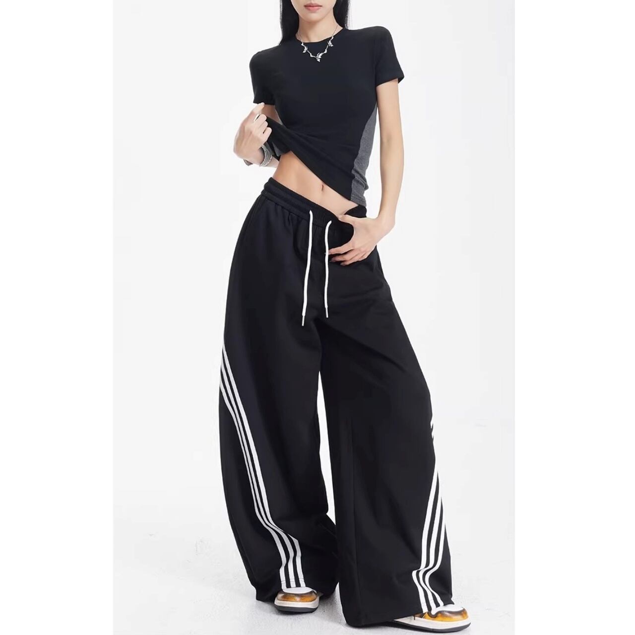 サイドライントラックワイドカーブパンツ 1col R01868