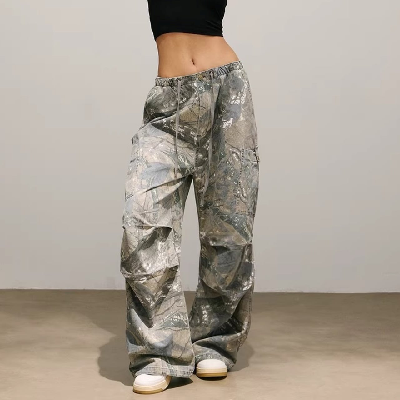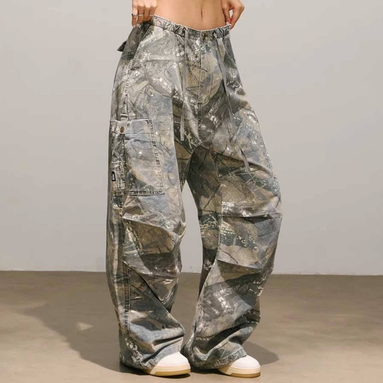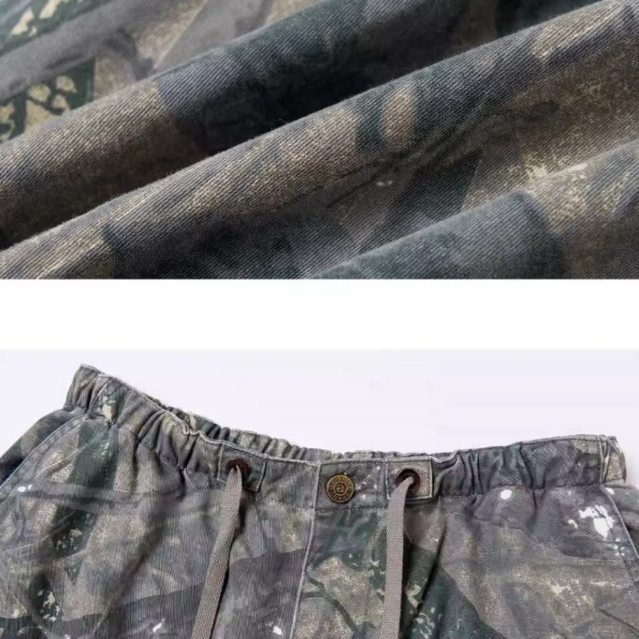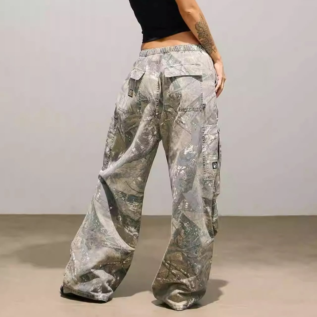 ツリーカモフラージュ柄が特徴的なフルレングスパンツ。