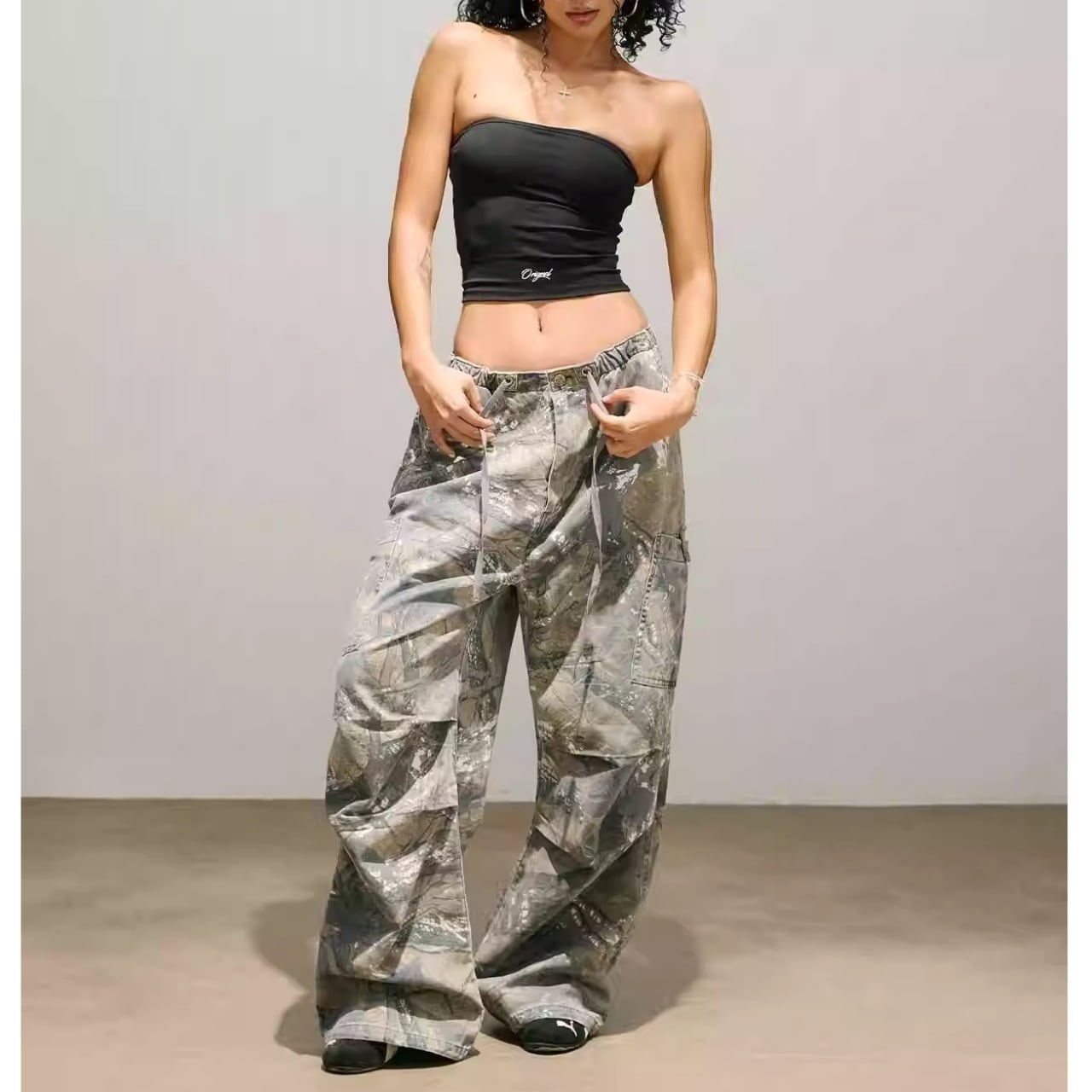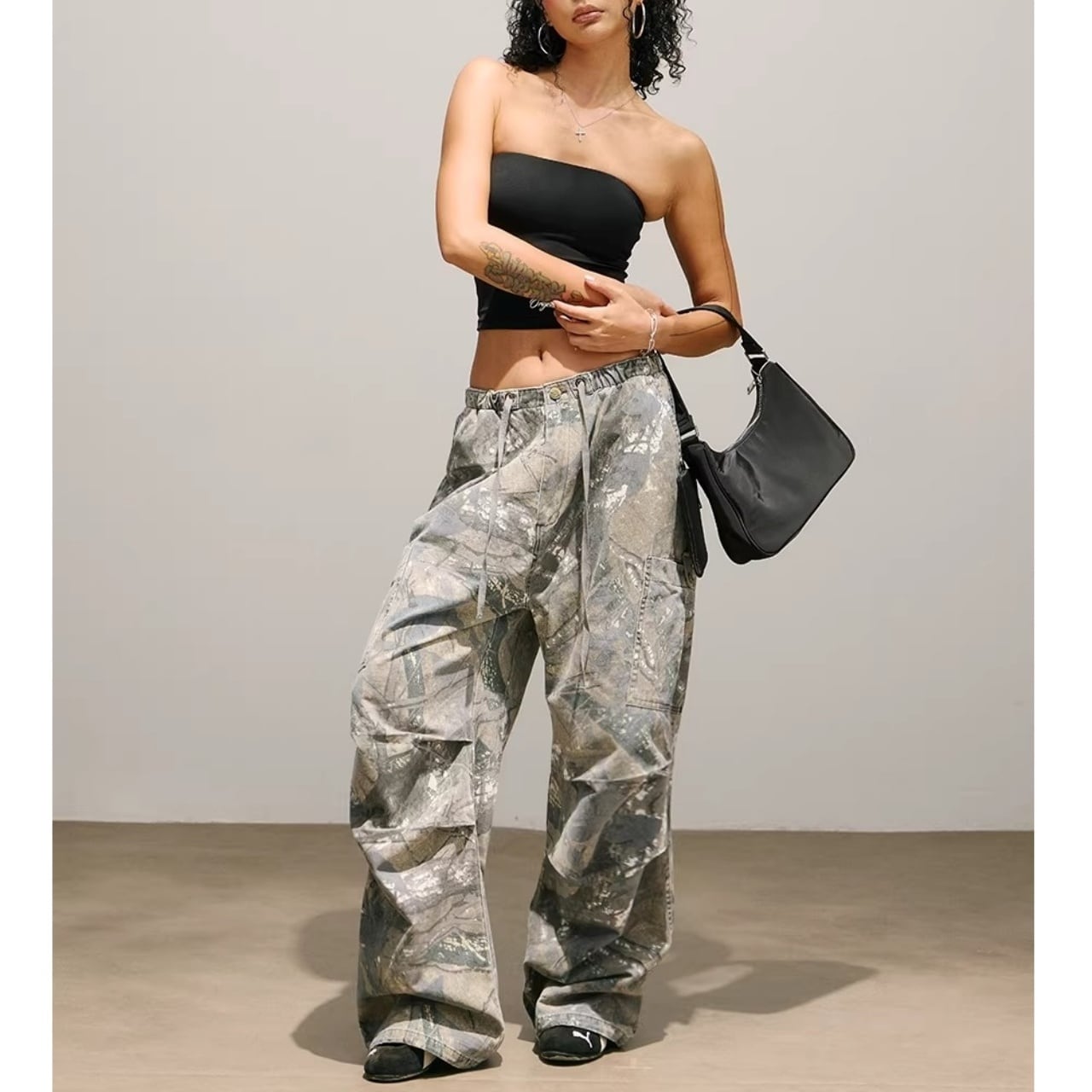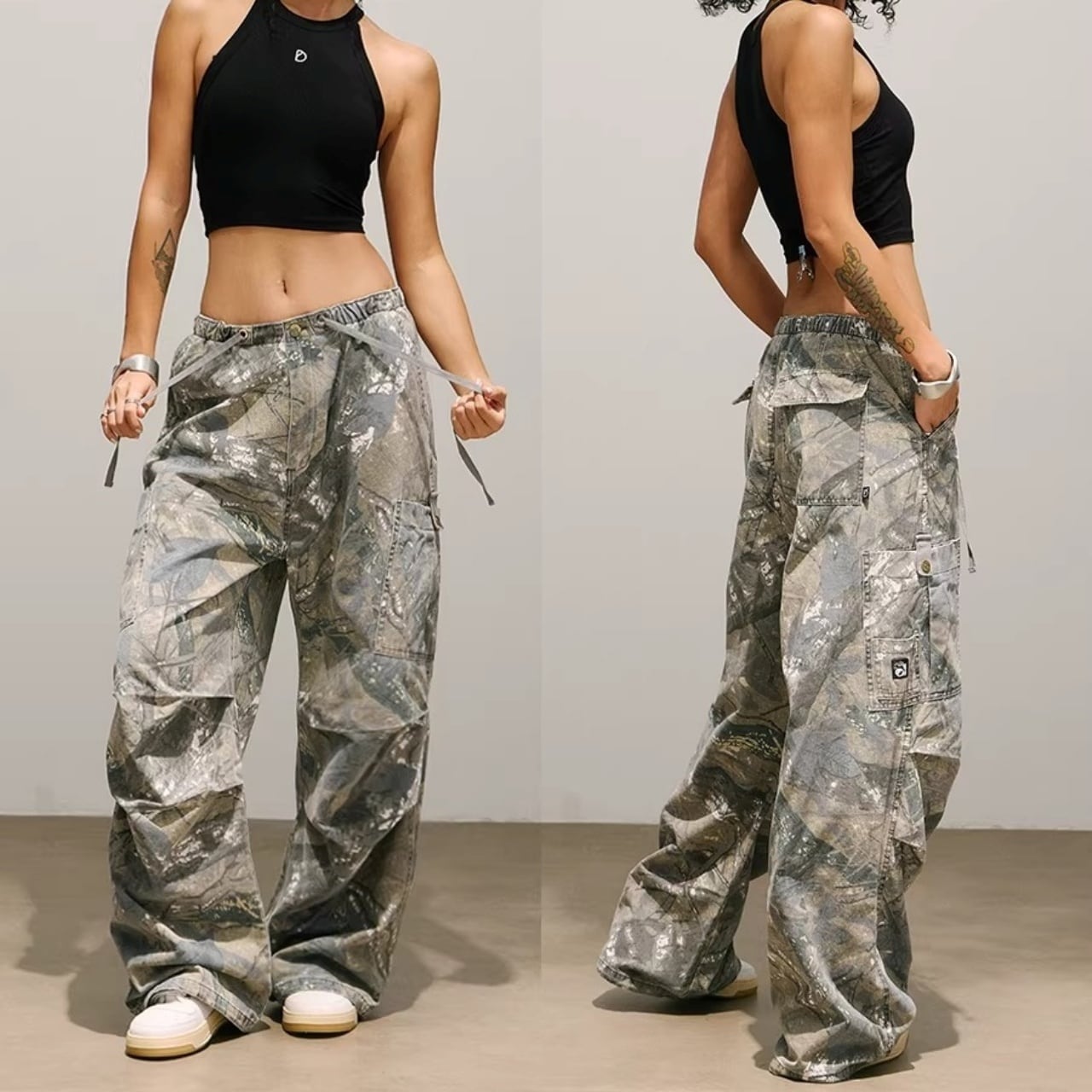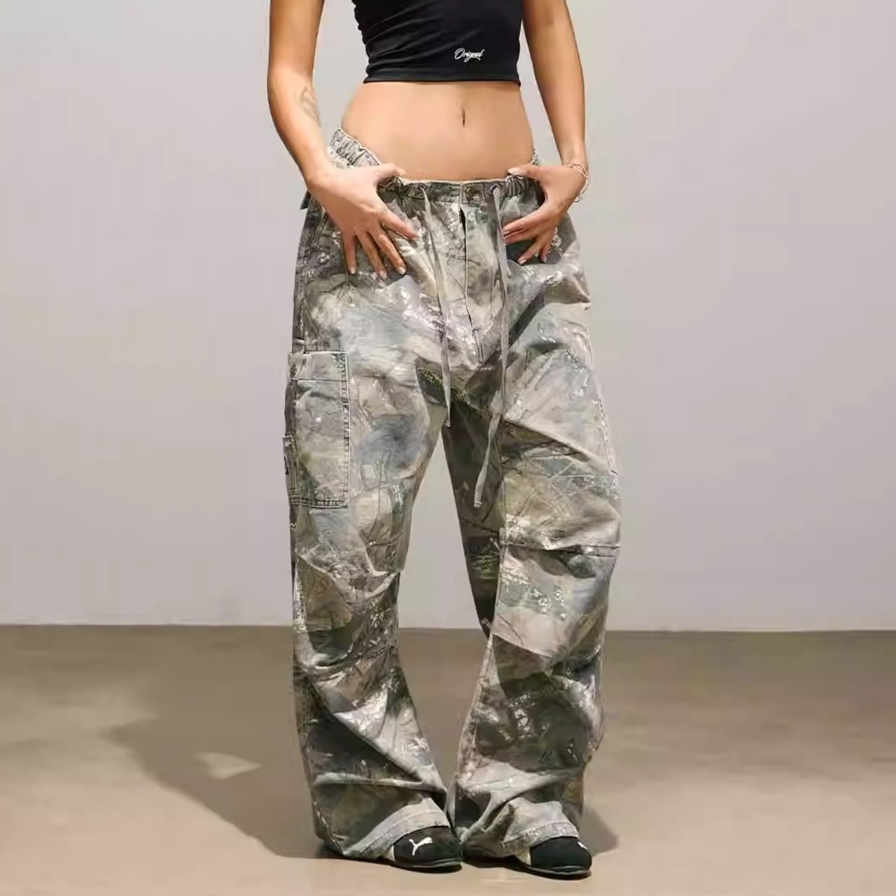 ツリーカモフラージュ柄が特徴的なフルレングスパンツ。