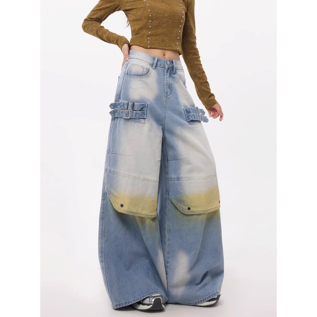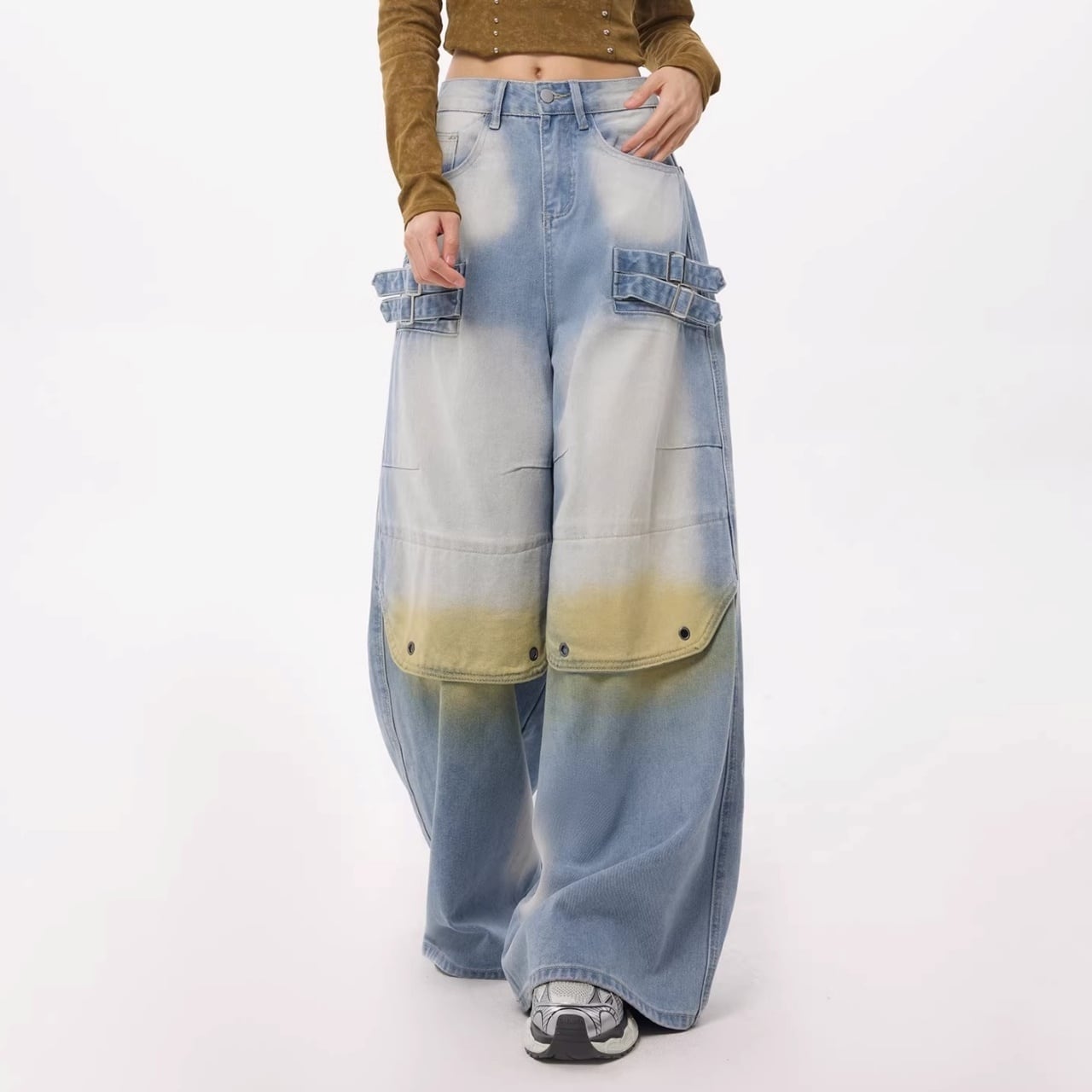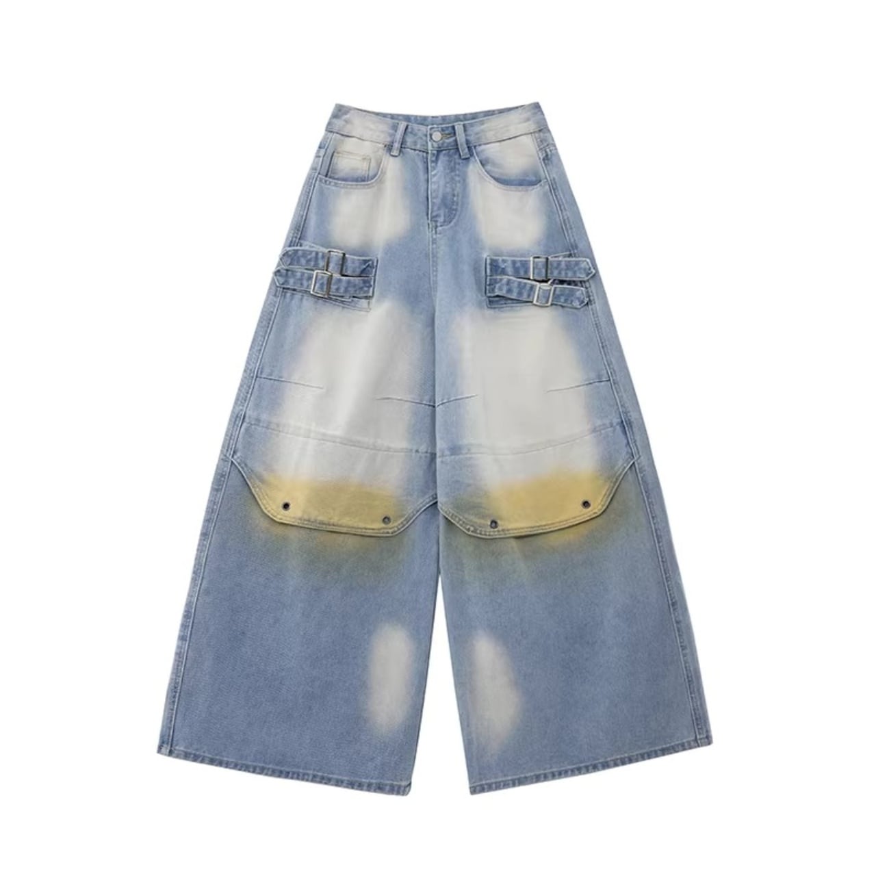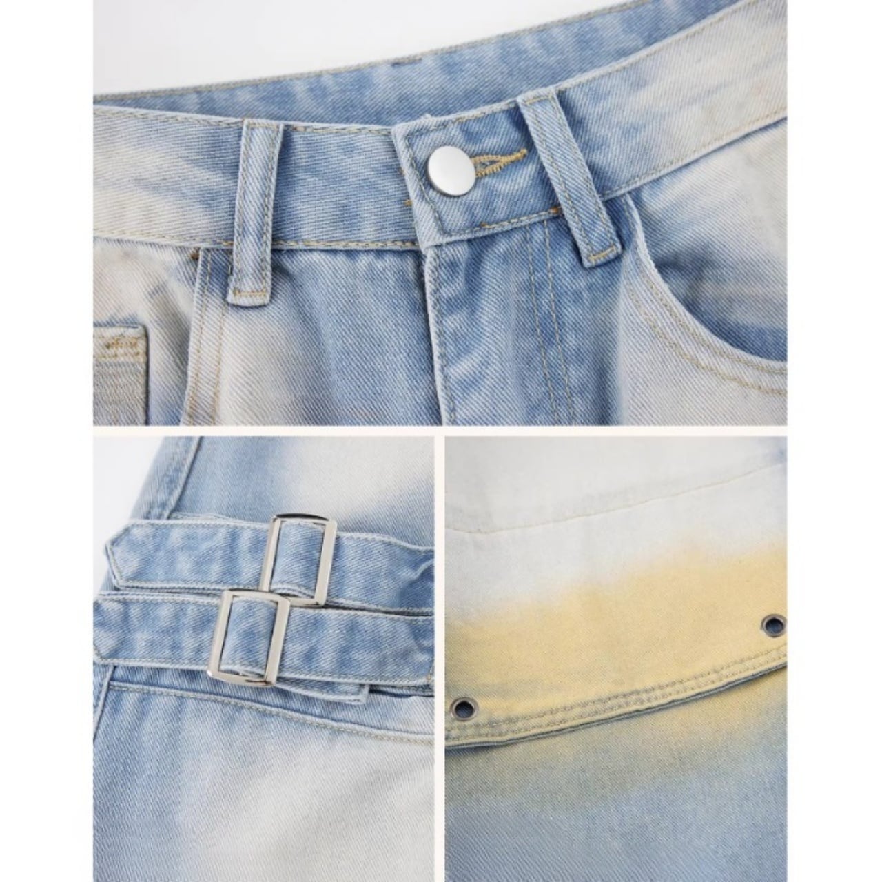 ダブルバックルフェードグラデーションルーズデニムパンツ 1col R01873