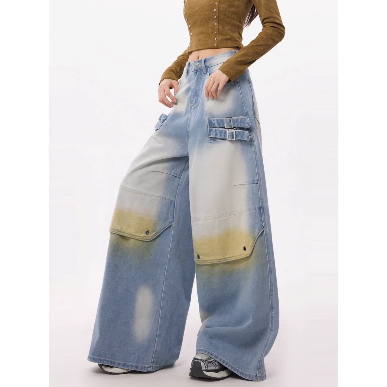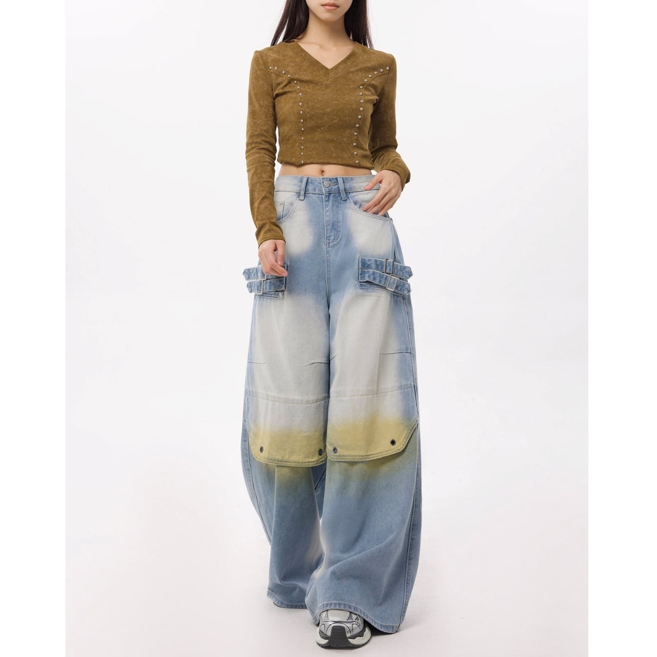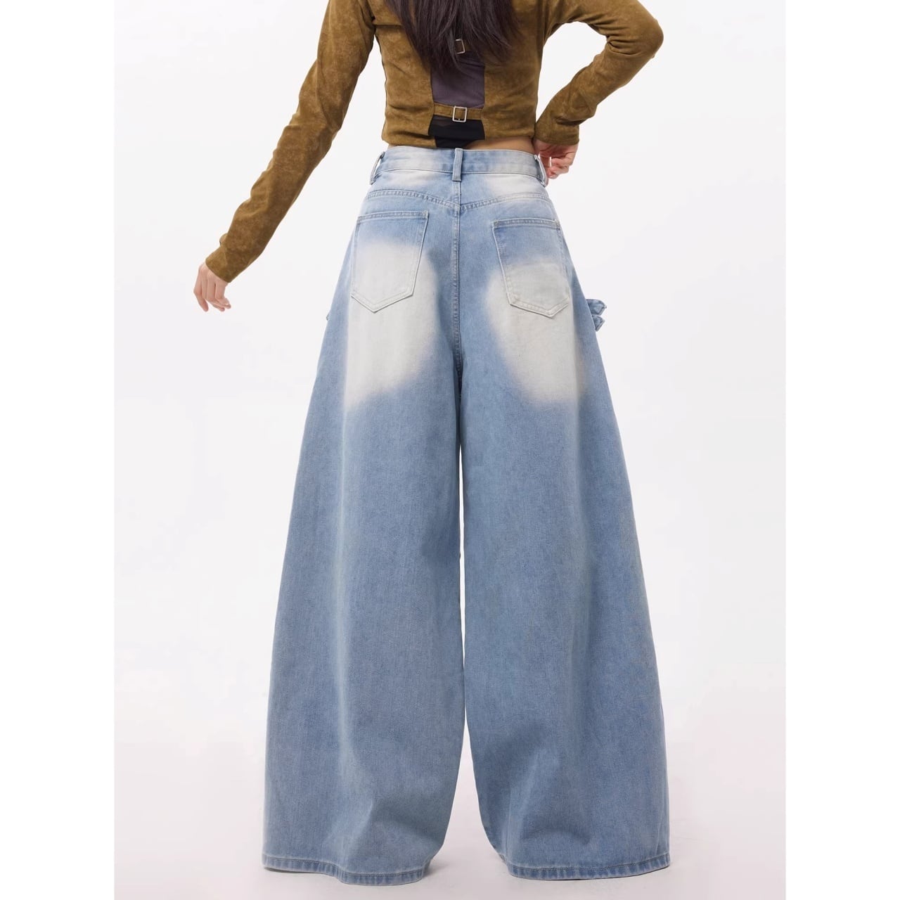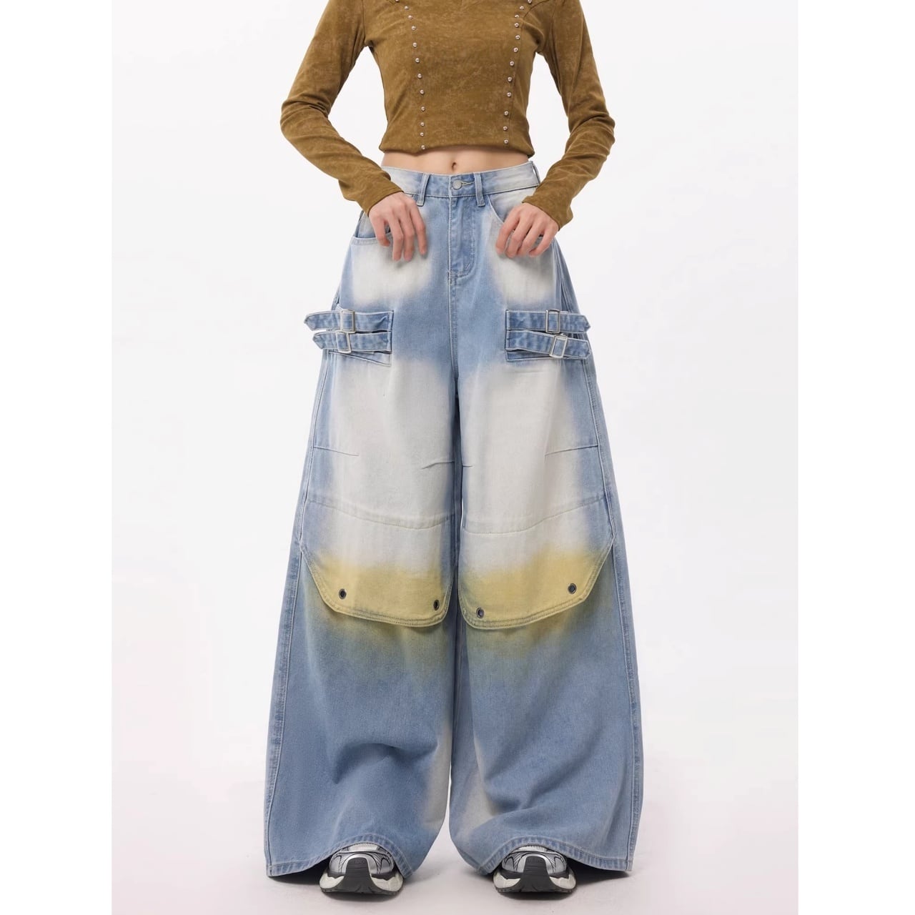 ダブルバックルフェードグラデーションルーズデニムパンツ 1col R01873