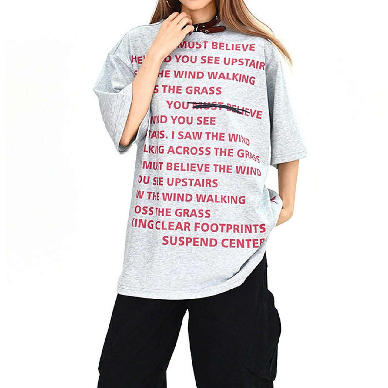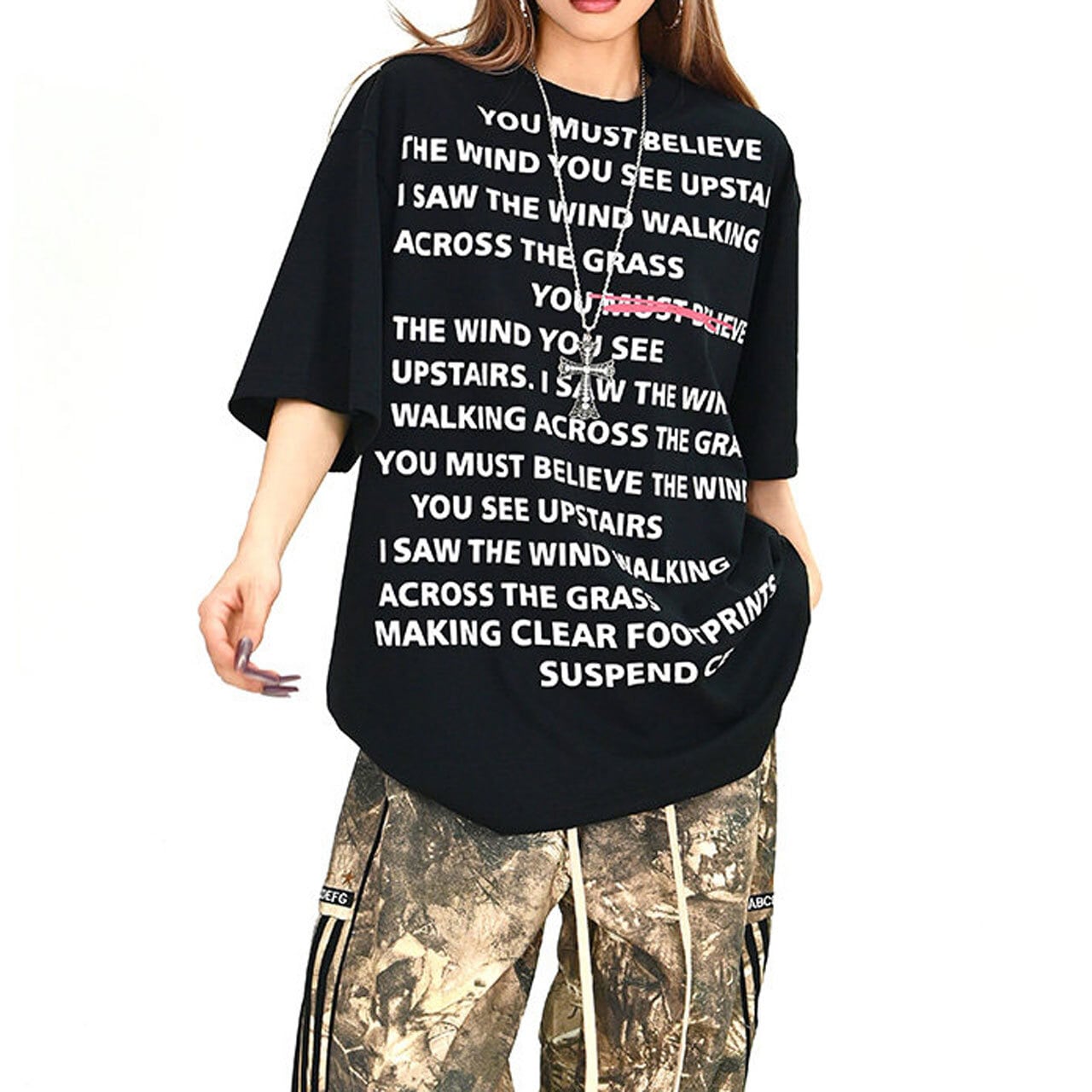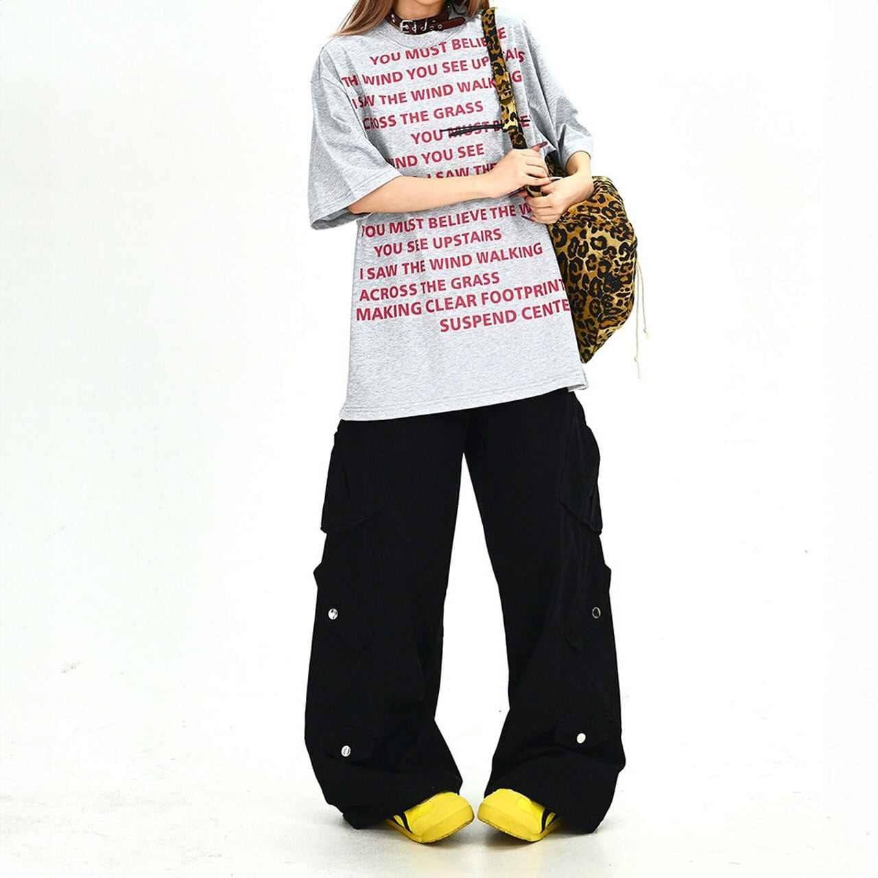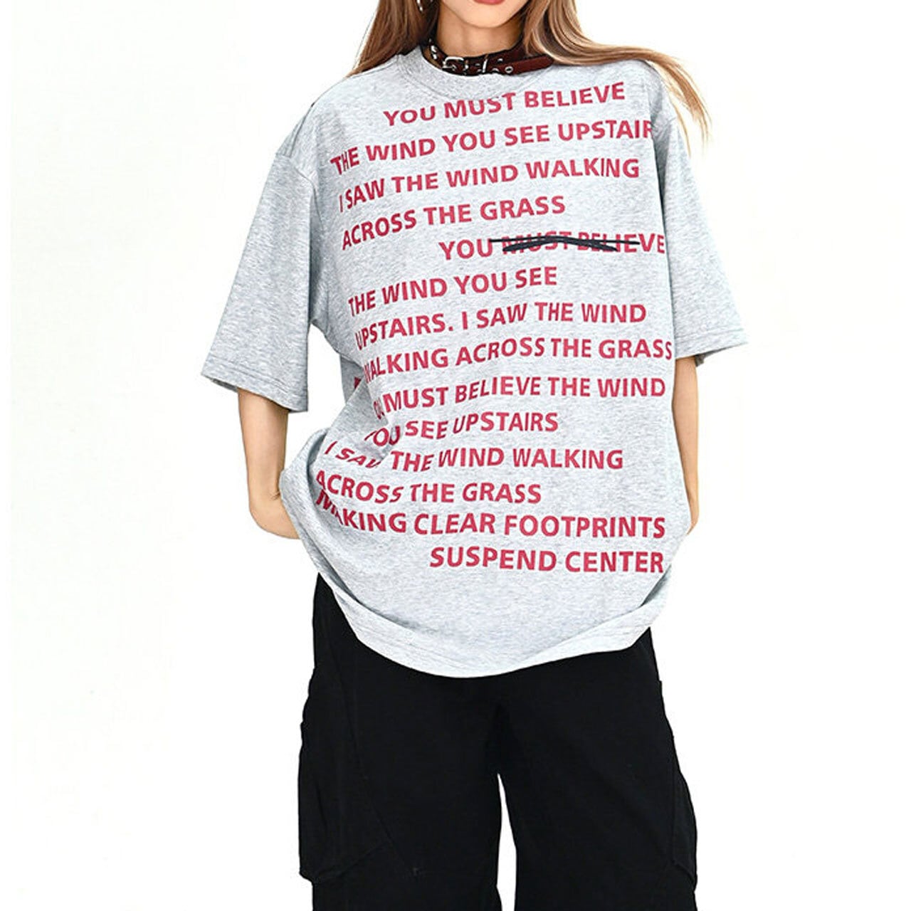 ポップレタリングプリントルーズフィットTシャツ 2col R01894