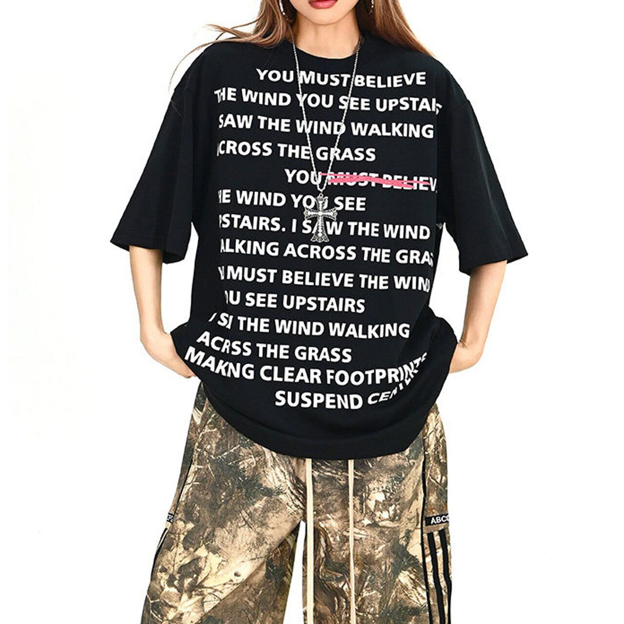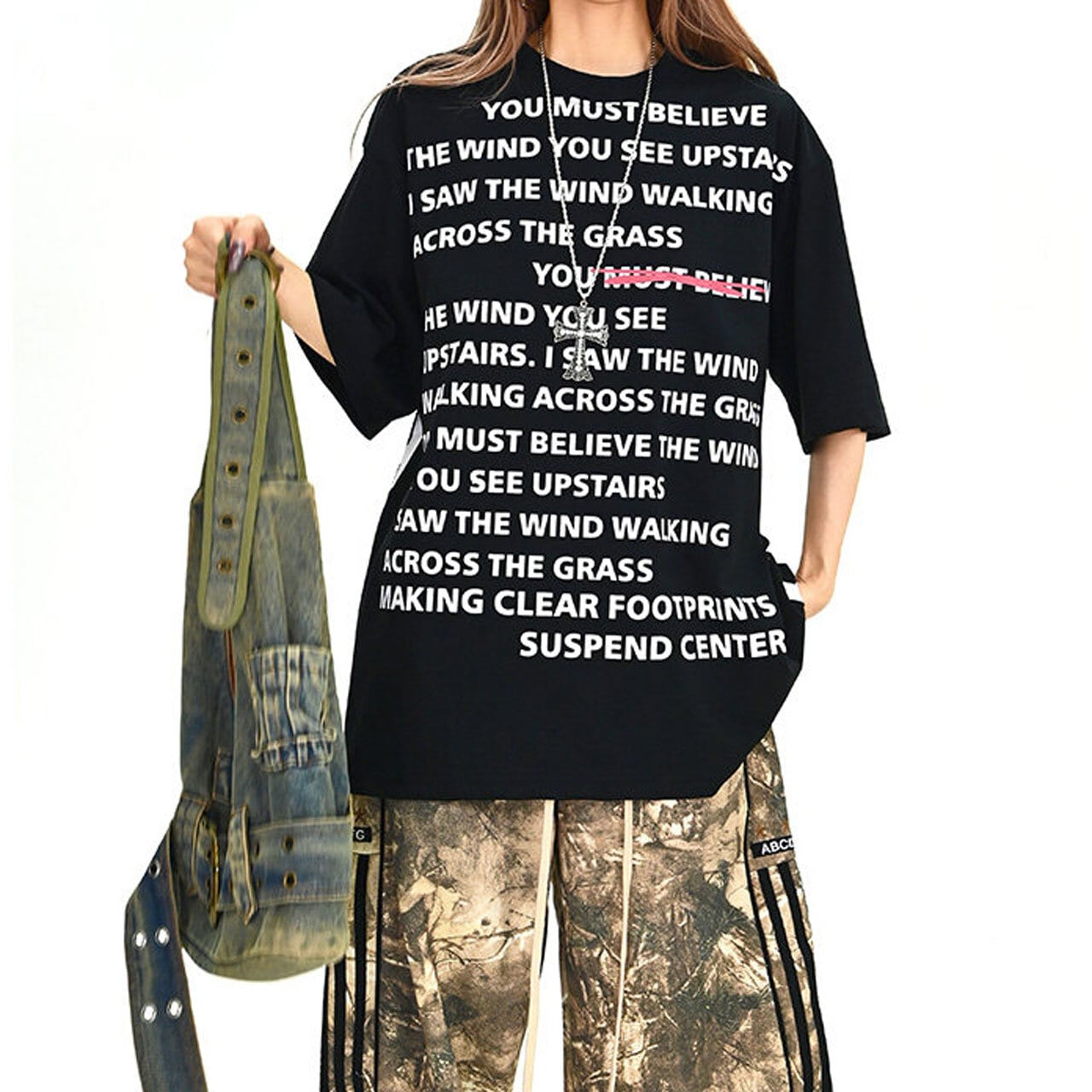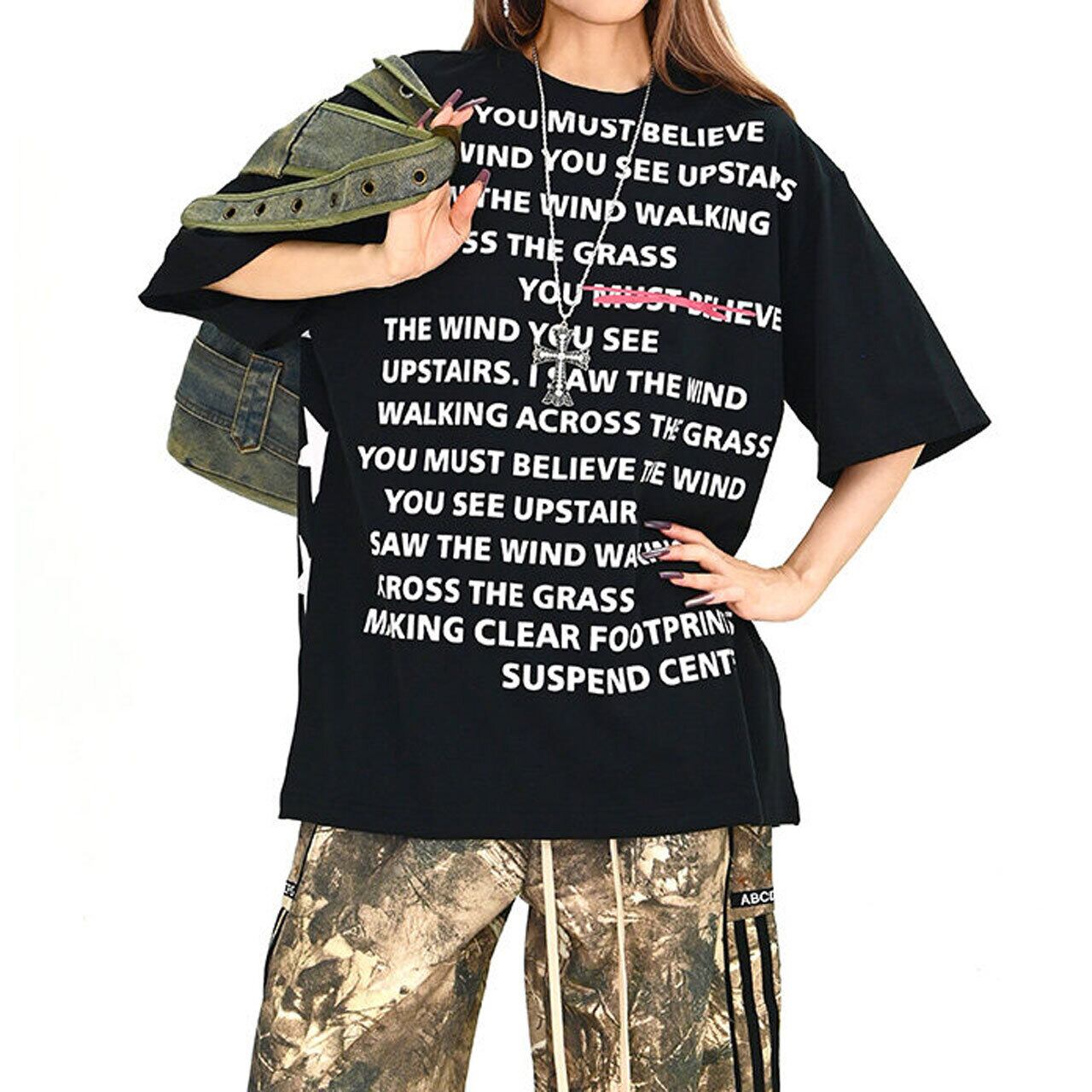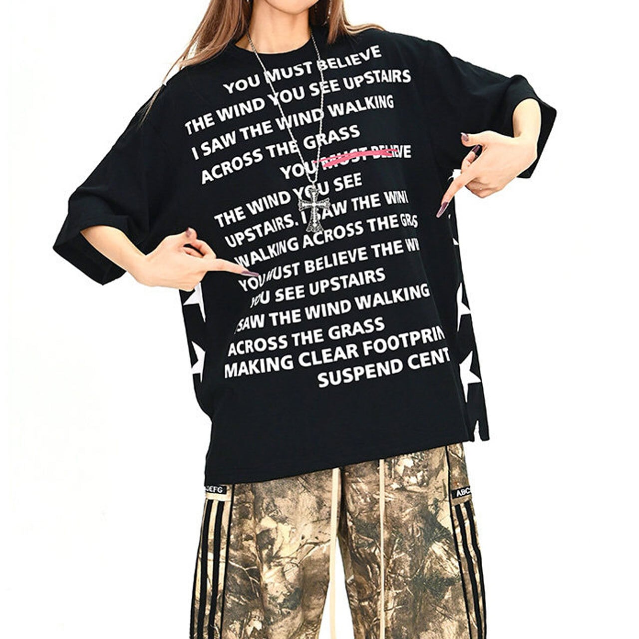 ポップレタリングプリントルーズフィットTシャツ 2col R01894