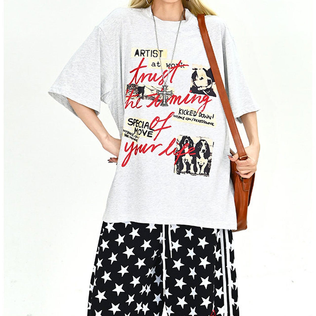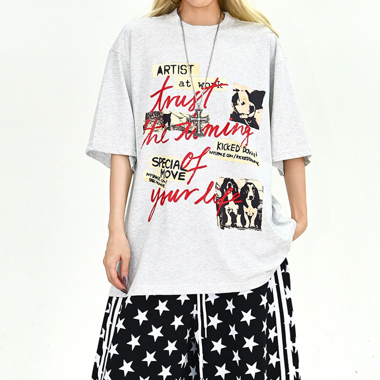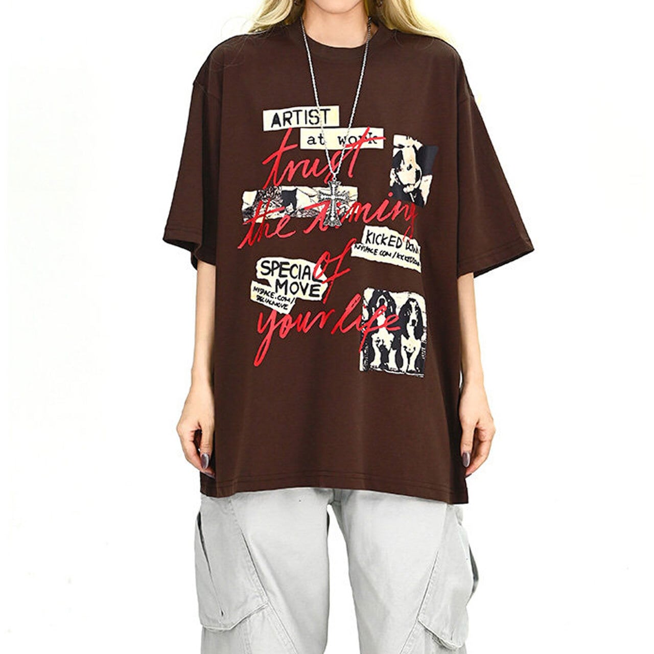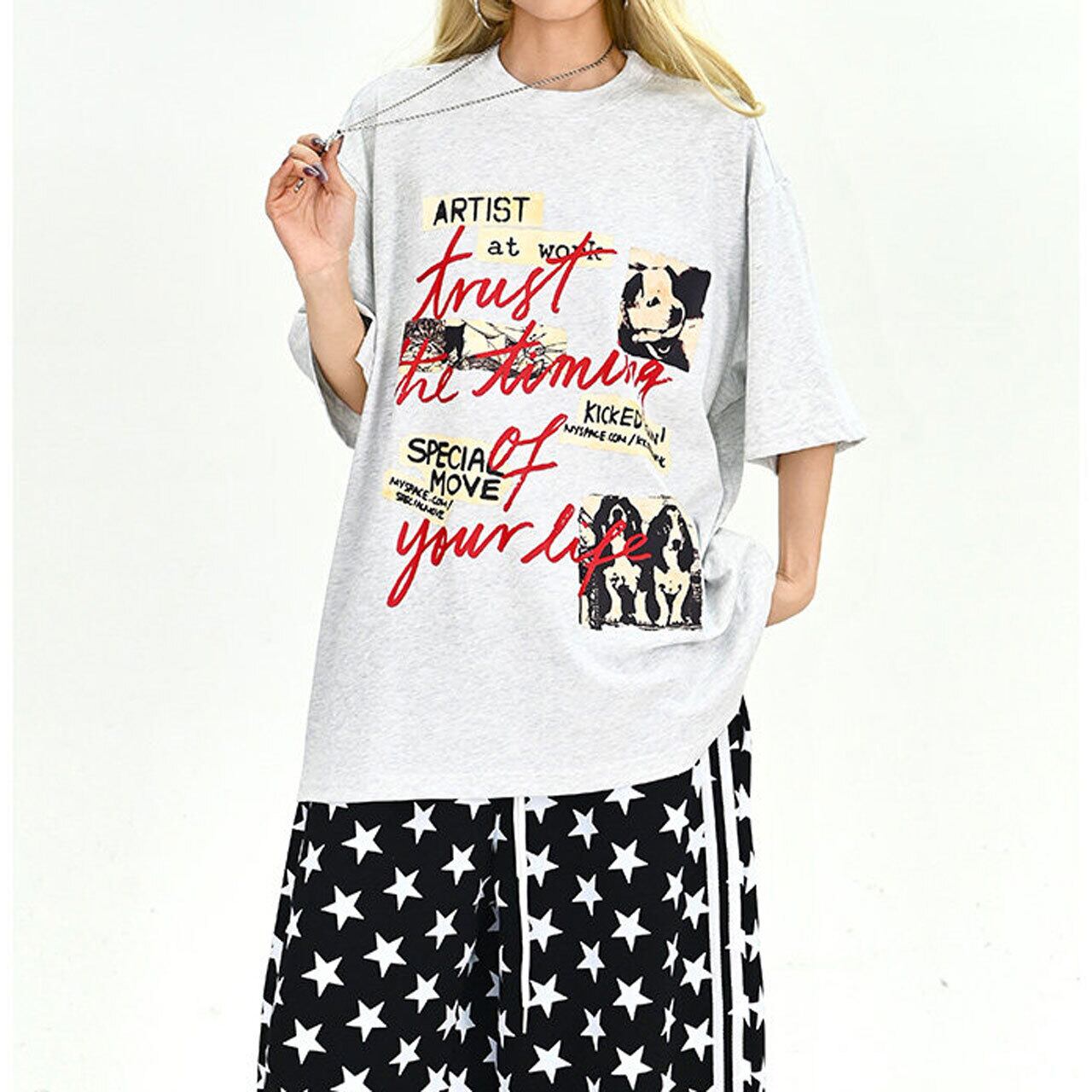 フォトコラージュグラフィックルーズTシャツ 2col R01896