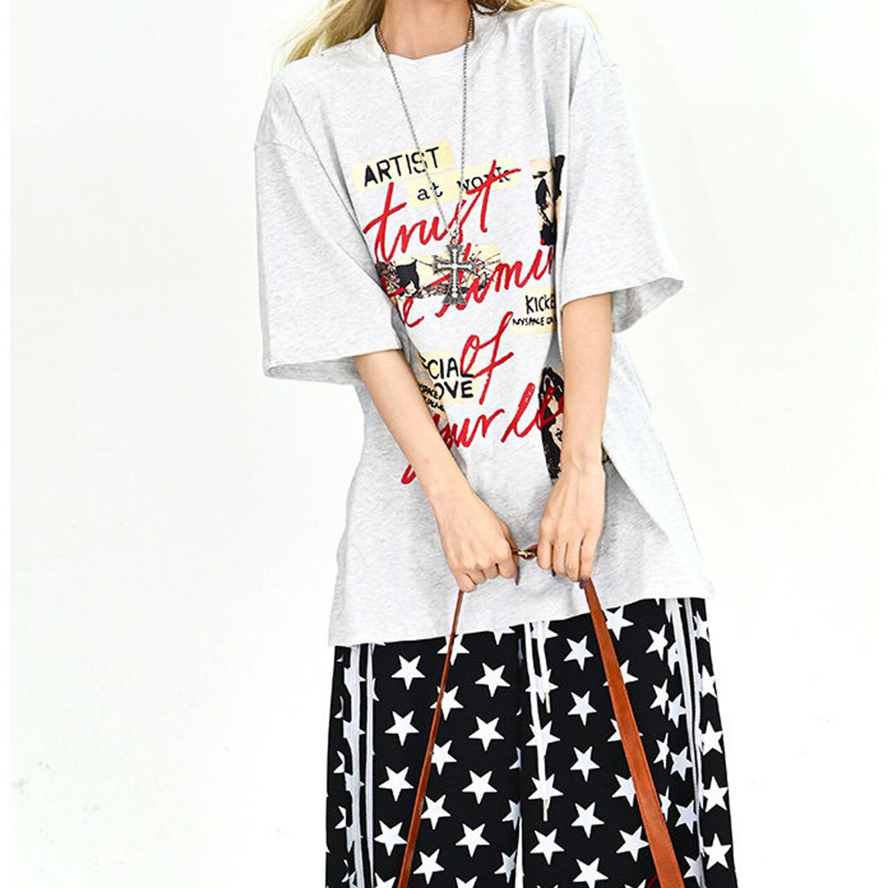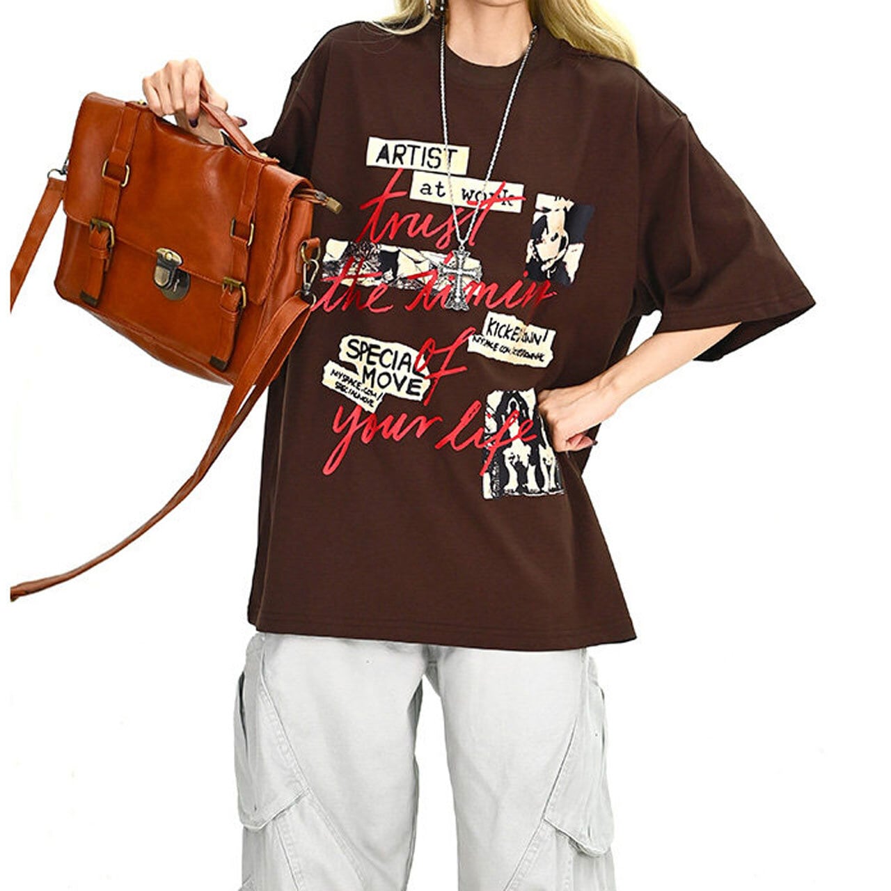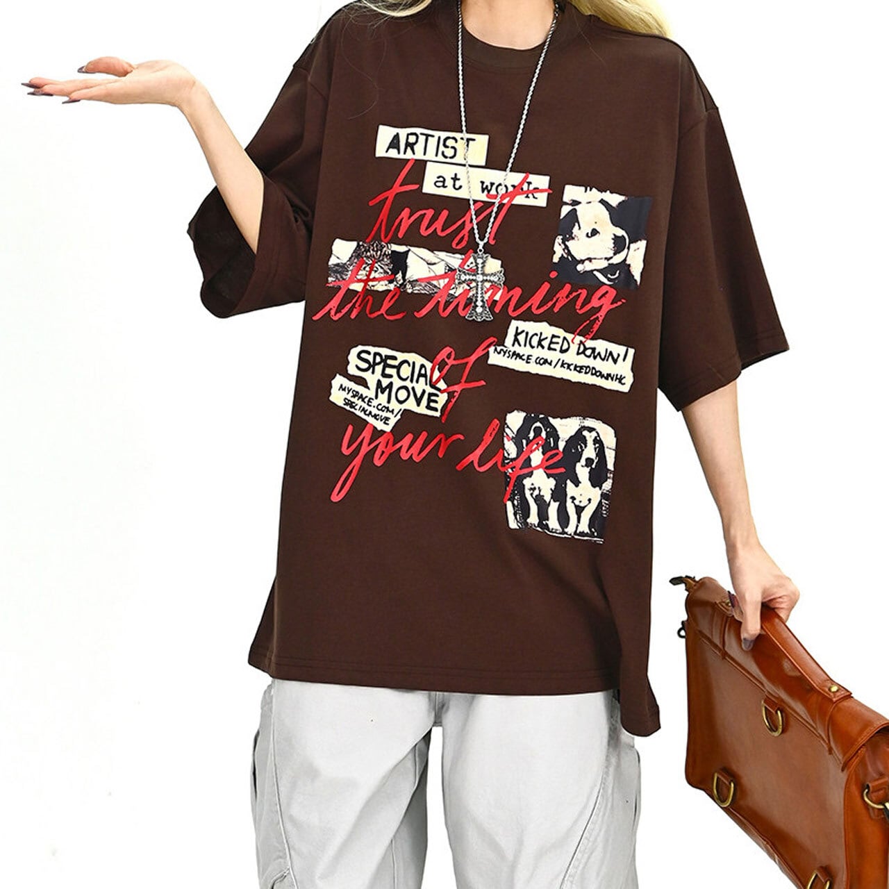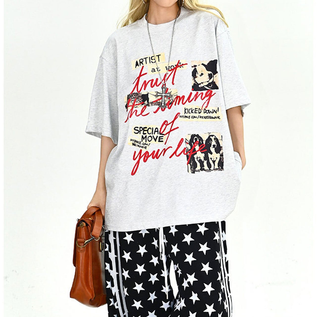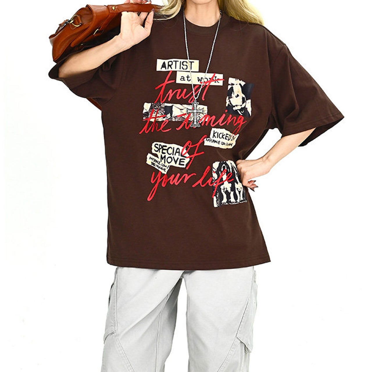 フォトコラージュグラフィックルーズTシャツ 2col R01896