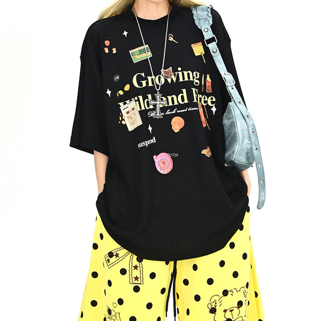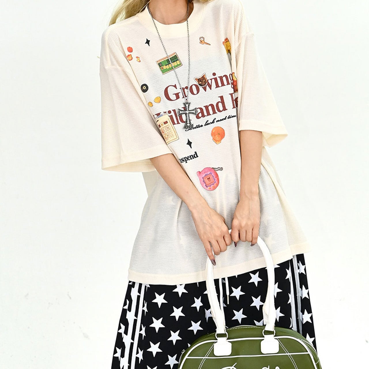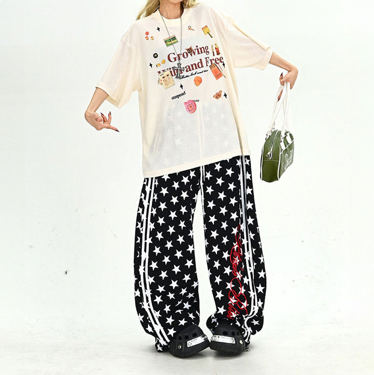 フロントには存在感のあるグラフィックと繊細なディテールが混ざり合い、ストリート感漂う絶妙なニュアンスを演出します。