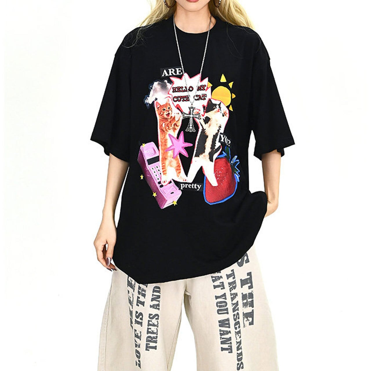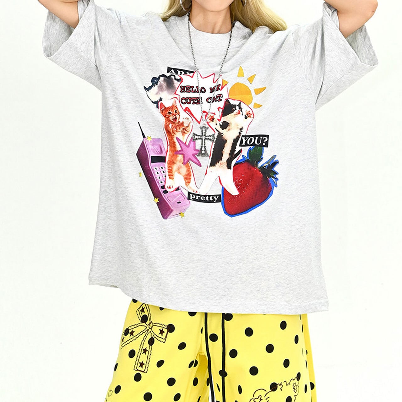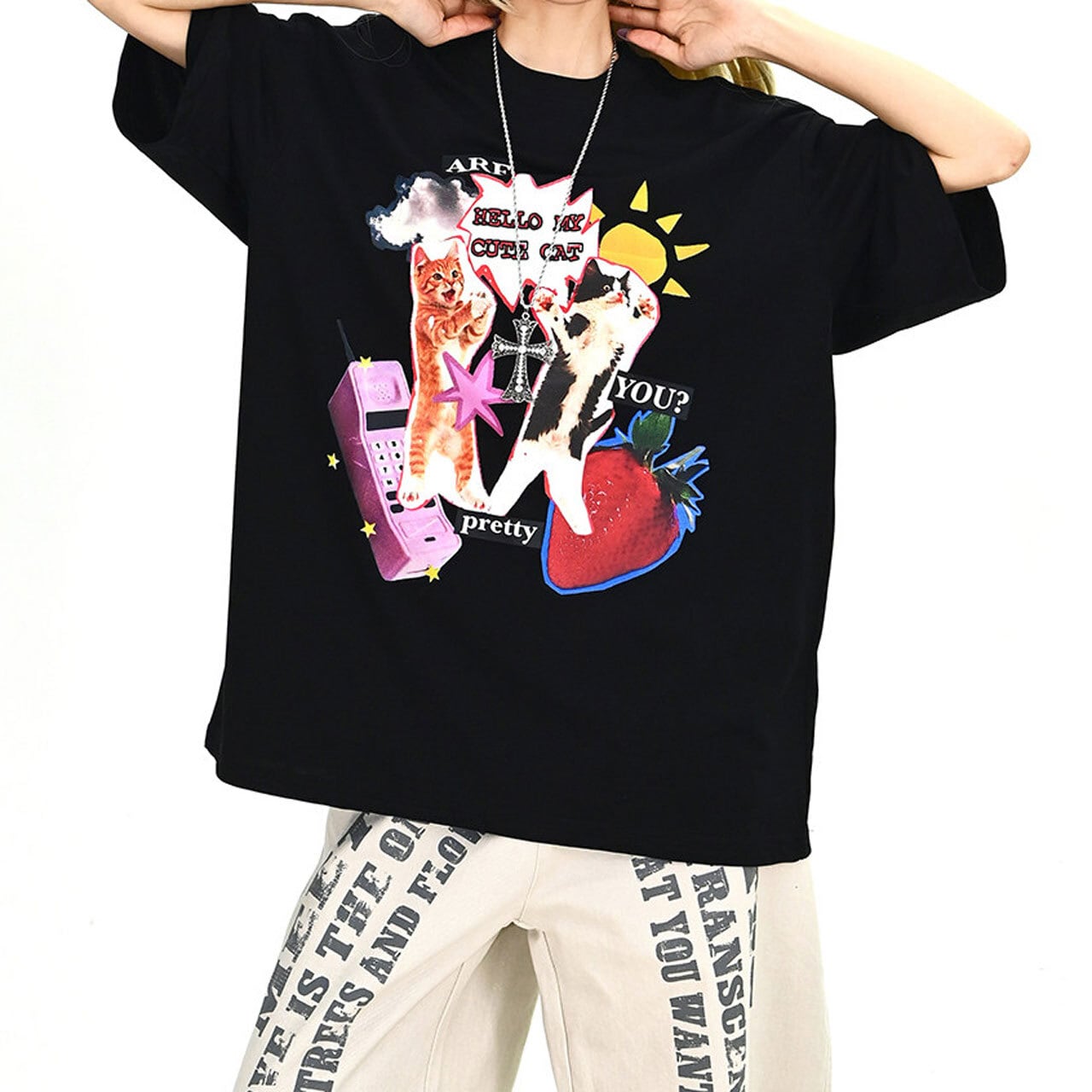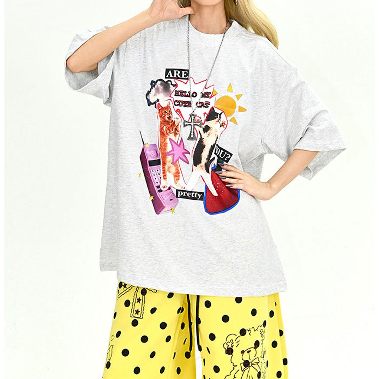 ファンシーアニマルコラージュグラフィックルーズTシャツ 2col R01900