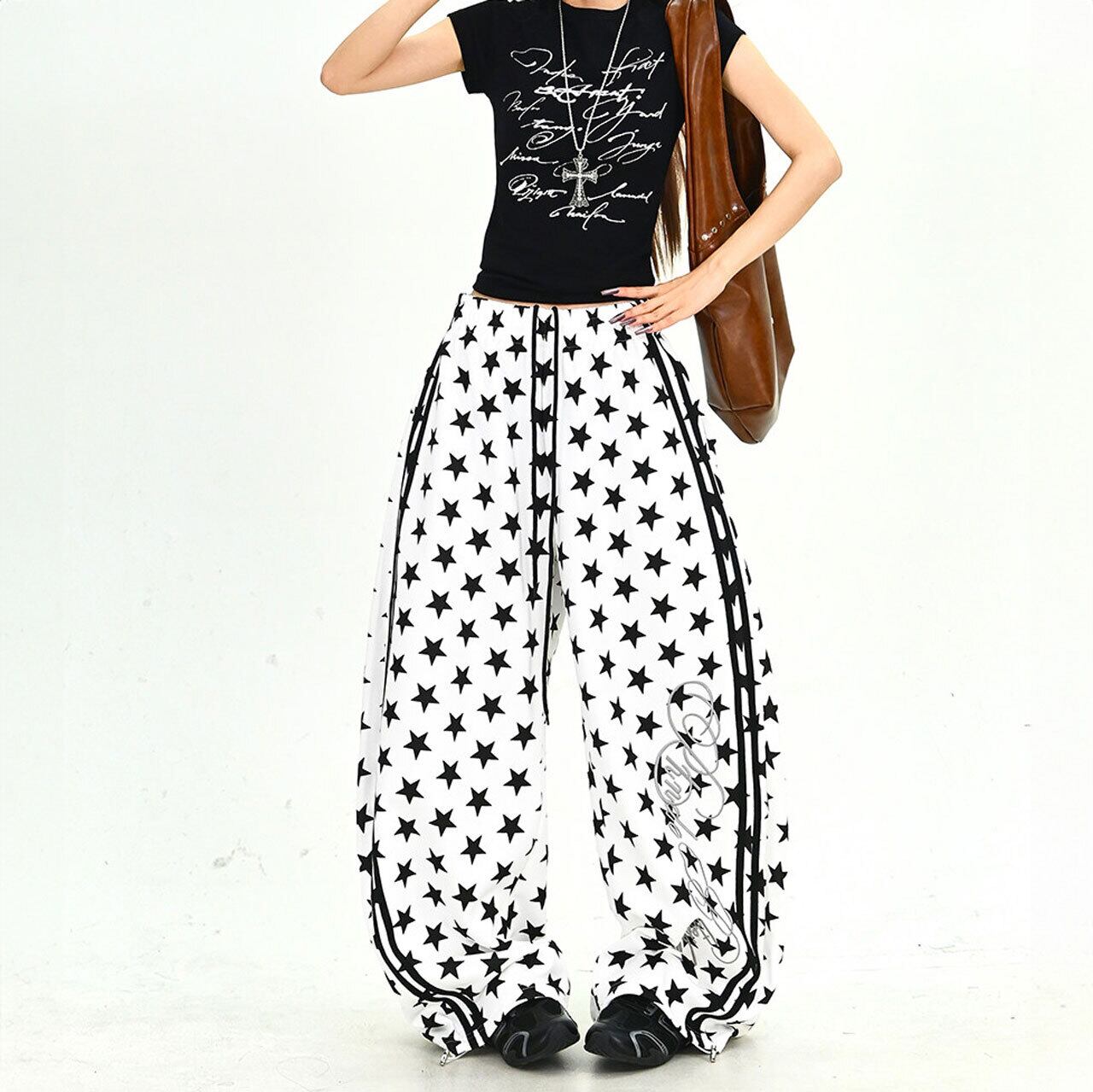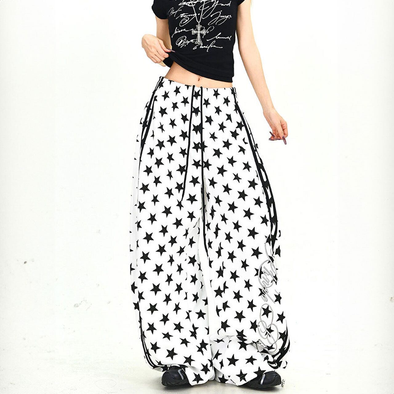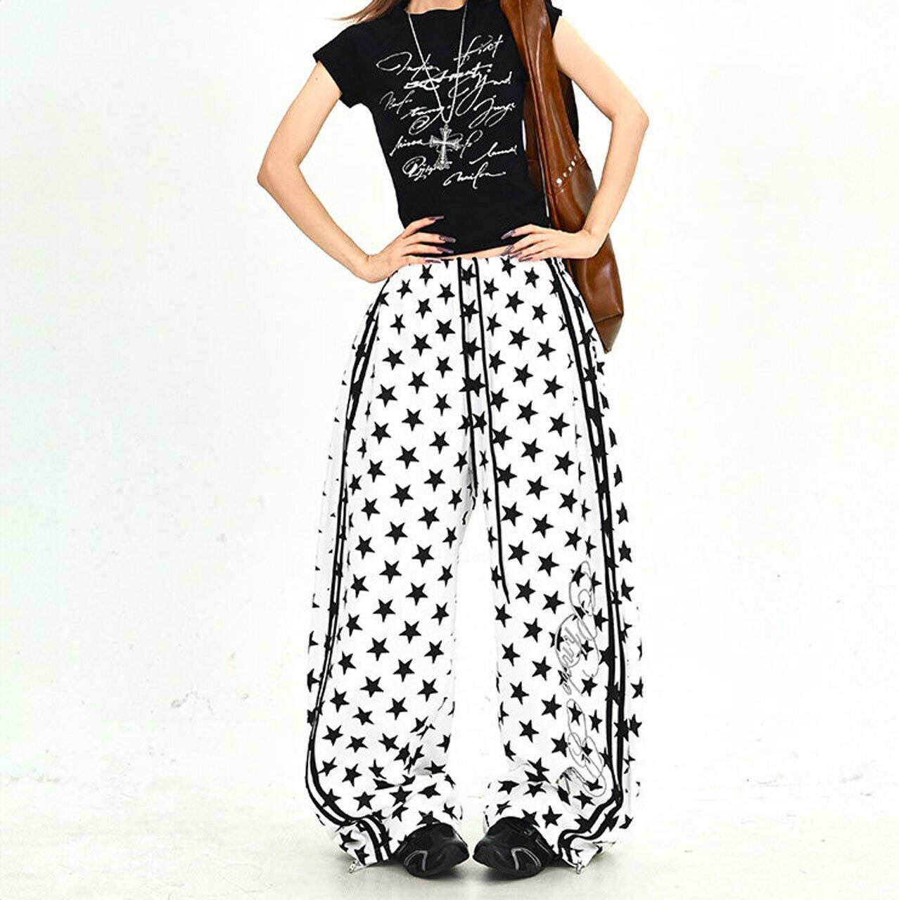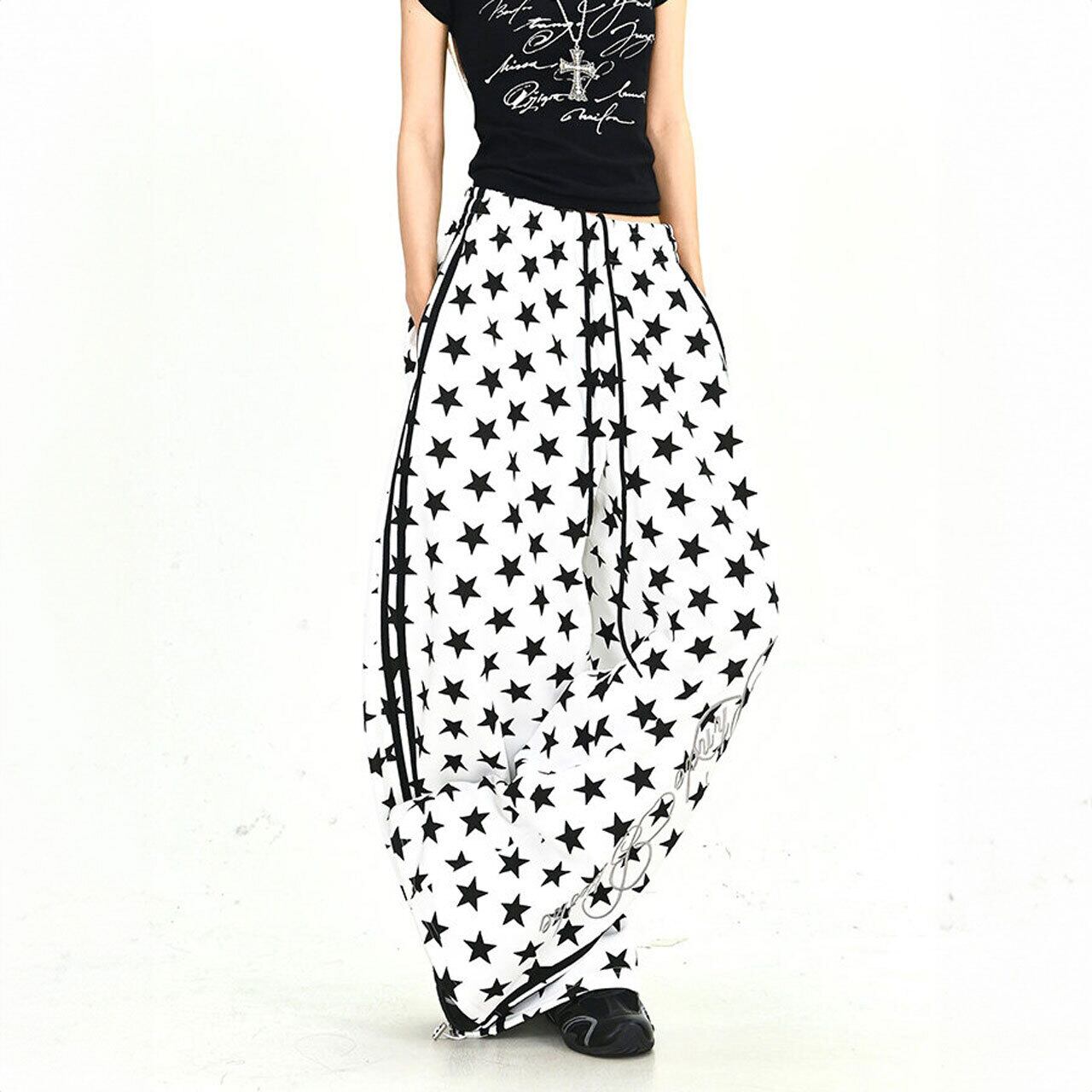 スターパターンサイドラインルーズフォルムパンツ 2col R01902