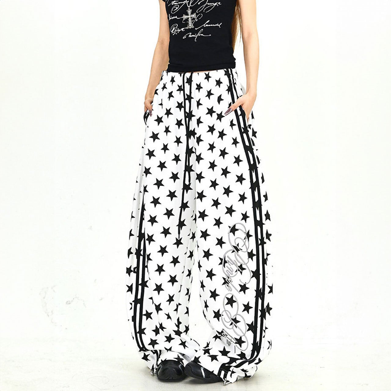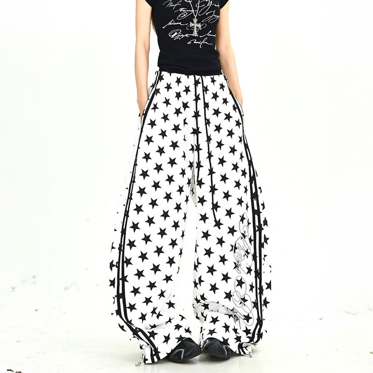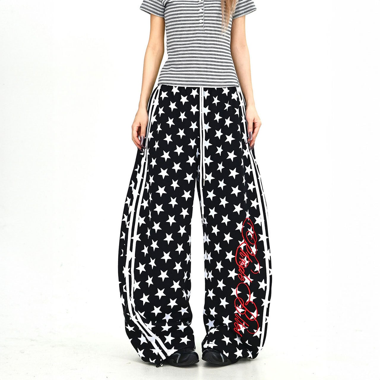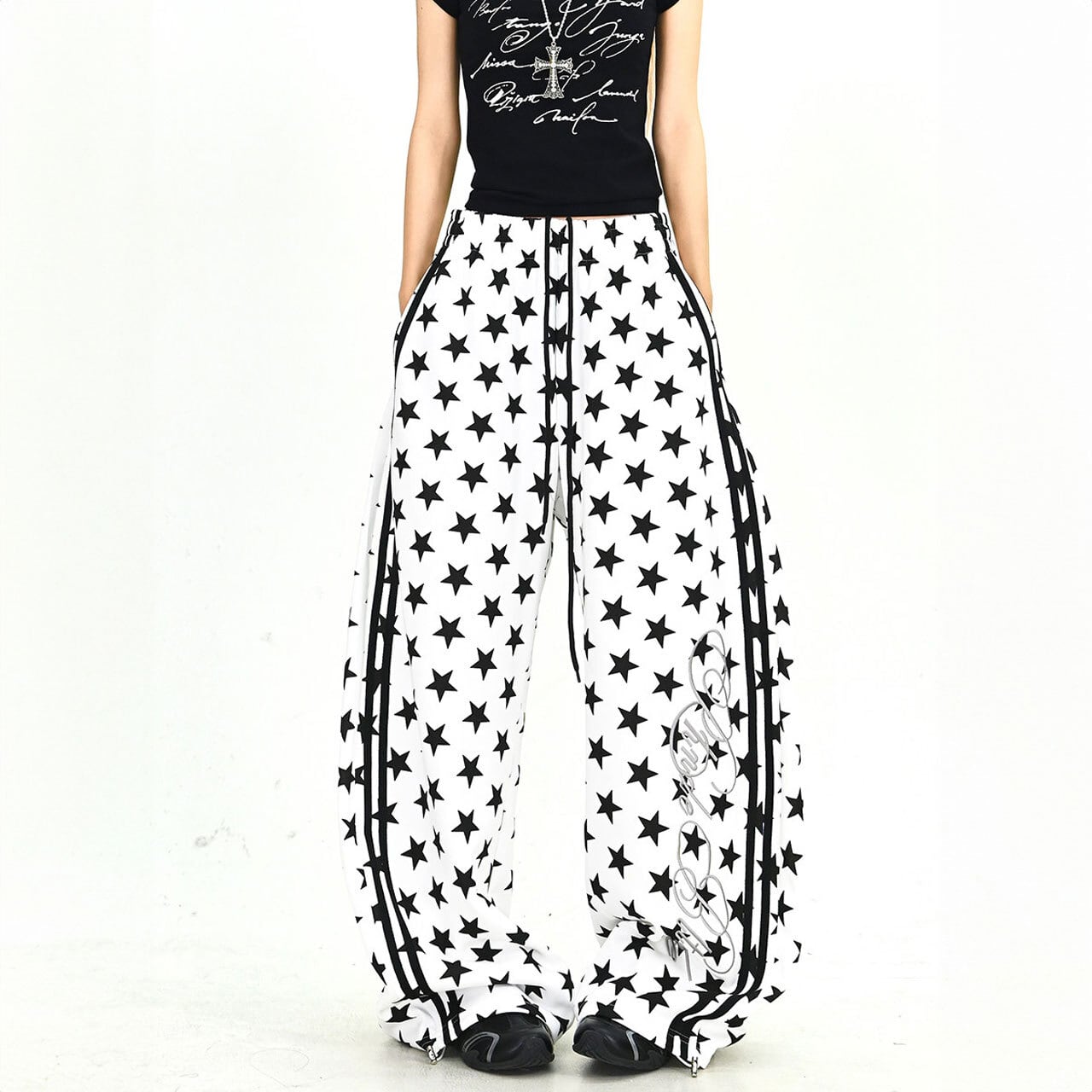 スターパターンサイドラインルーズフォルムパンツ 2col R01902