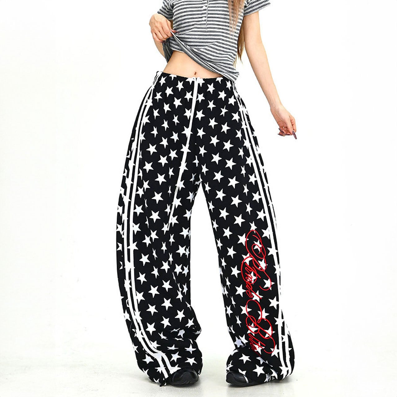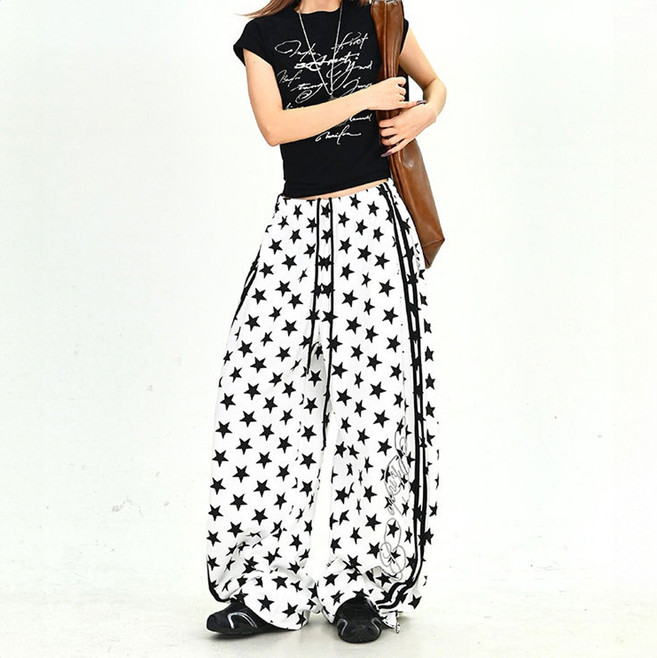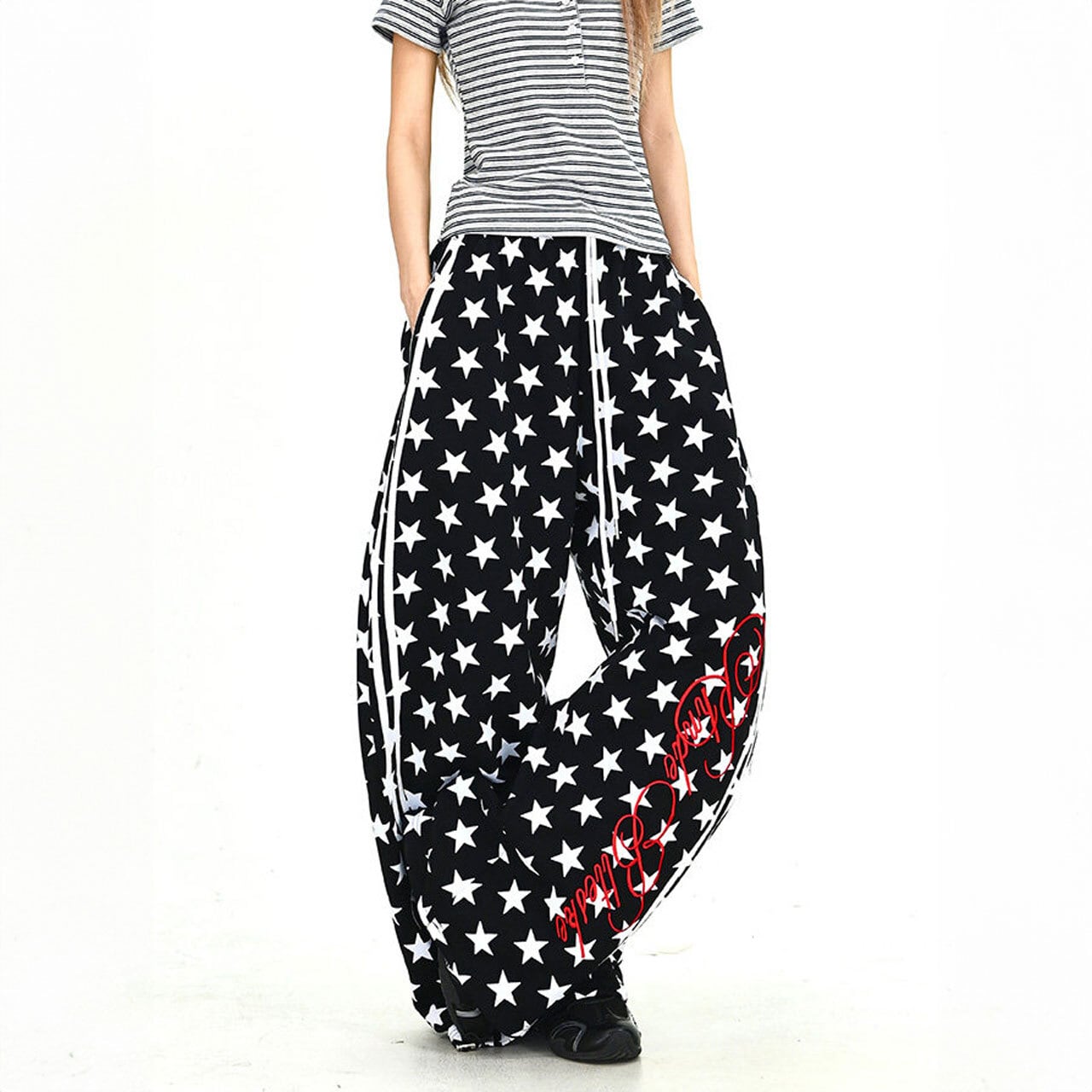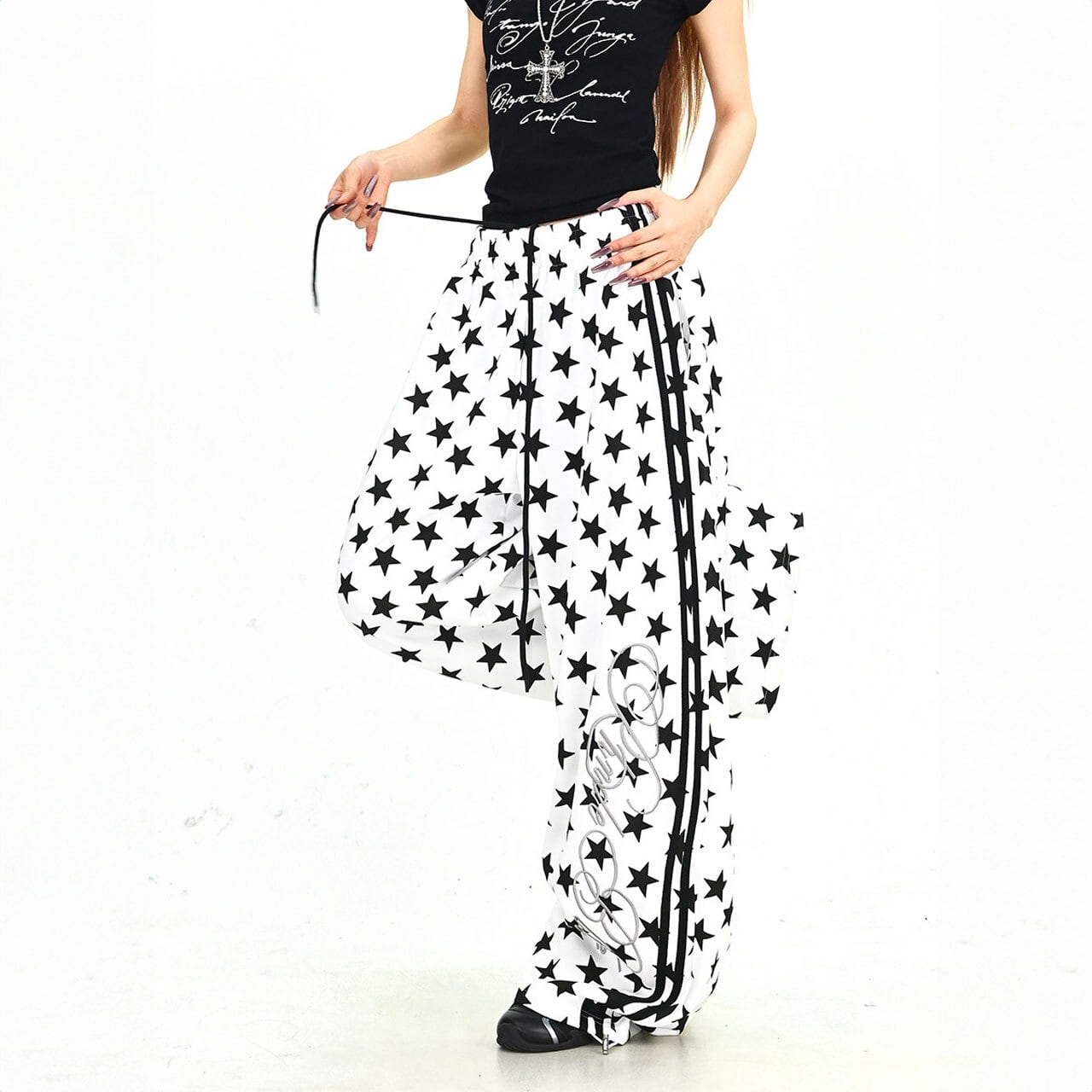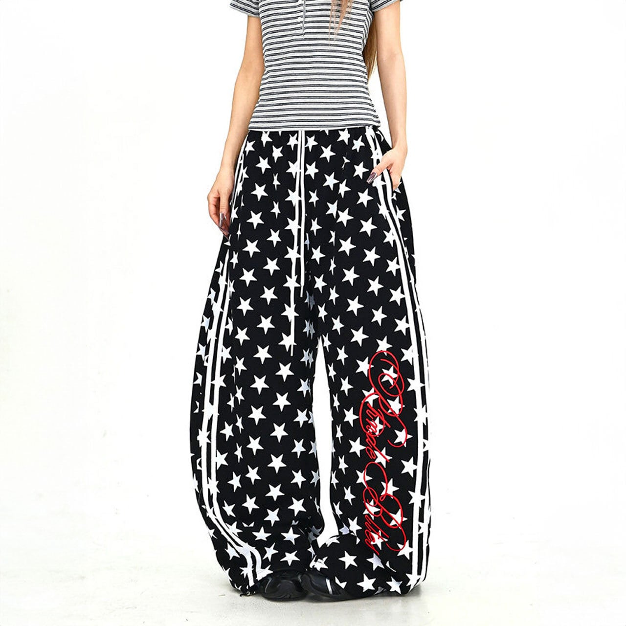 スターパターンサイドラインルーズフォルムパンツ 2col R01902