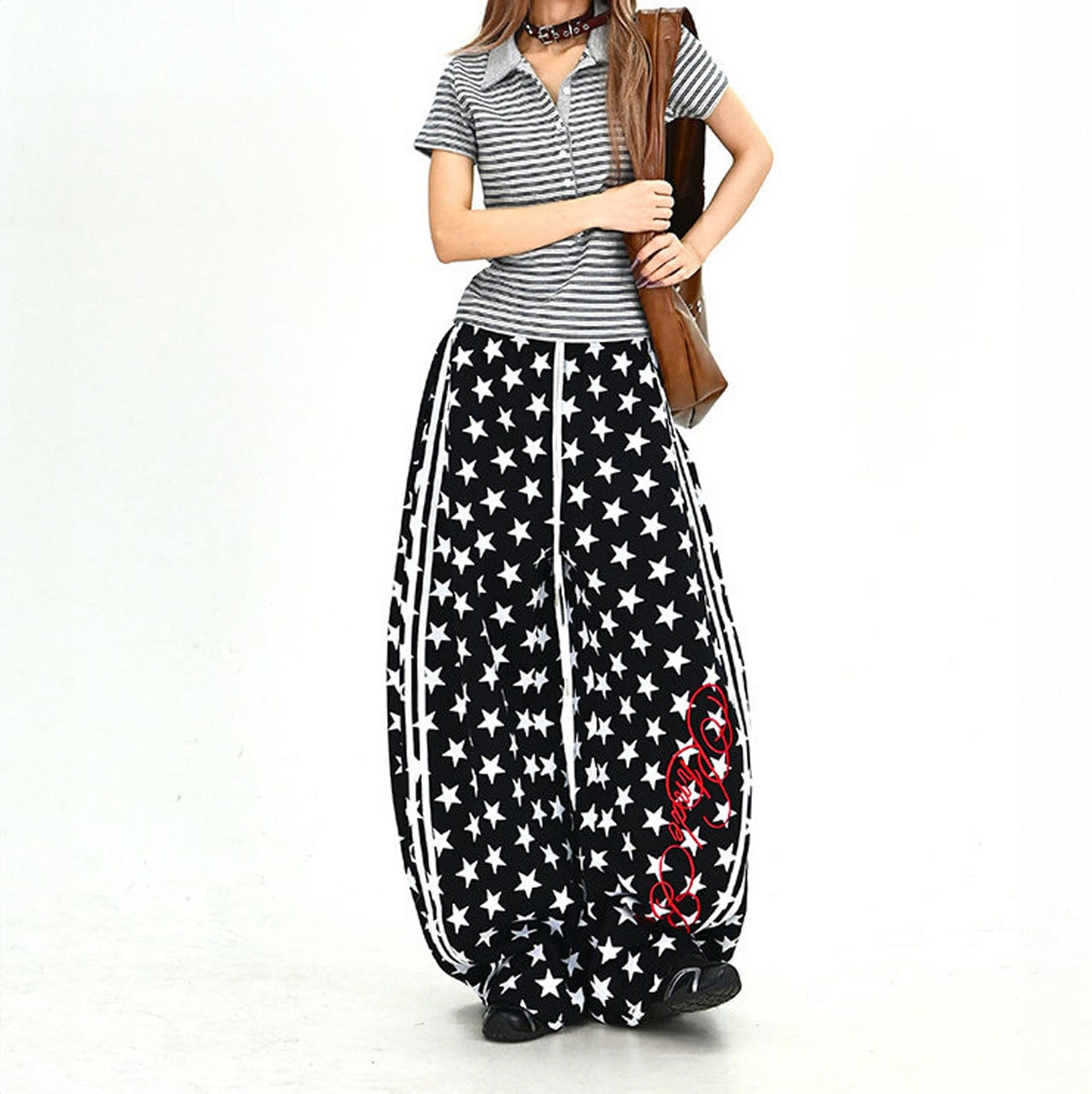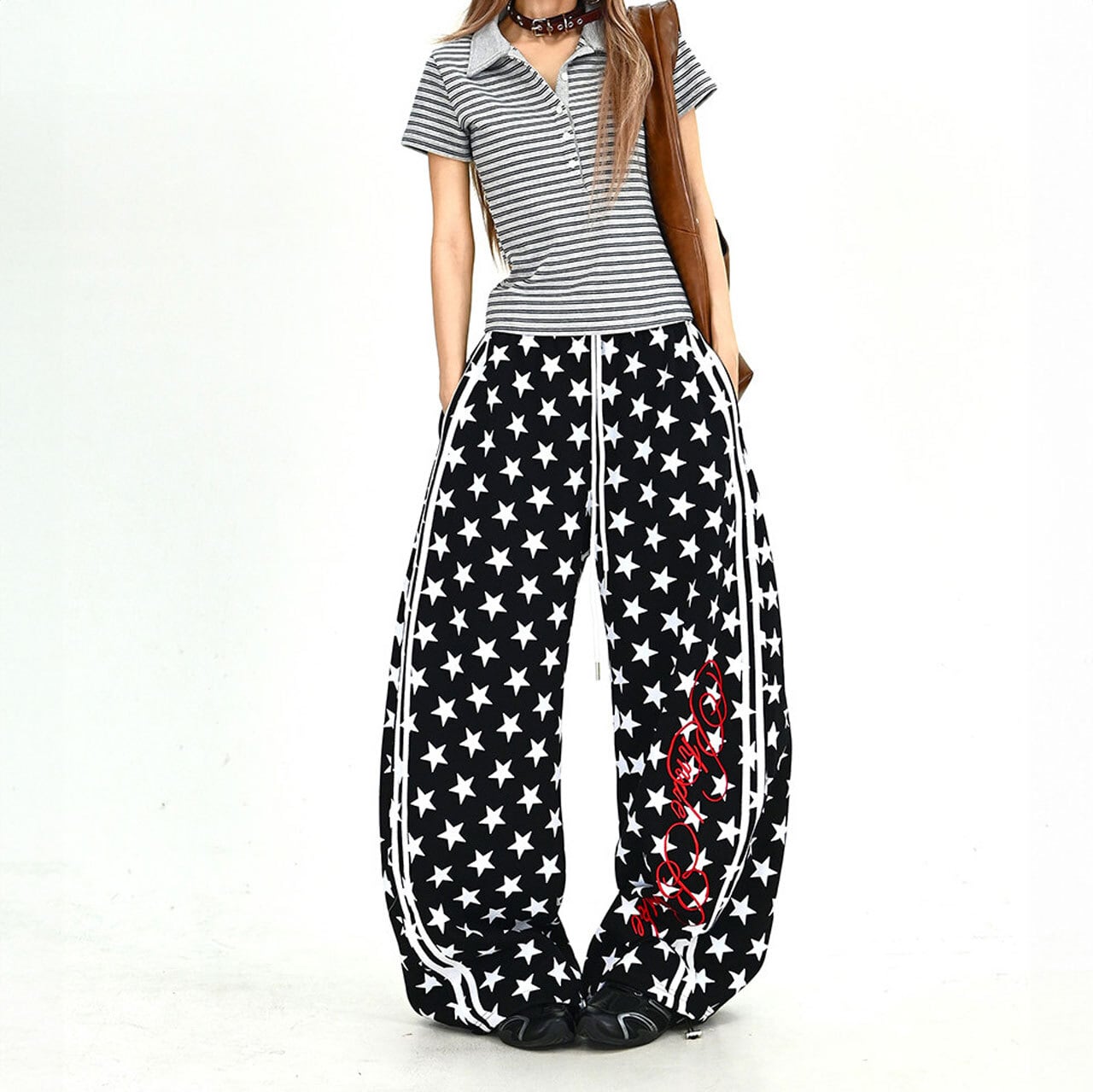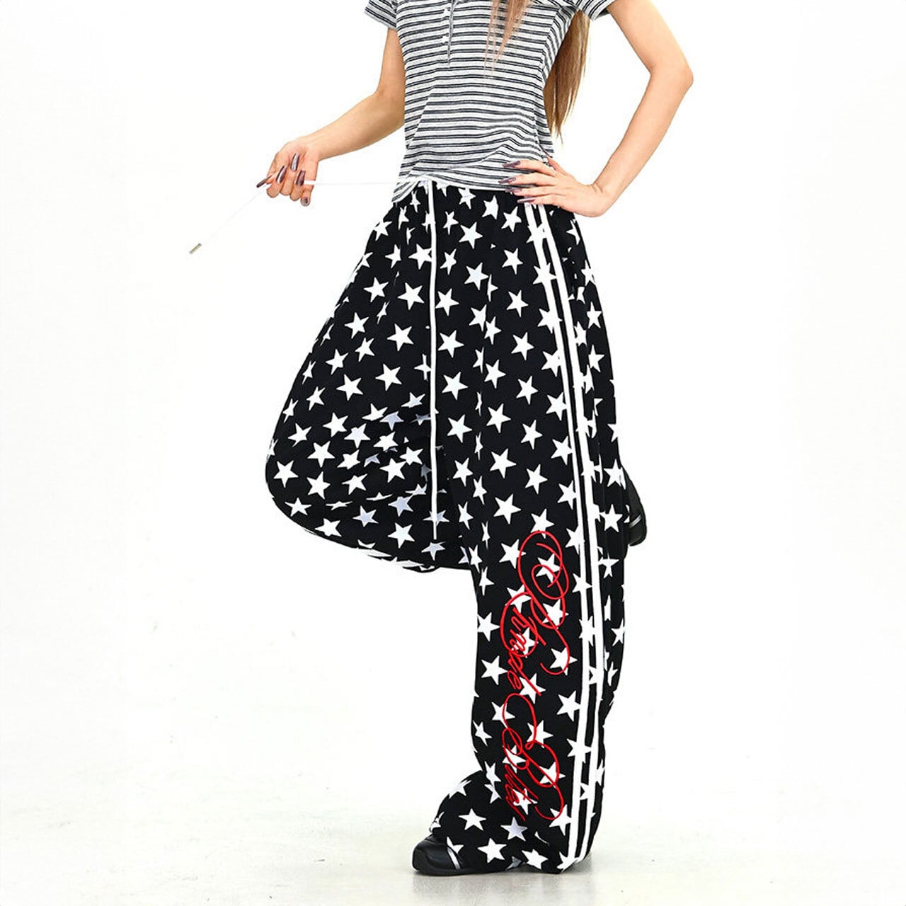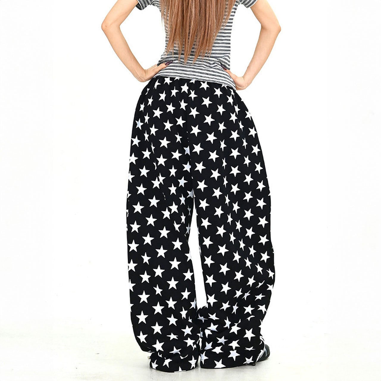 スターパターンサイドラインルーズフォルムパンツ 2col R01902