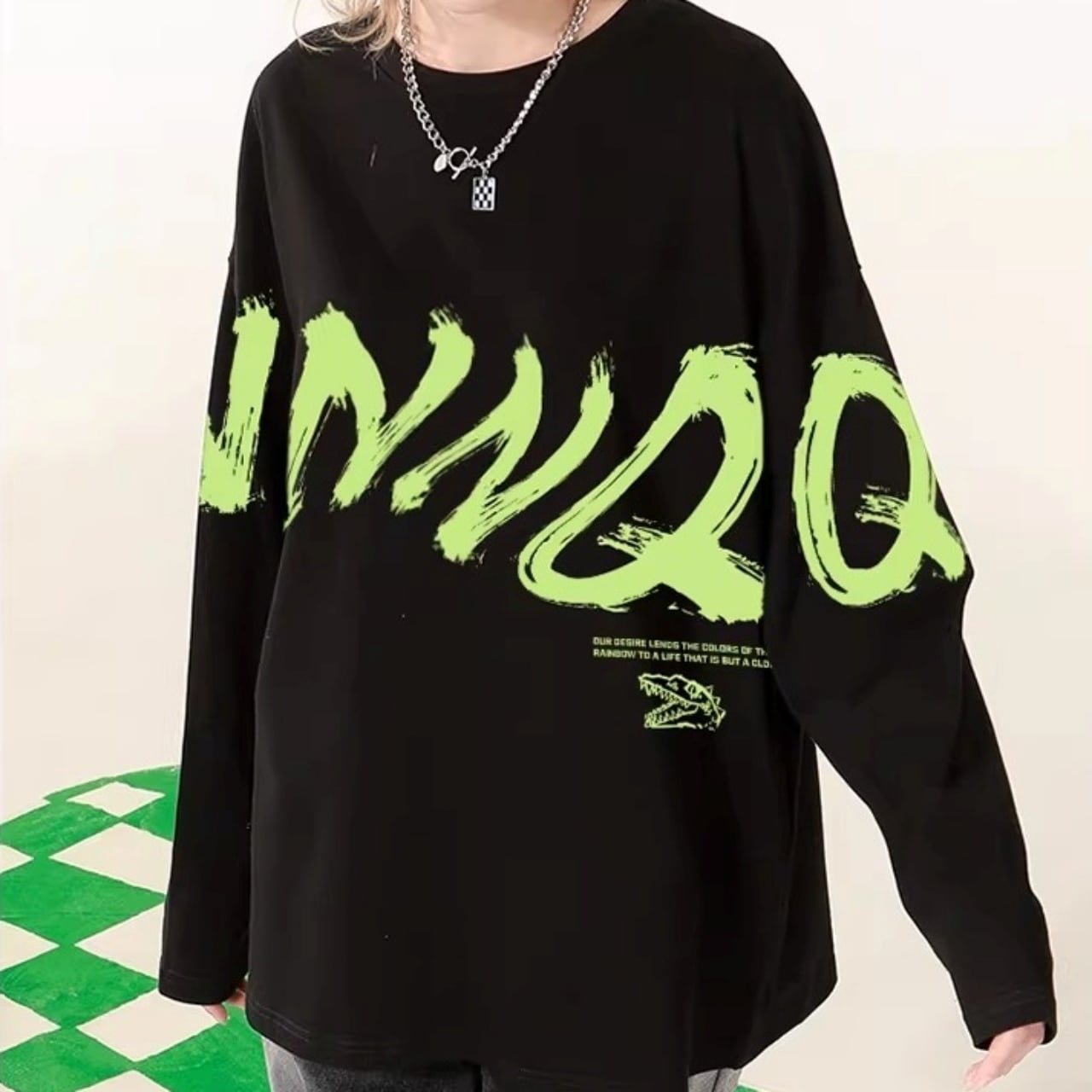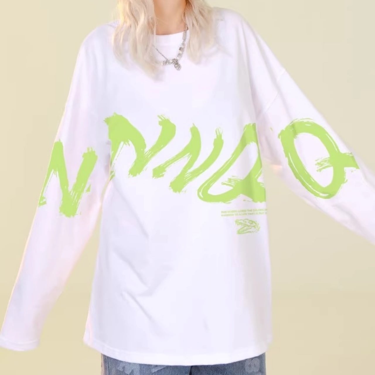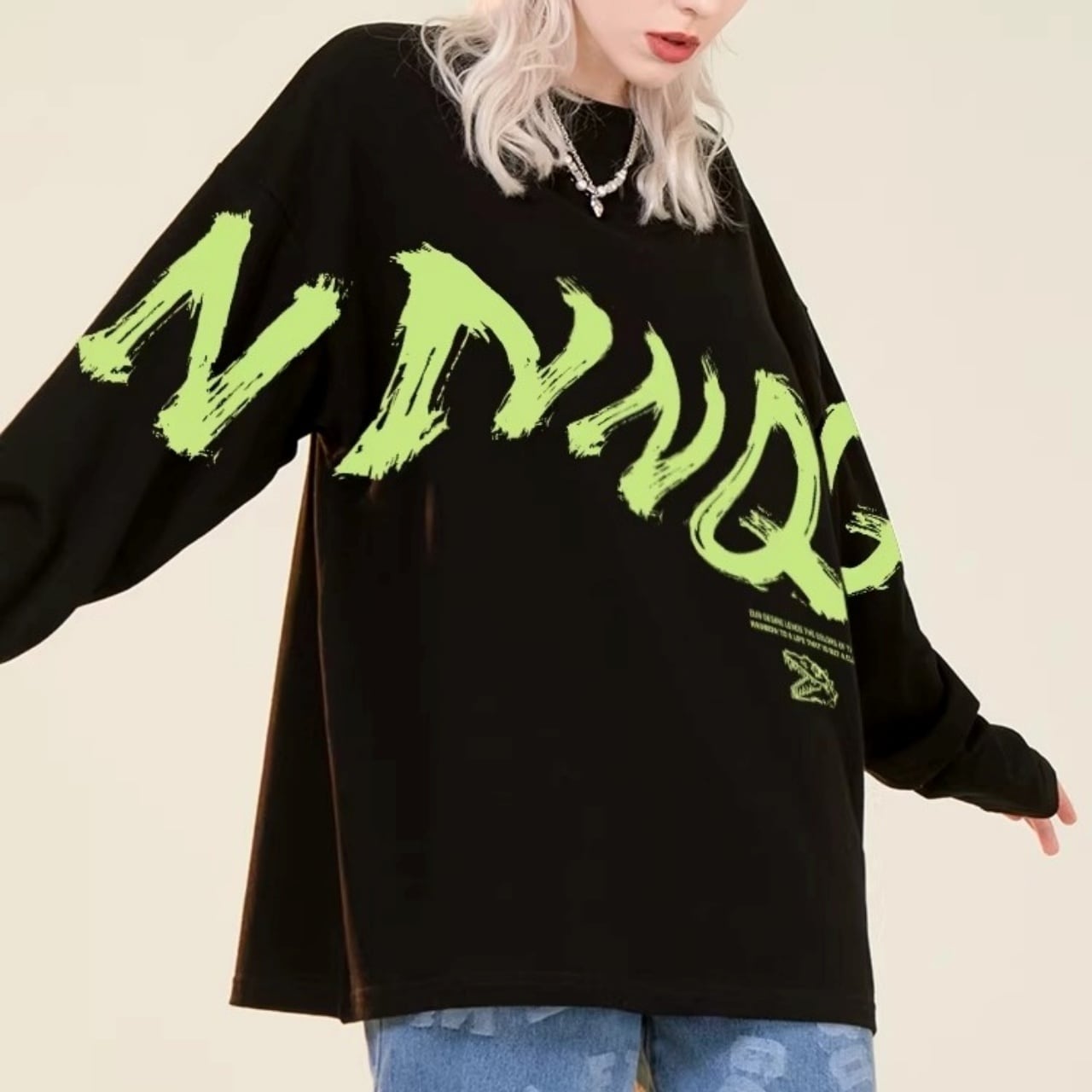 ダイナミックなロゴプリントが特徴的な、ラフシルエットのロンT。