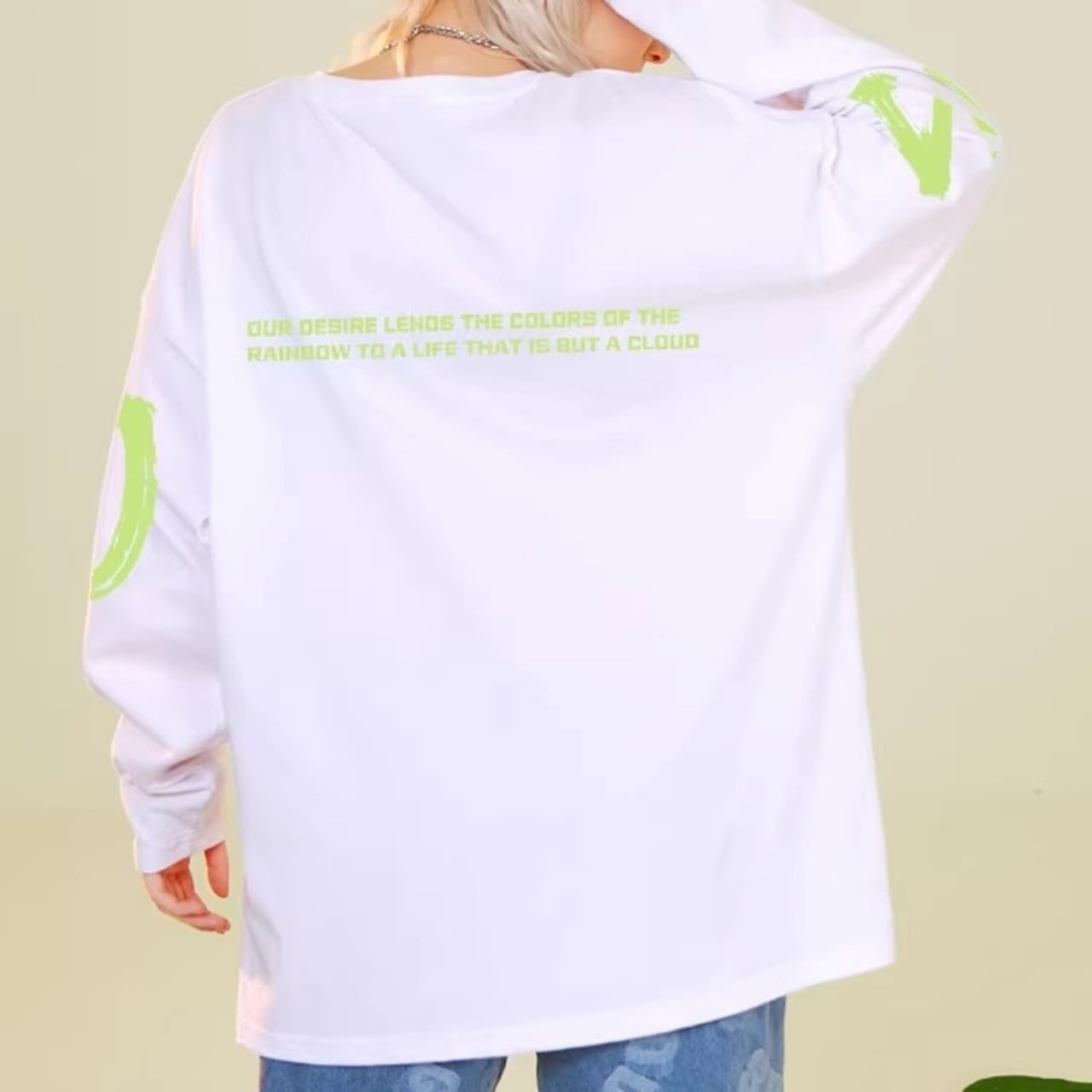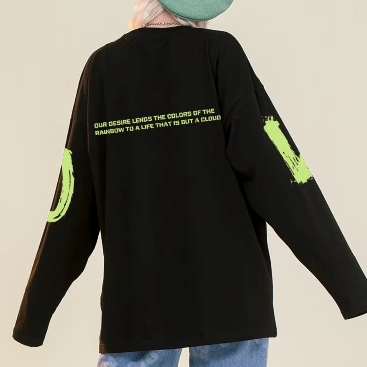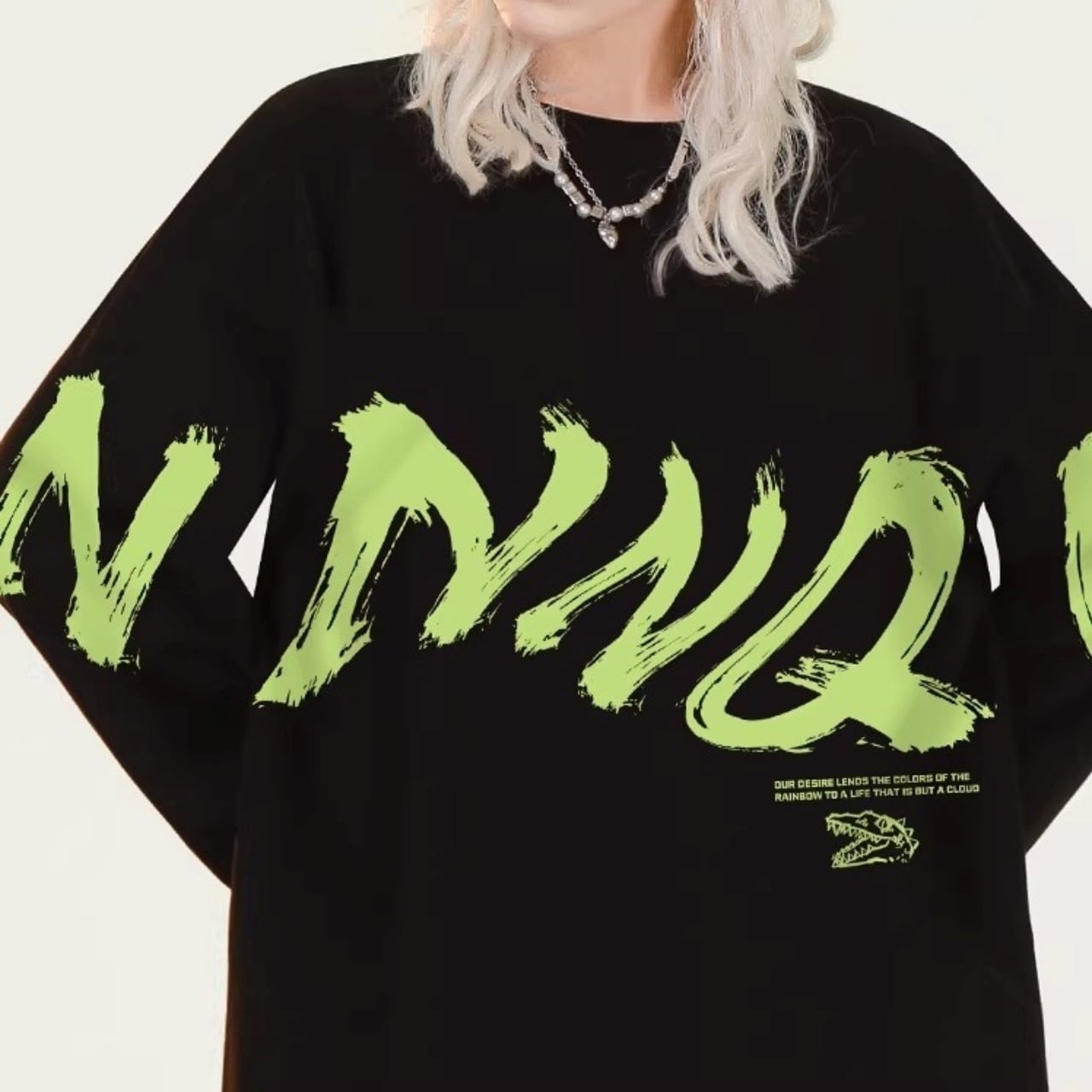 ダイナミックなロゴプリントが特徴的な、ラフシルエットのロンT。