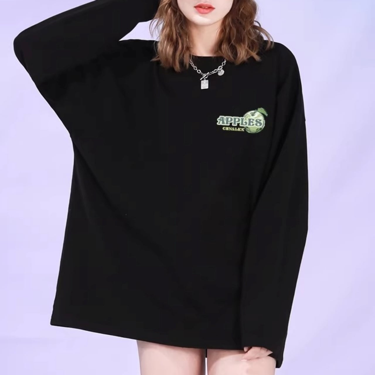 アップルモチーフグラフィックロングスリーブTシャツ 2col R01965