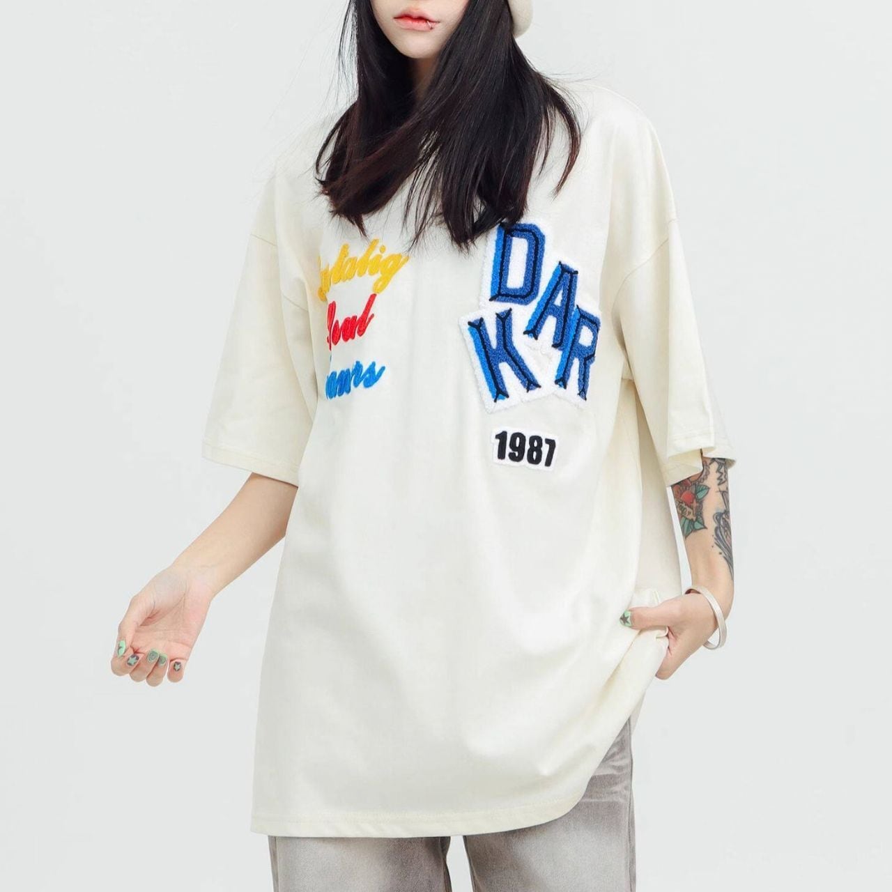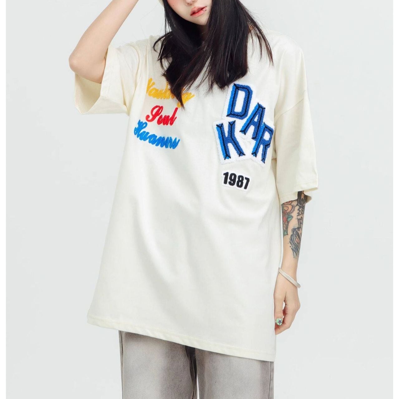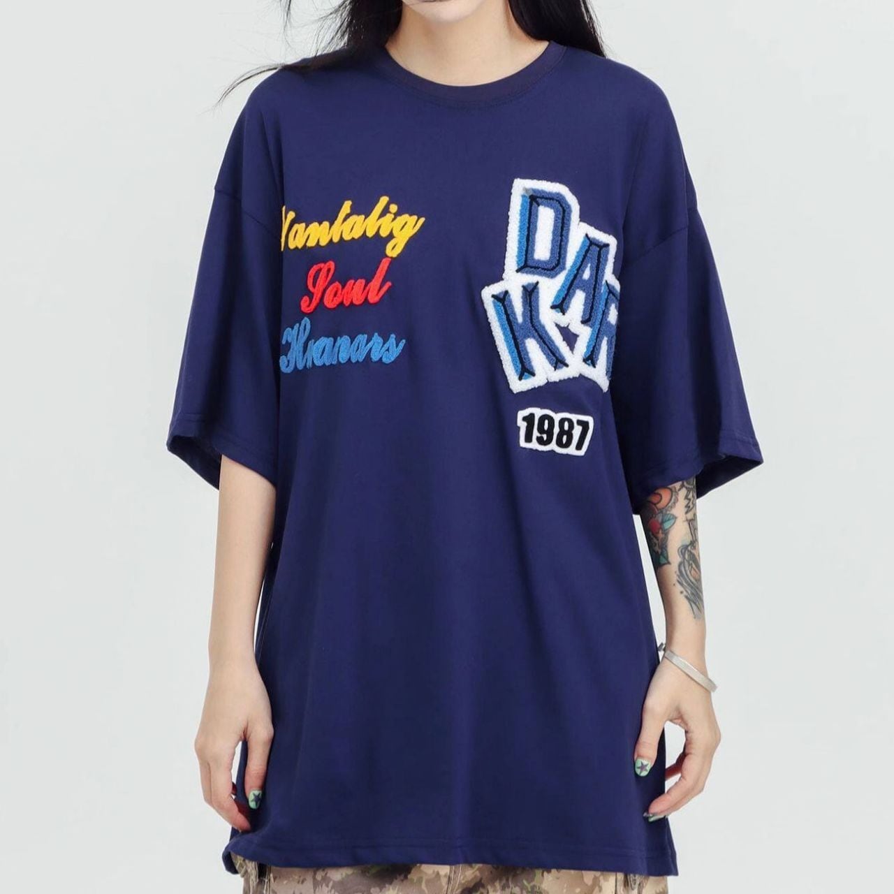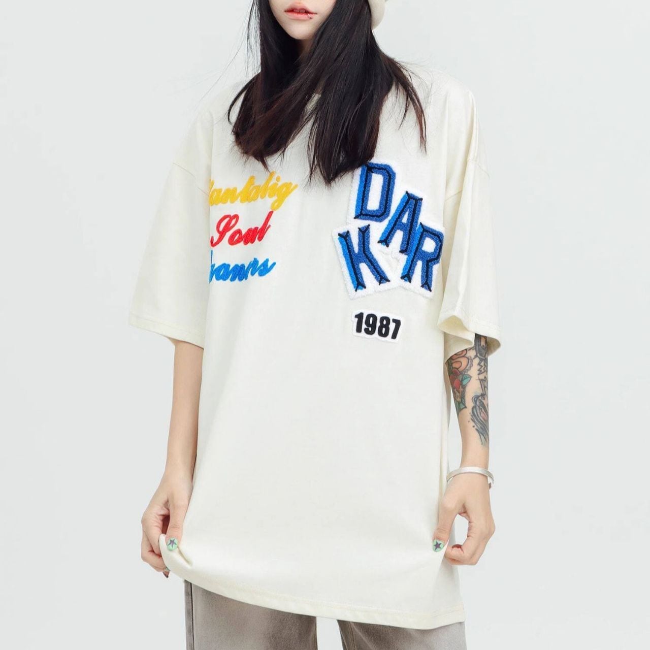 ロゴステッチハーフスリーブオーバーTシャツ 2col R01953