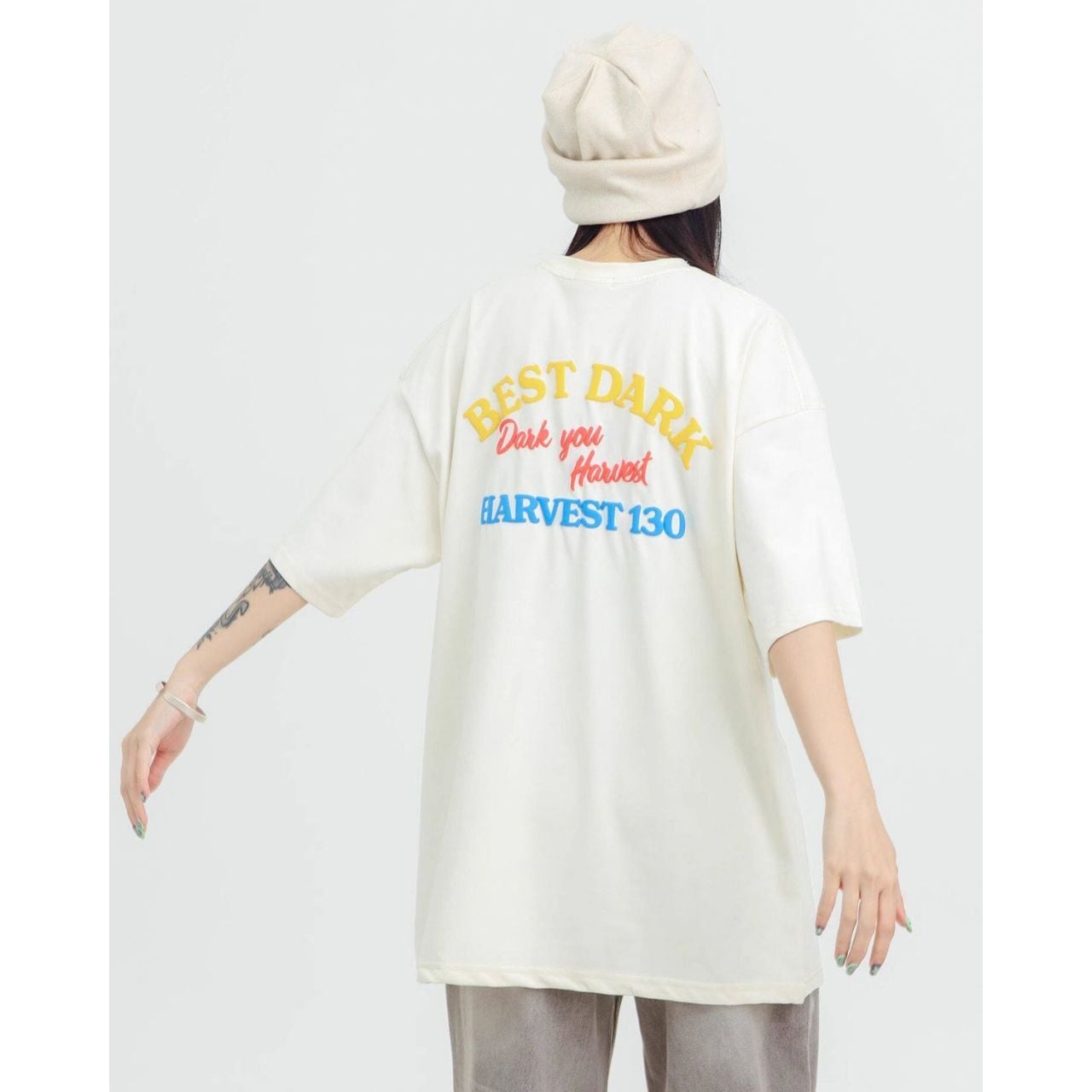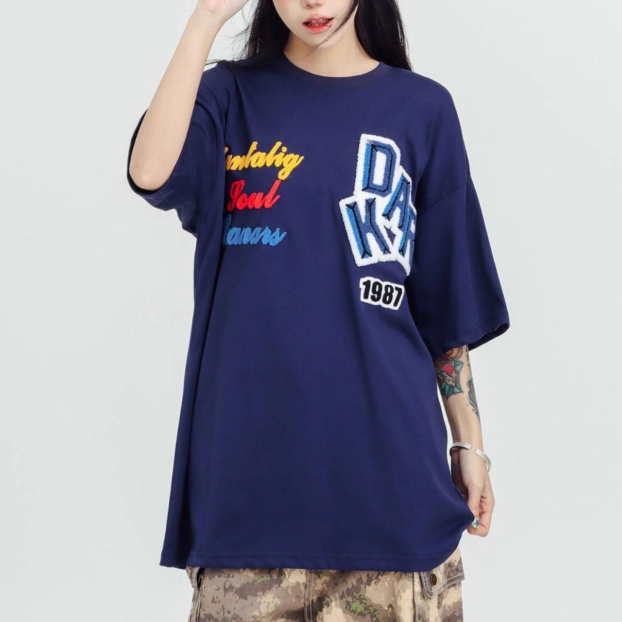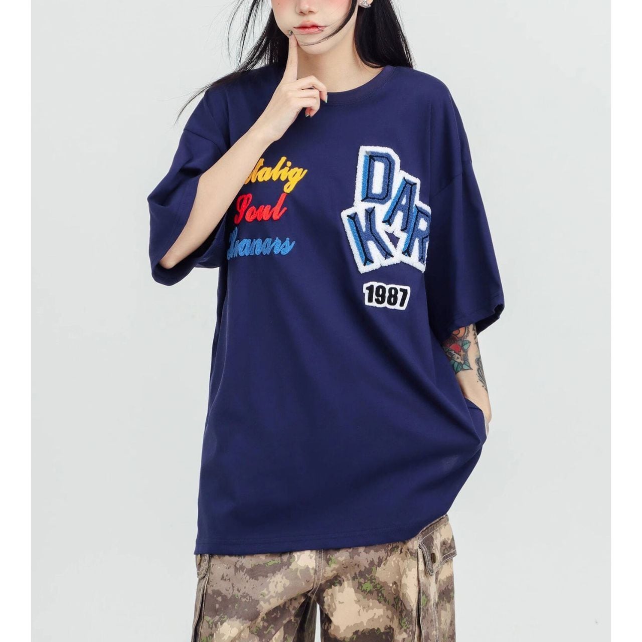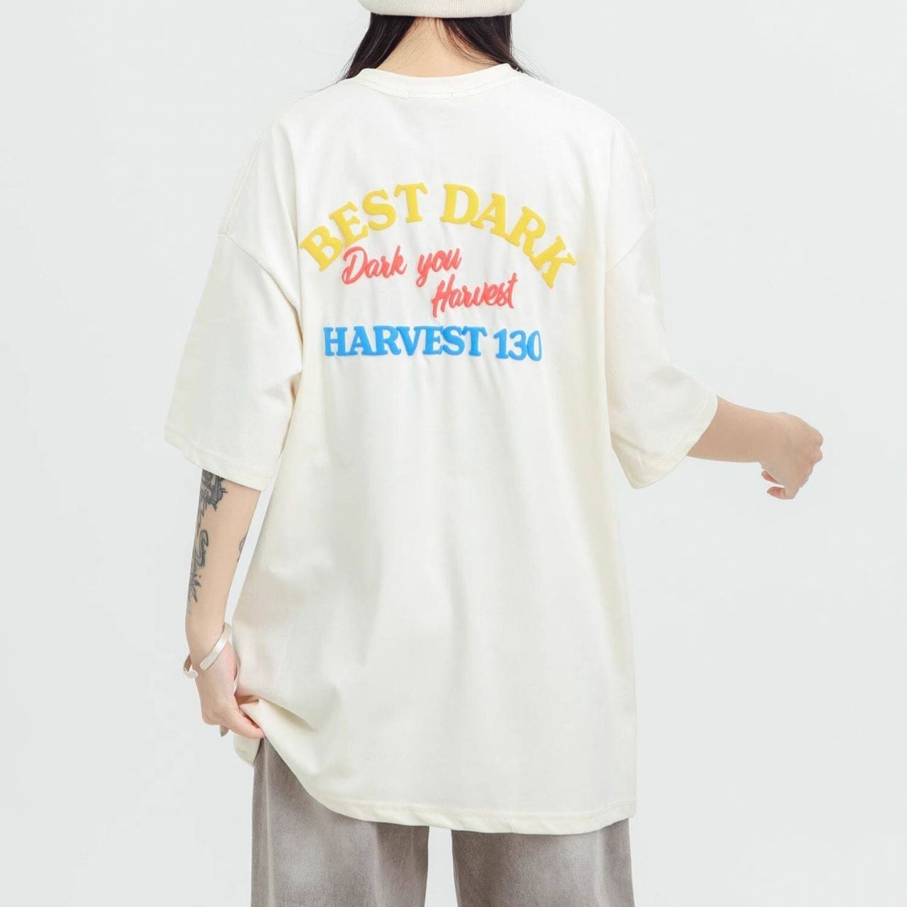 ロゴステッチハーフスリーブオーバーTシャツ 2col R01953