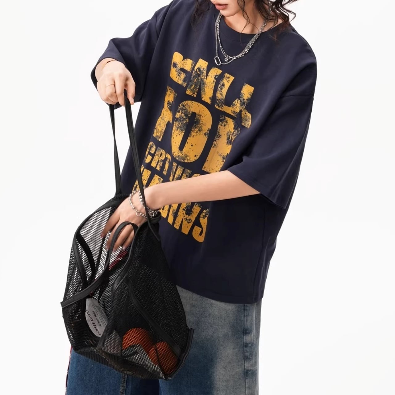 ルーズなドロップショルダーシルエットに、ロゴプリントが印象的なオーバーサイズTシャツ。