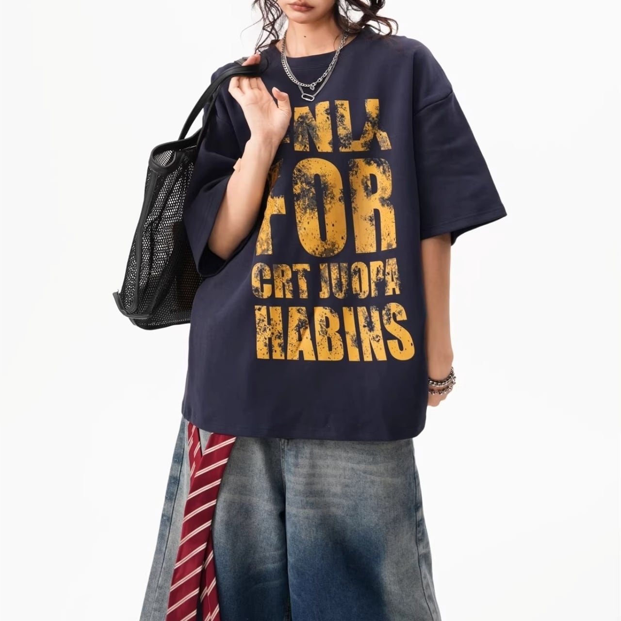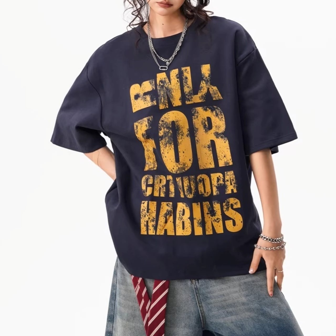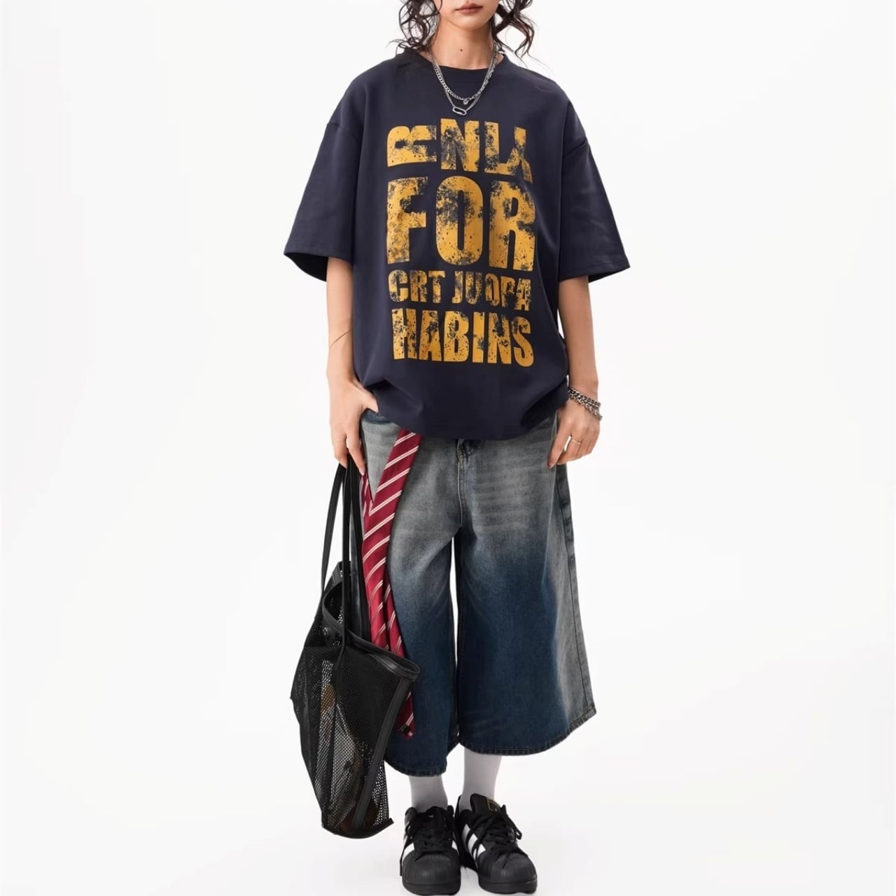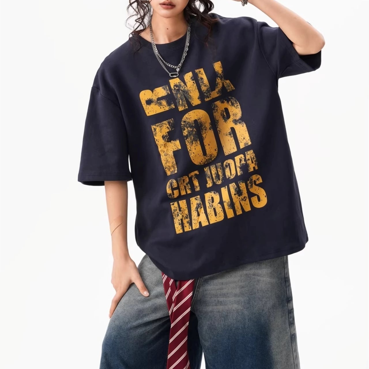 クラッシュダメージレタープリントハーフスリーブTシャツ 1col R01926