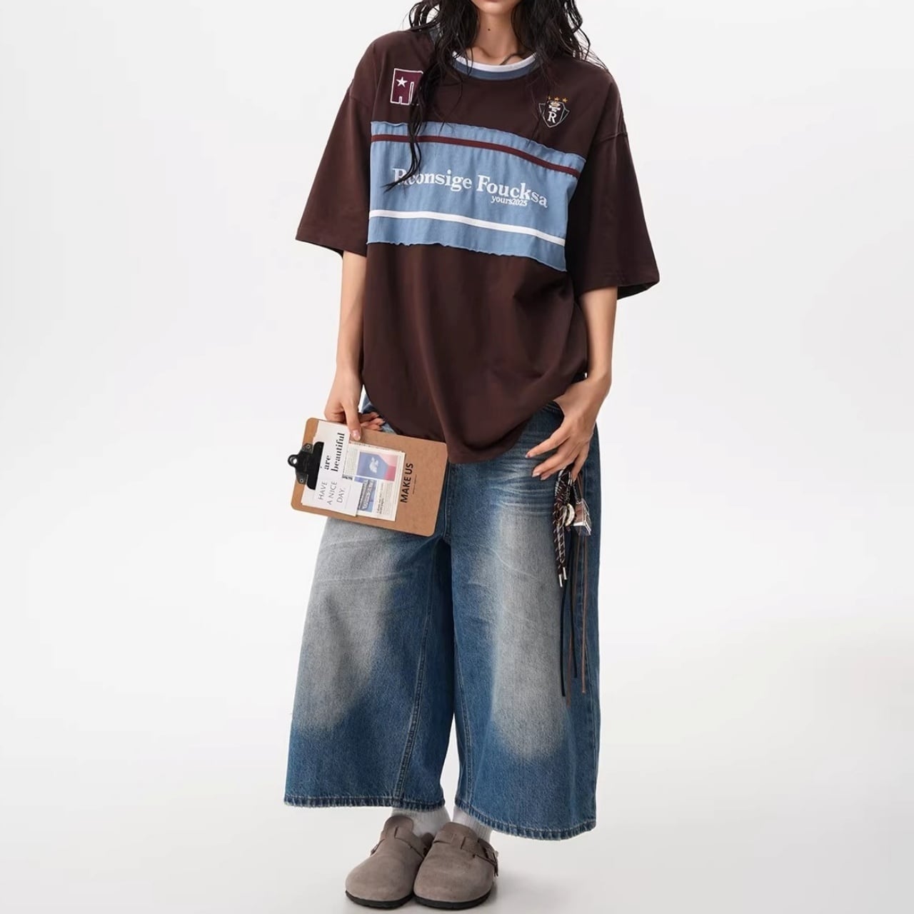 ワイドデニムやバケットハットを合わせて、ルーズなシルエットを楽しむカジュアルスタイルがおすすめです。