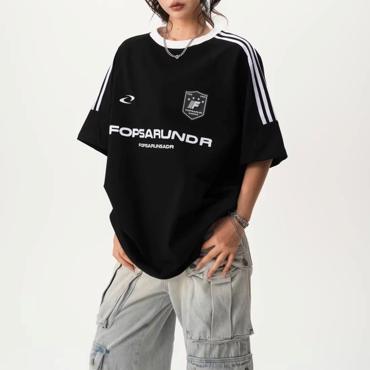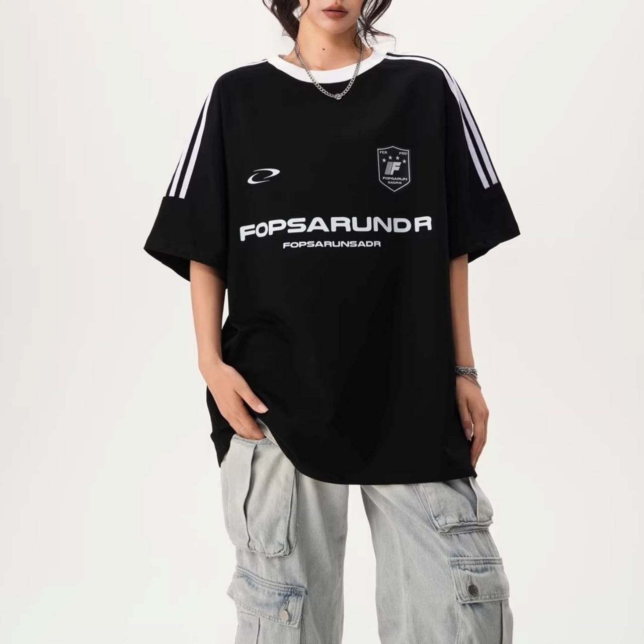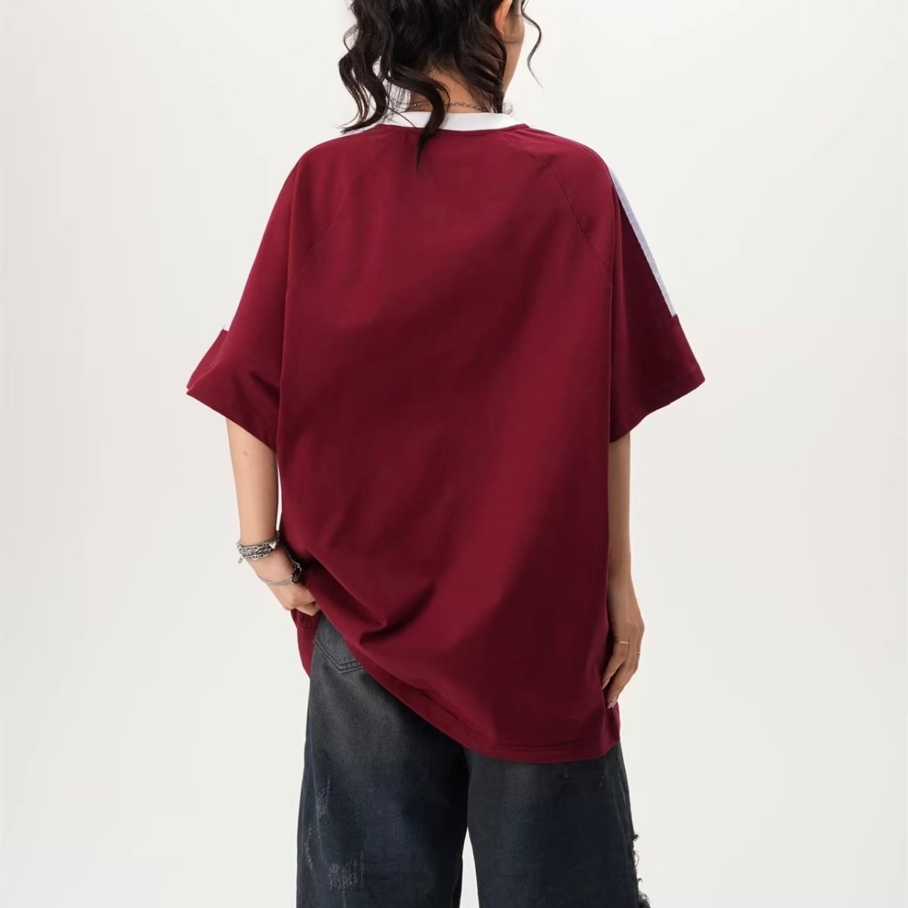 サイドラインルーズフォルムリンガーTシャツ 4col R01932