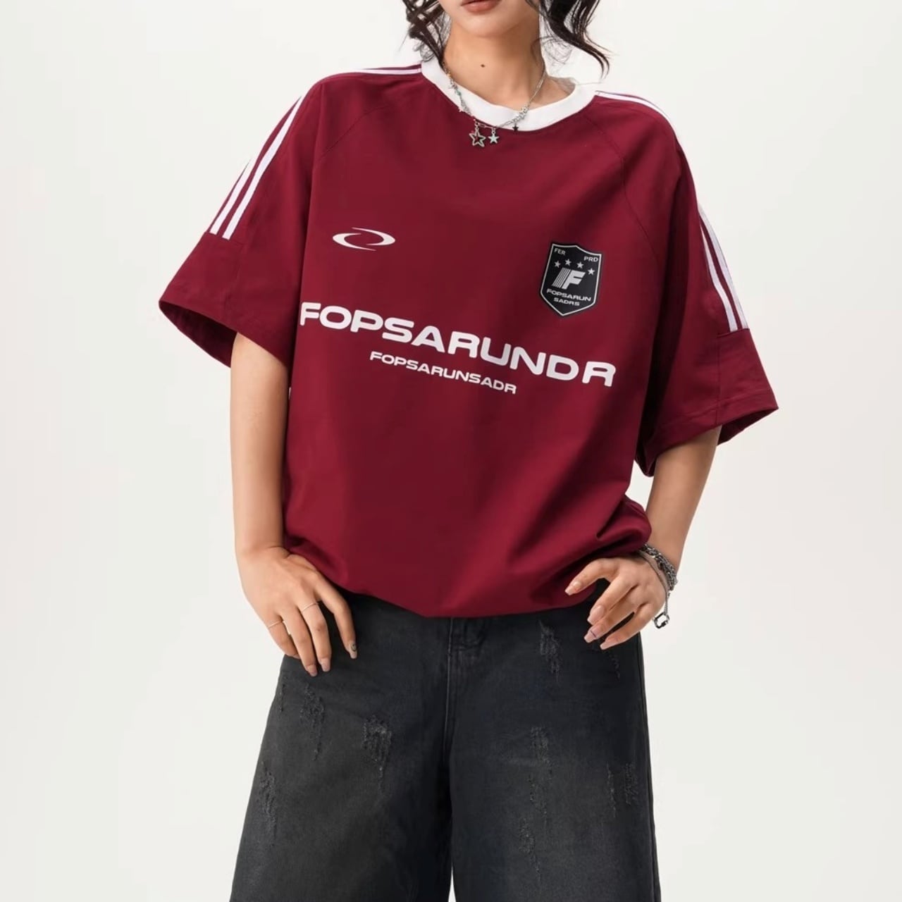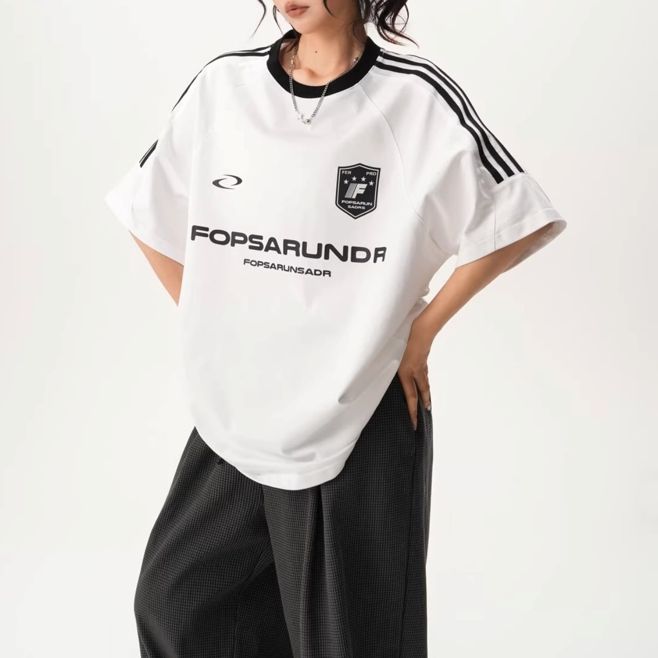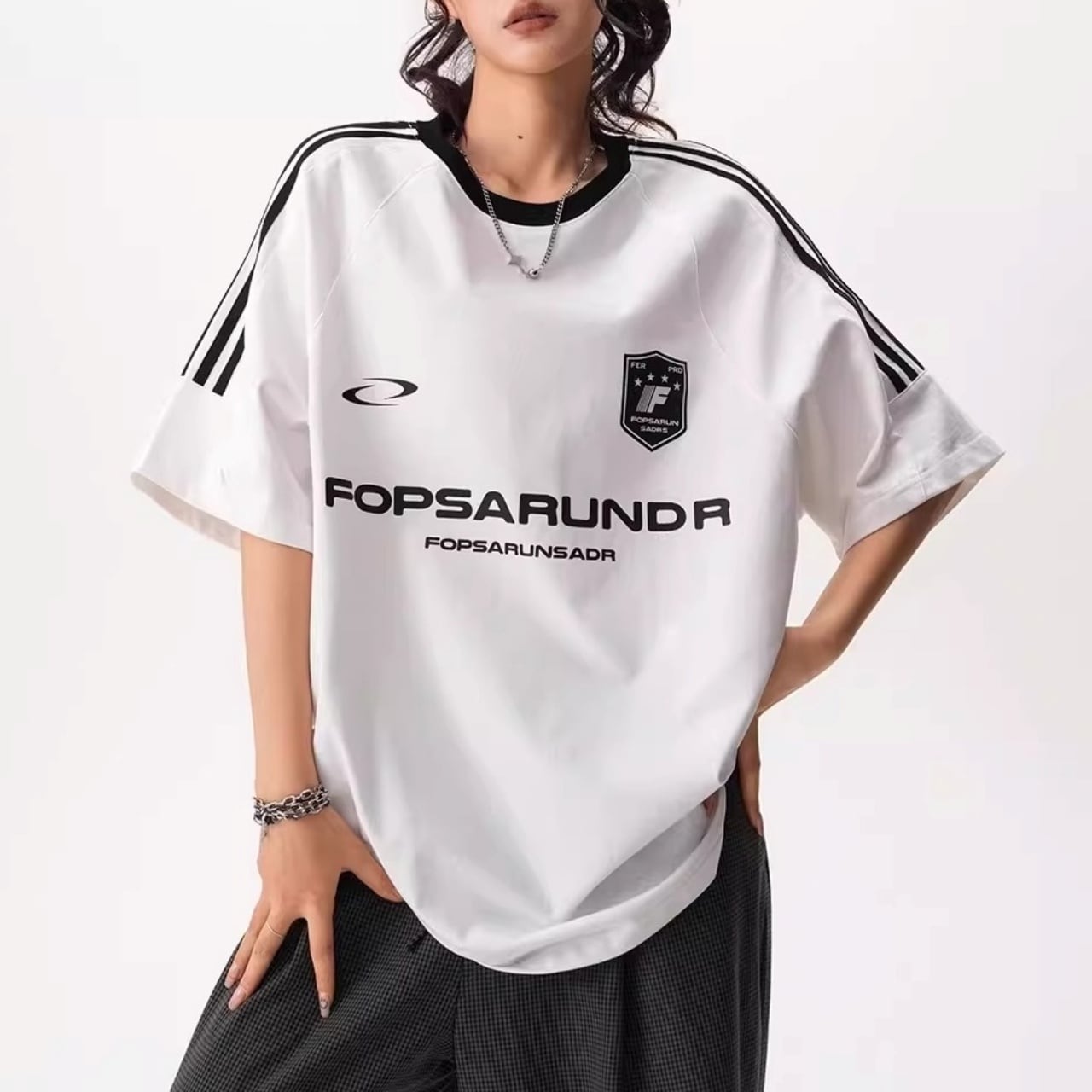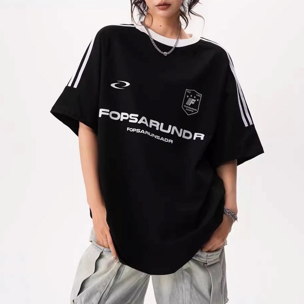 サイドラインルーズフォルムリンガーTシャツ 4col R01932