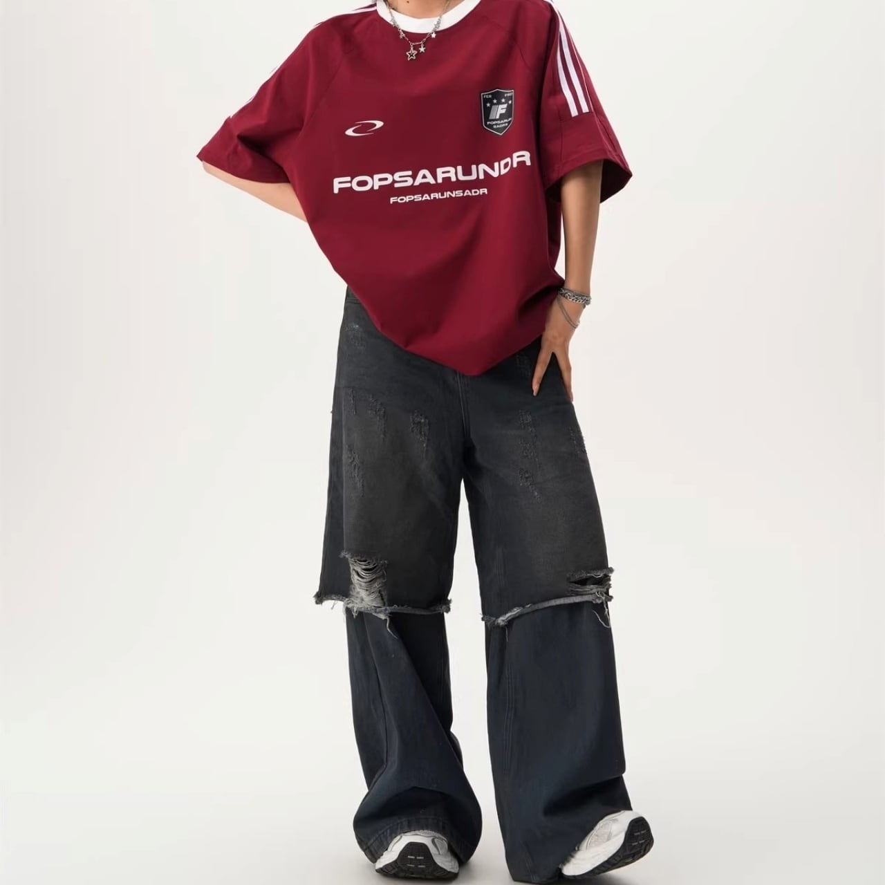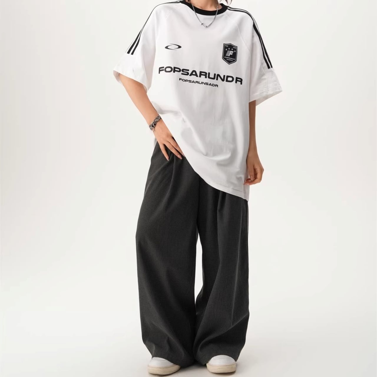 ワイドパンツやデニムと合わせて、トレンド感のあるスタイリングを楽しめます。