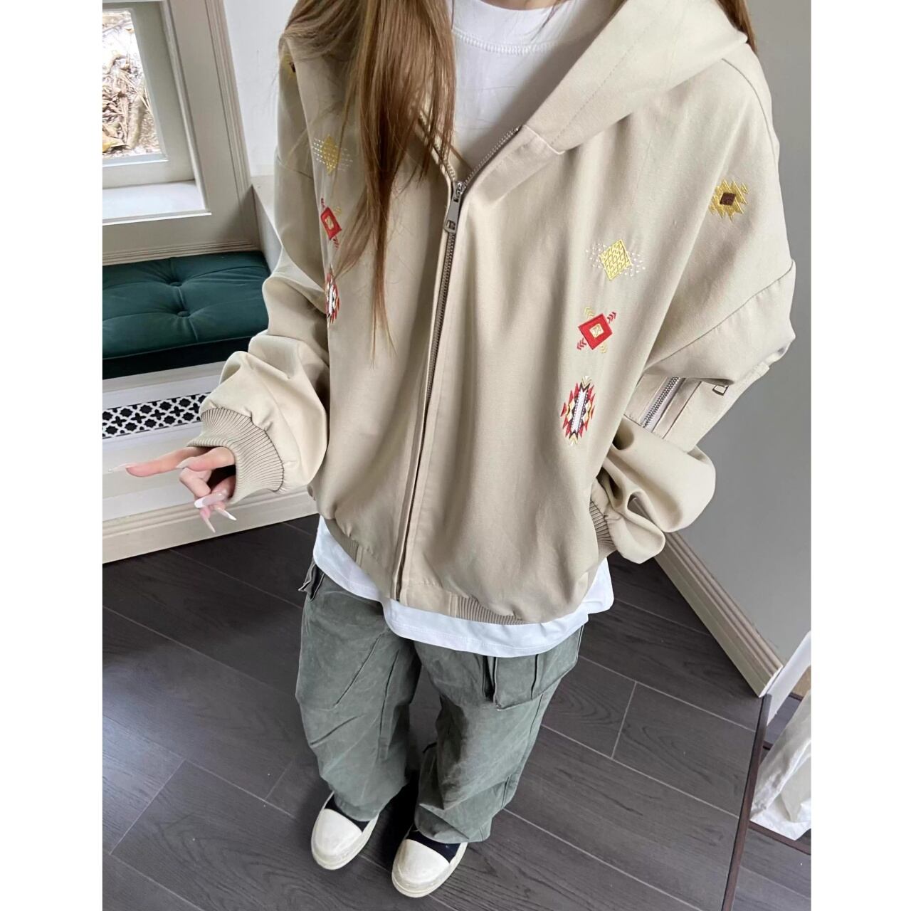 エスニックスタイルジップフーディーブルゾン 2col R01935