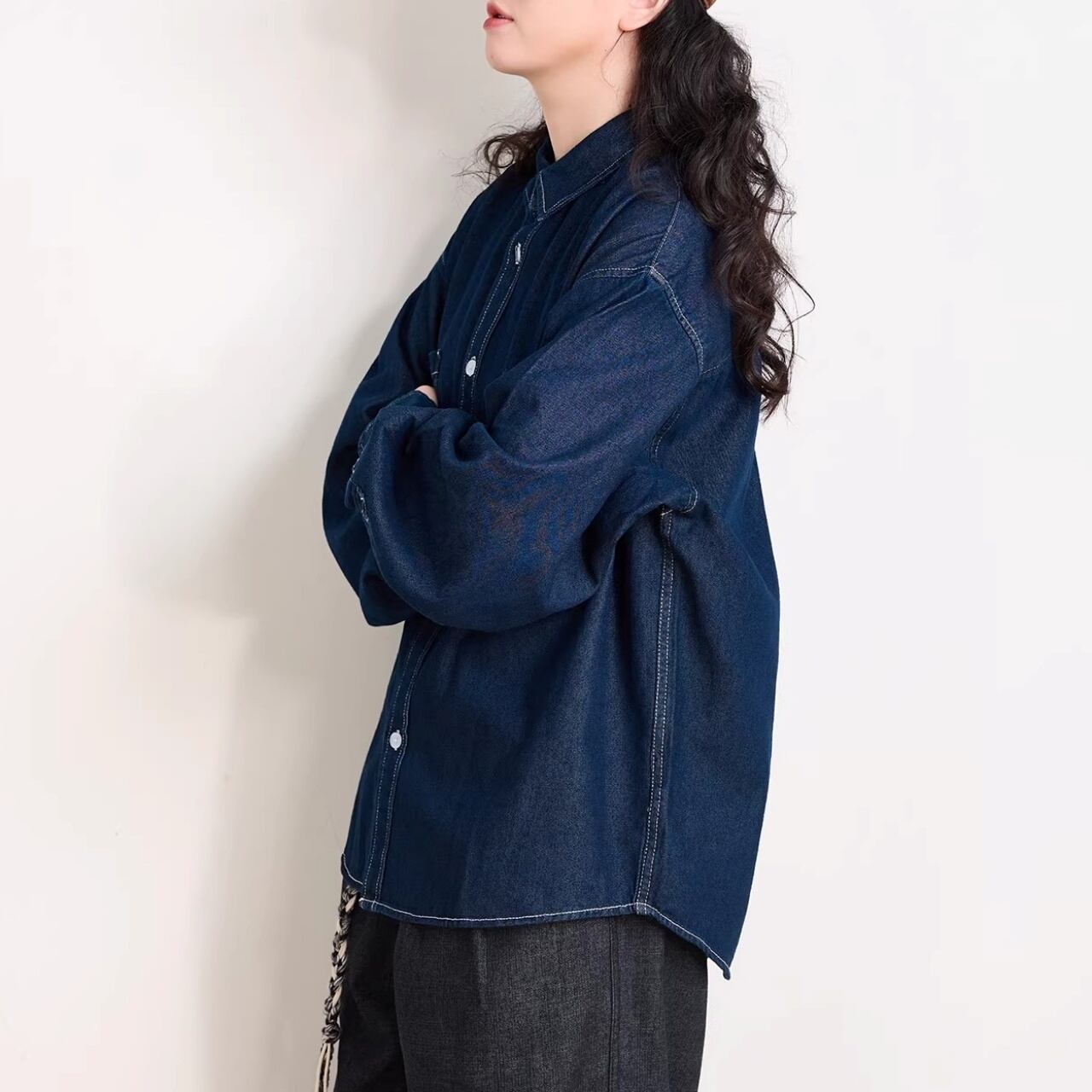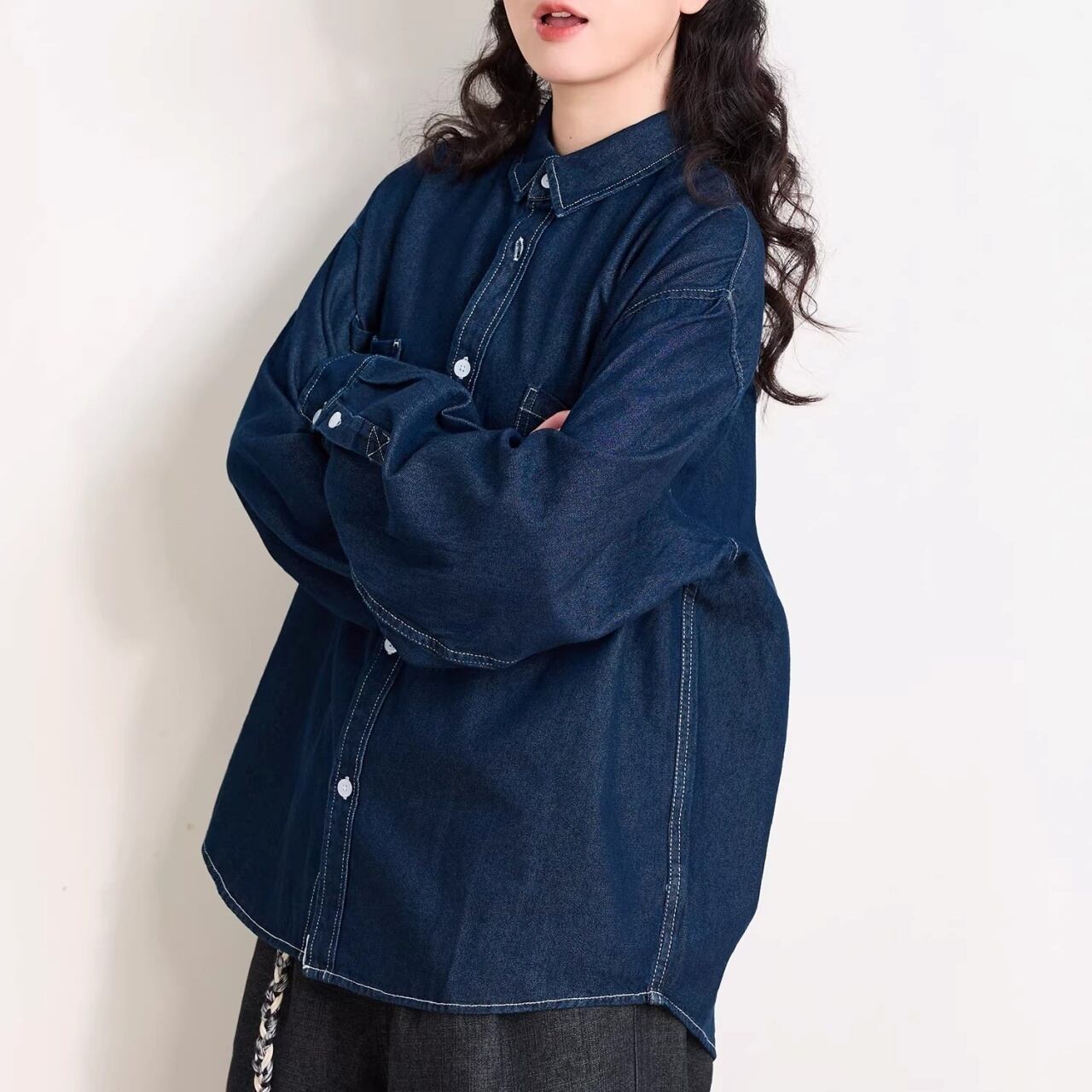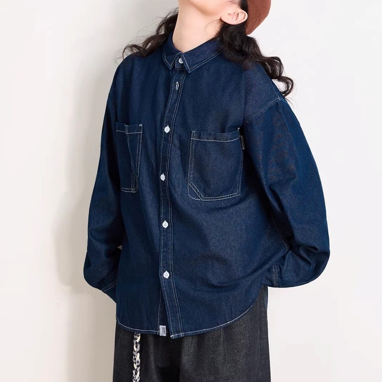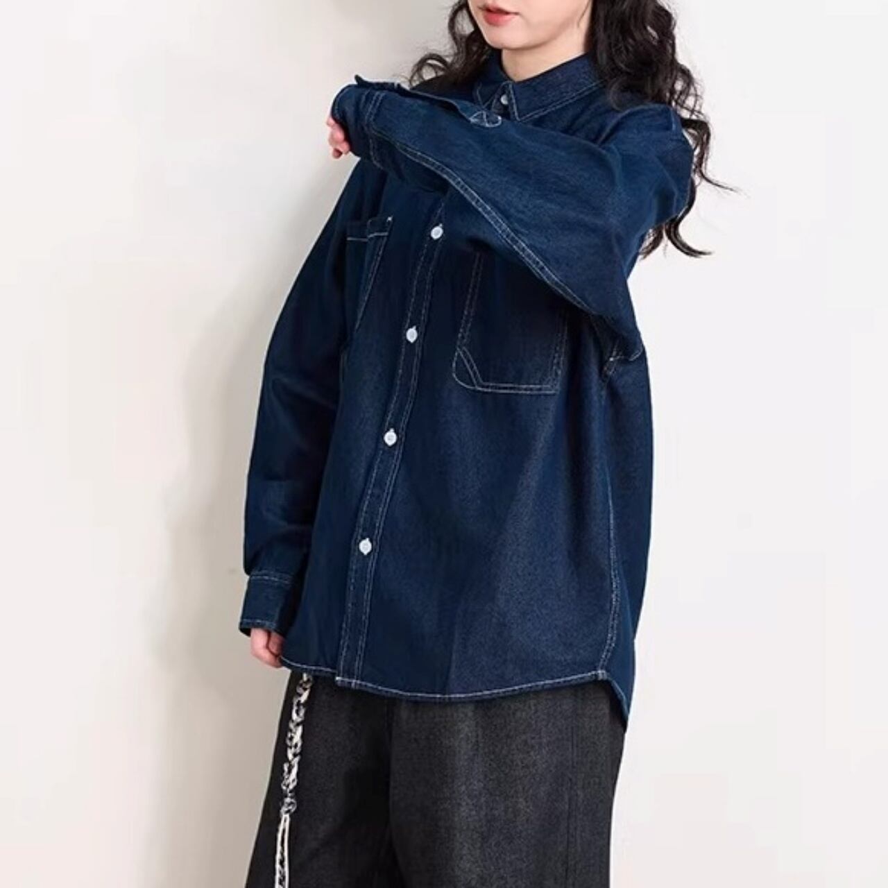 ダブルポケットステッチルーズラインデニムシャツ 1col R01938