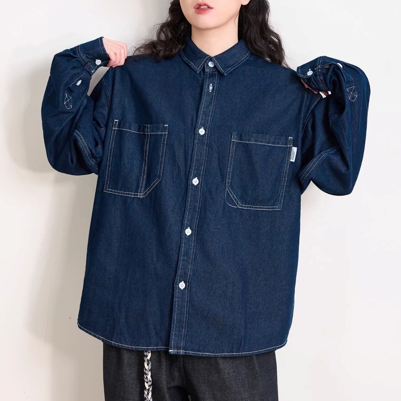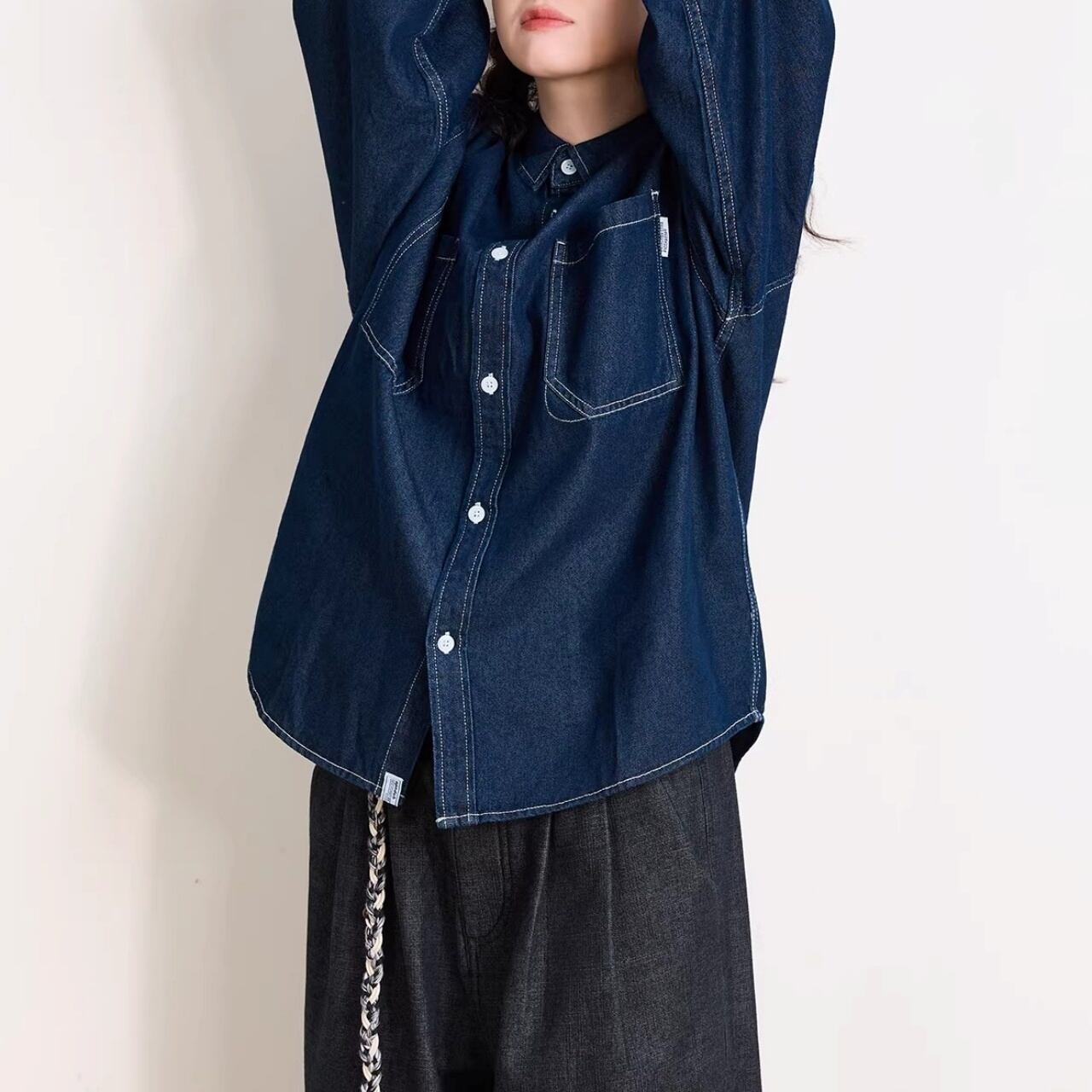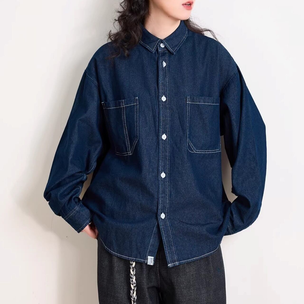 ダブルポケットステッチルーズラインデニムシャツ 1col R01938