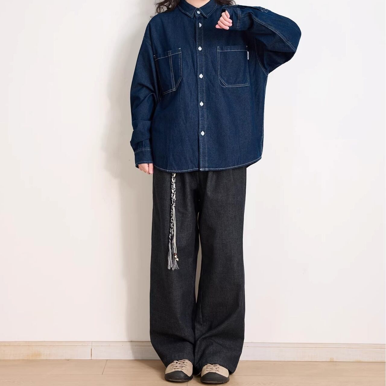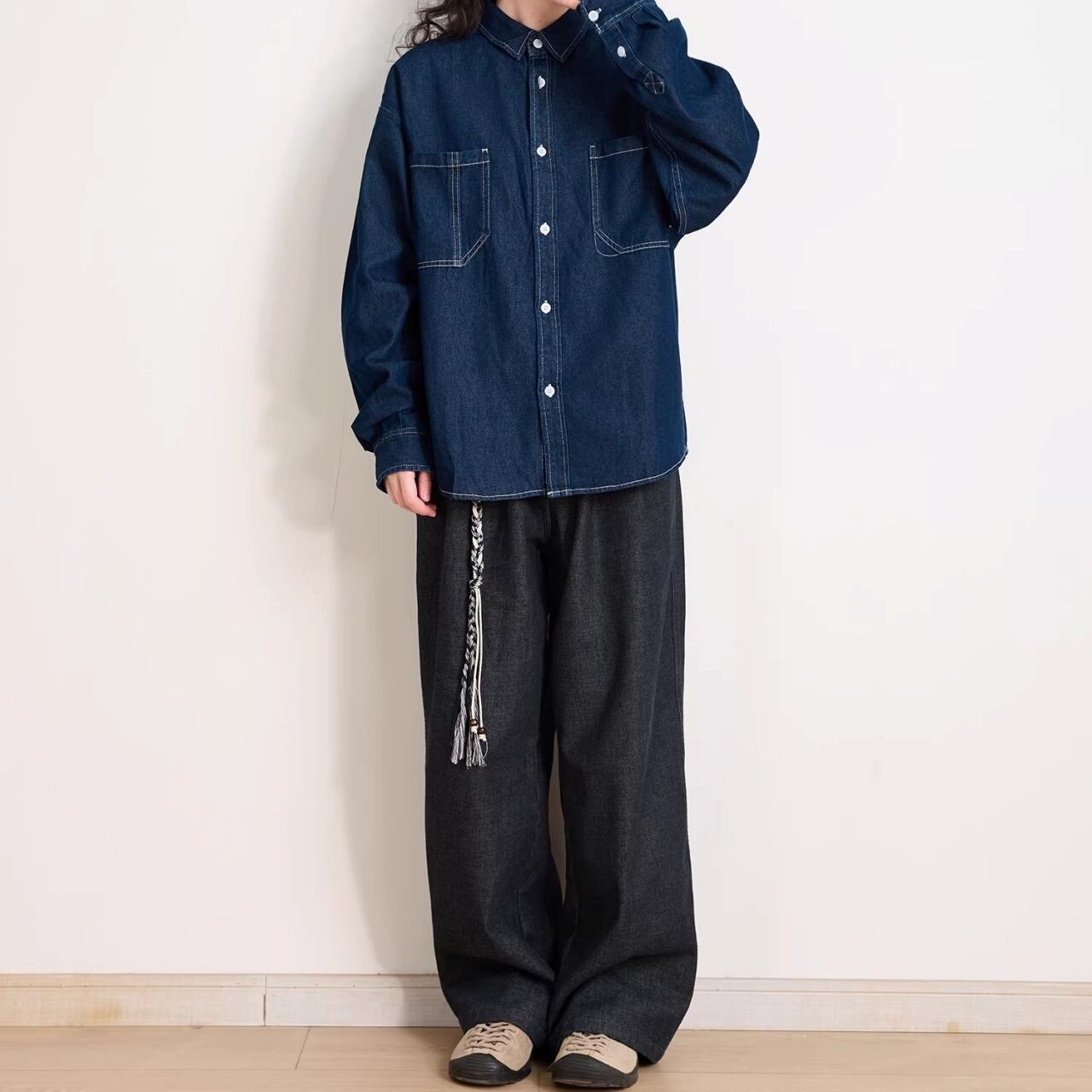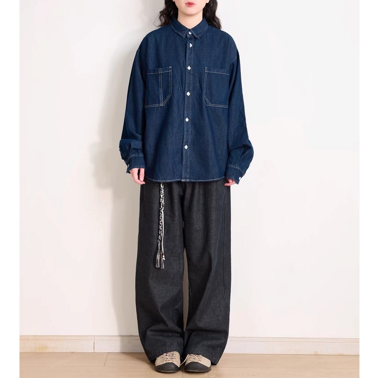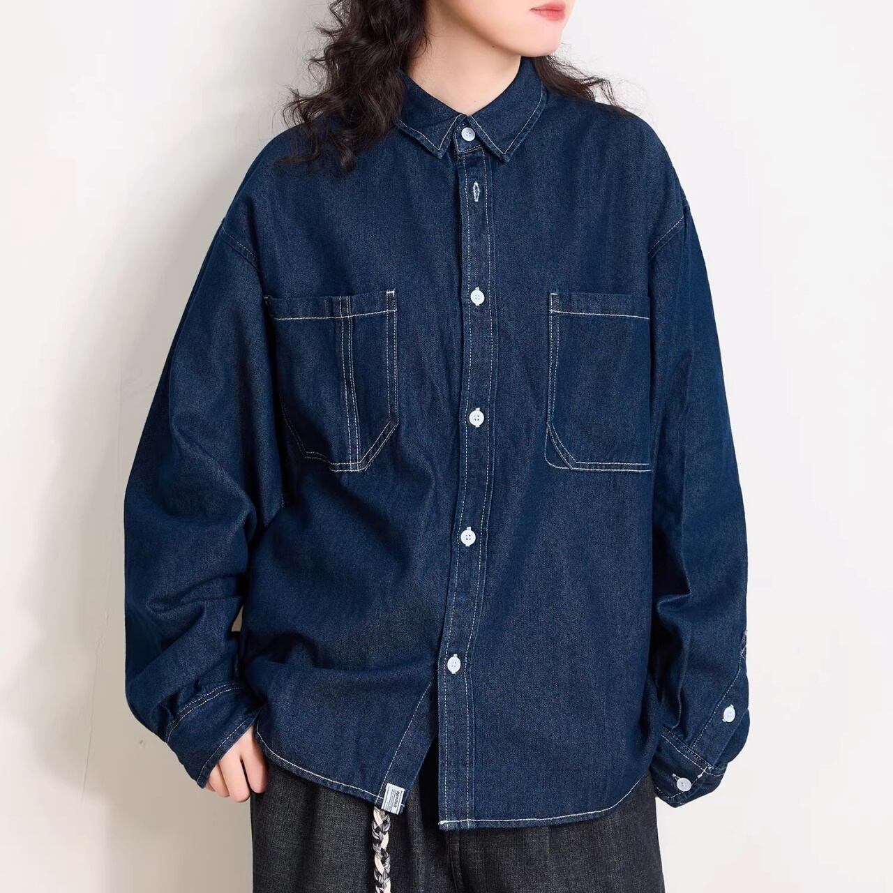ダブルポケットステッチルーズラインデニムシャツ 1col R01938