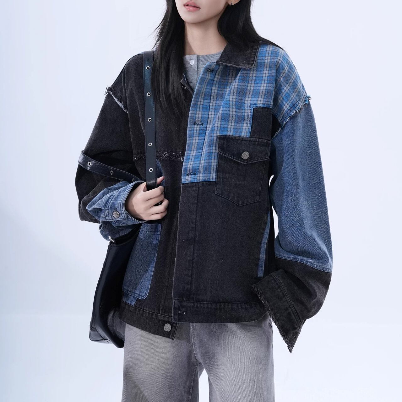 チェックドッキングリメイクライクデニムジャケット 1col R01947