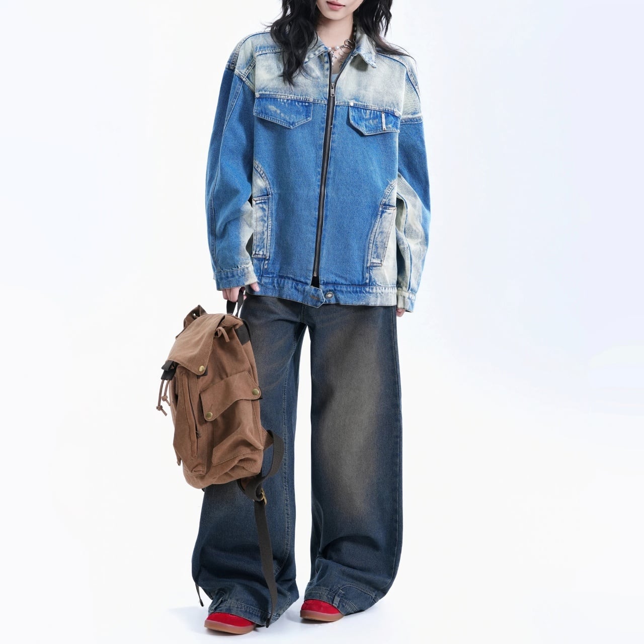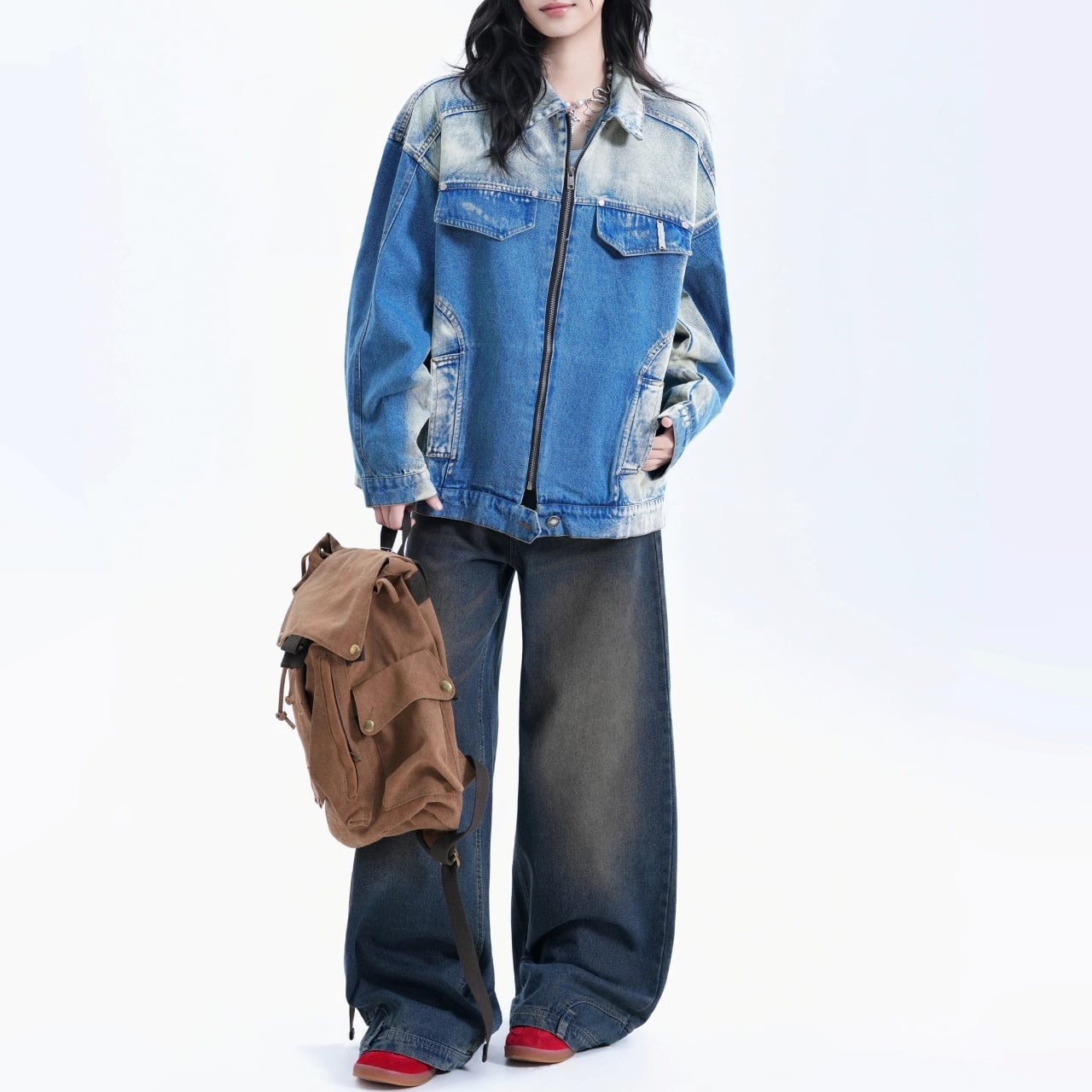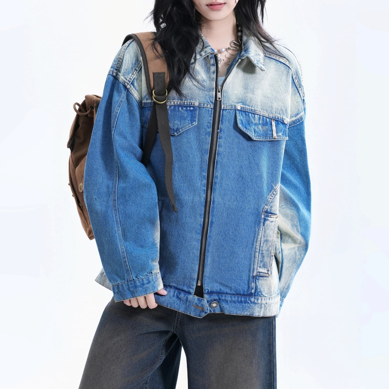 ヴィンテージライクグラデーションジップデニムジャケット 1col R01948