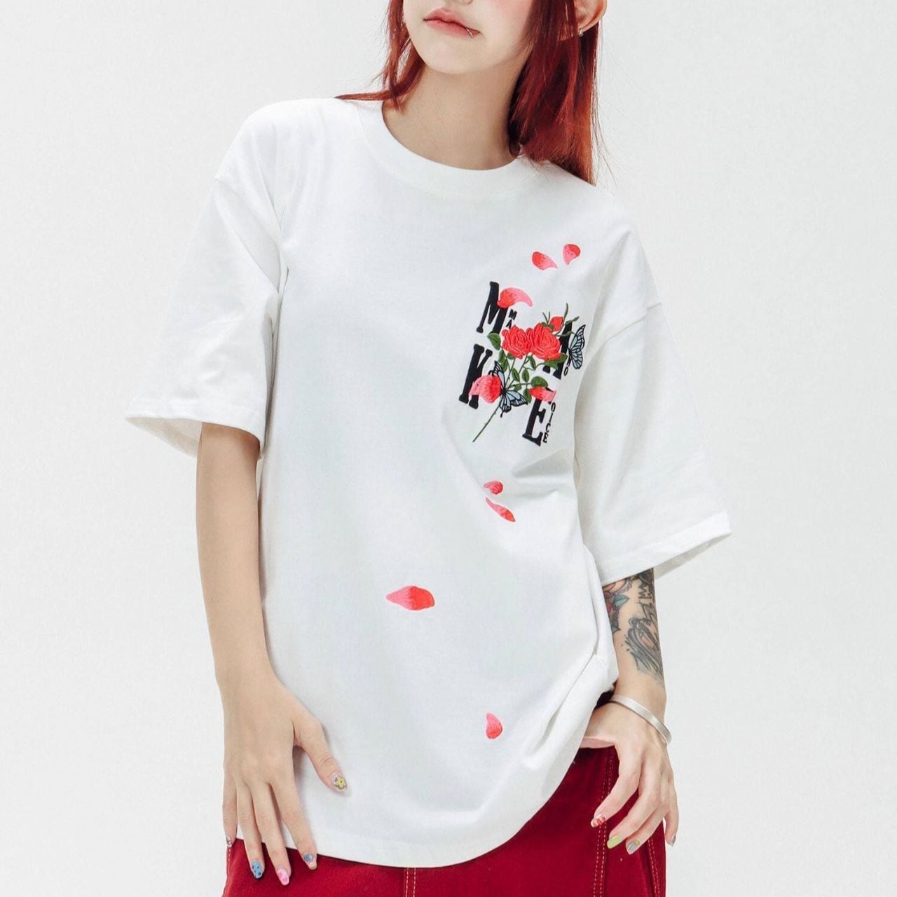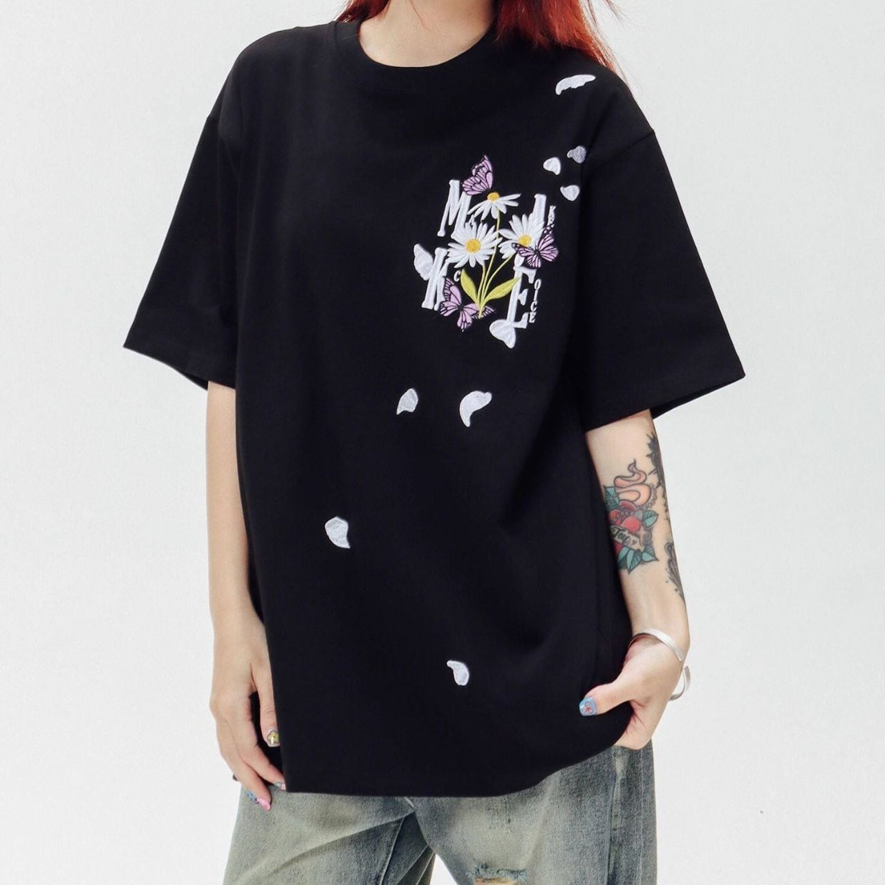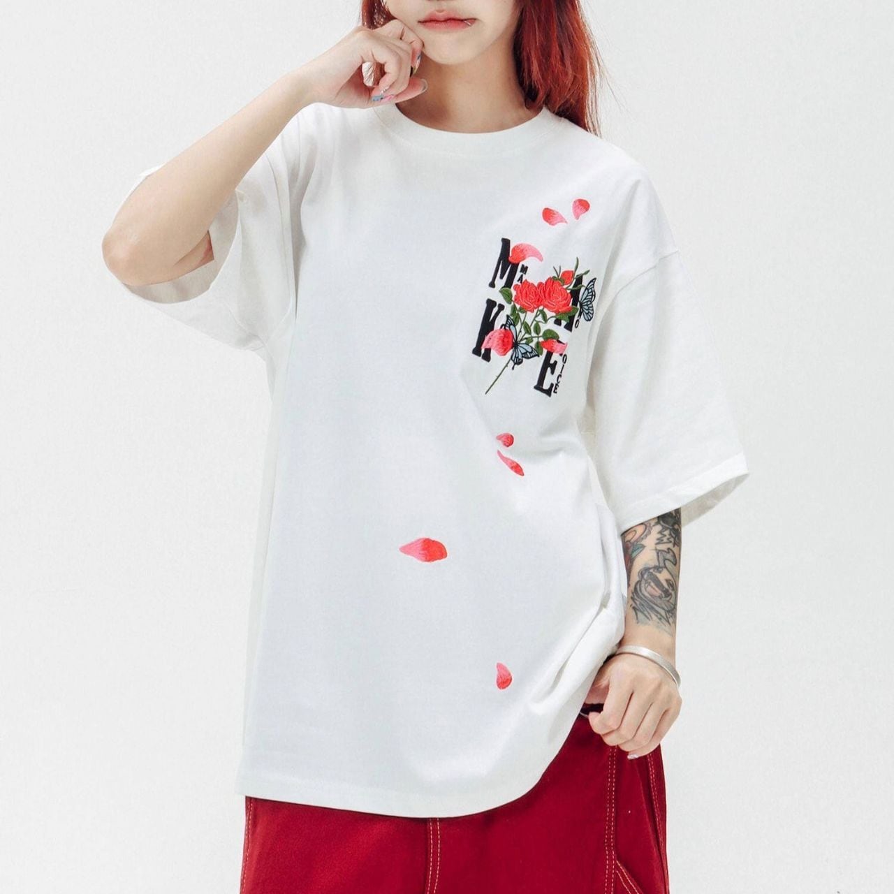 ロゴフラワープリントハーフスリーブオーバーTシャツ 3col R01956