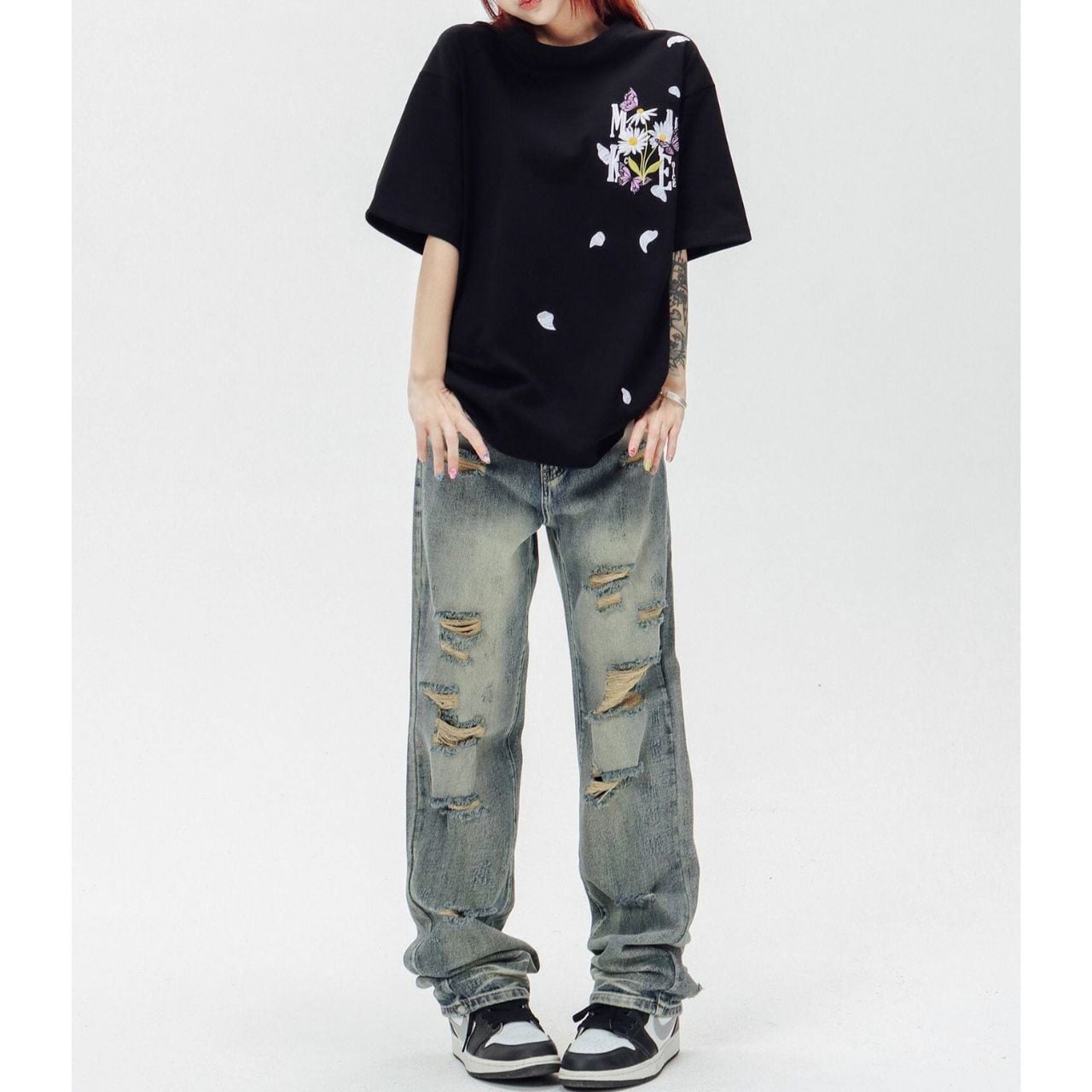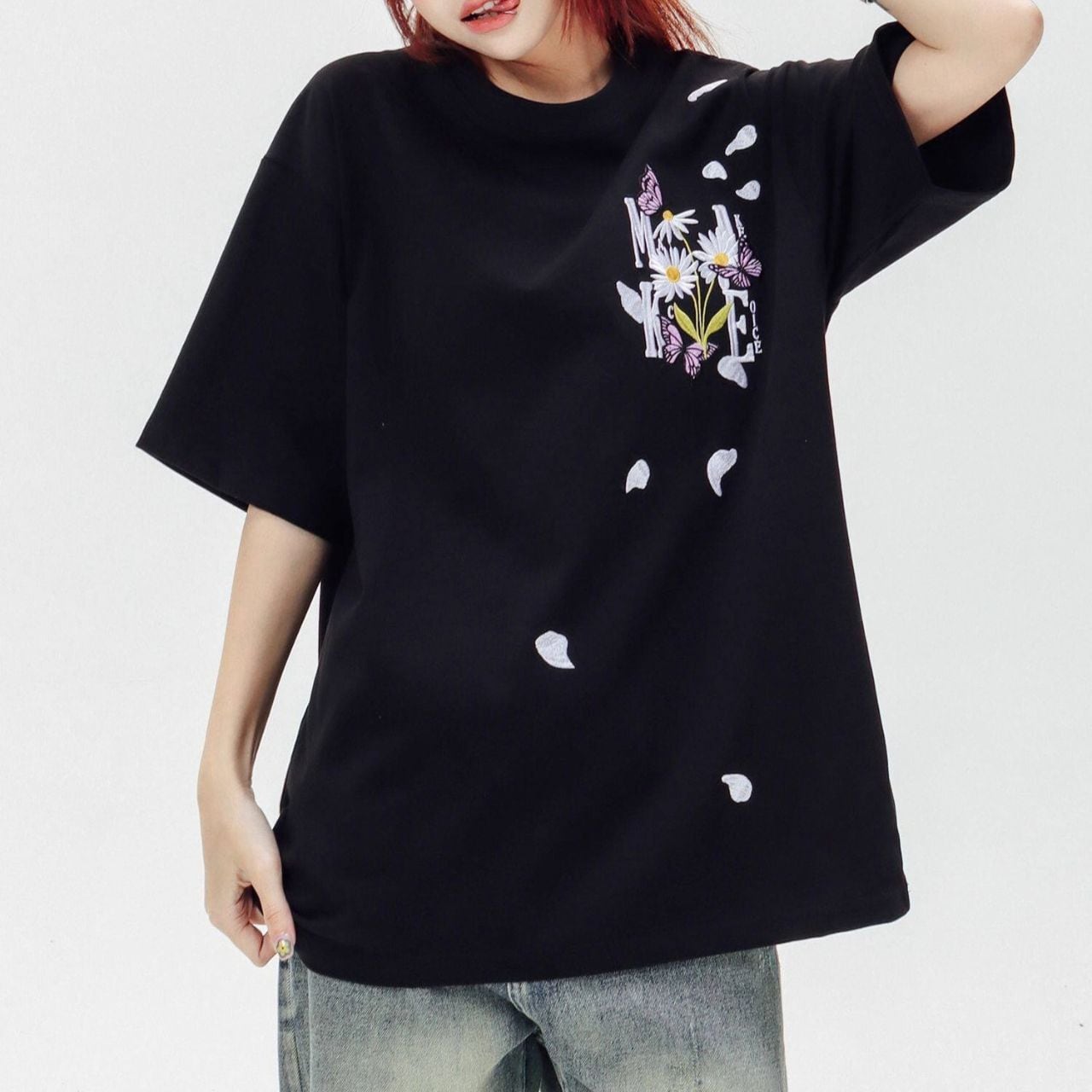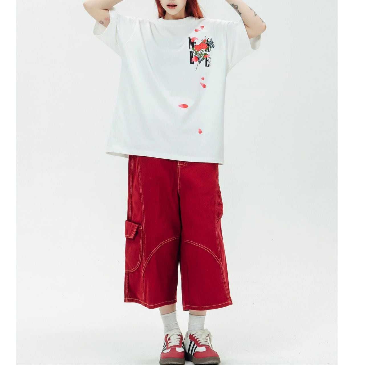ロゴフラワープリントハーフスリーブオーバーTシャツ 3col R01956