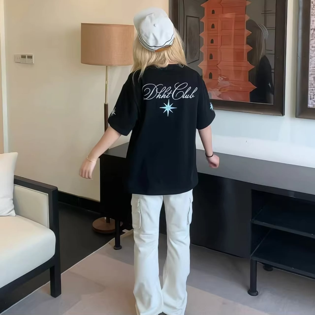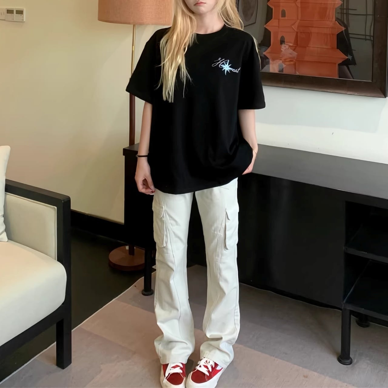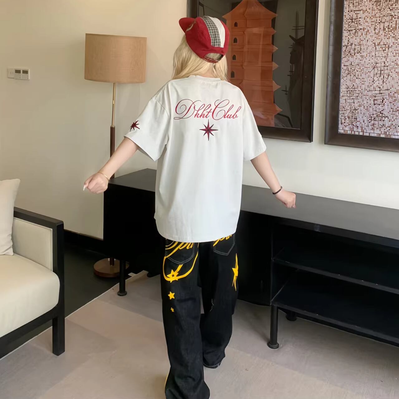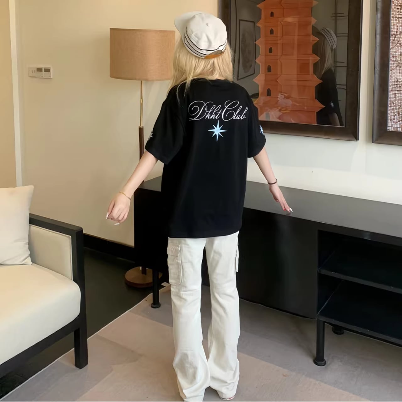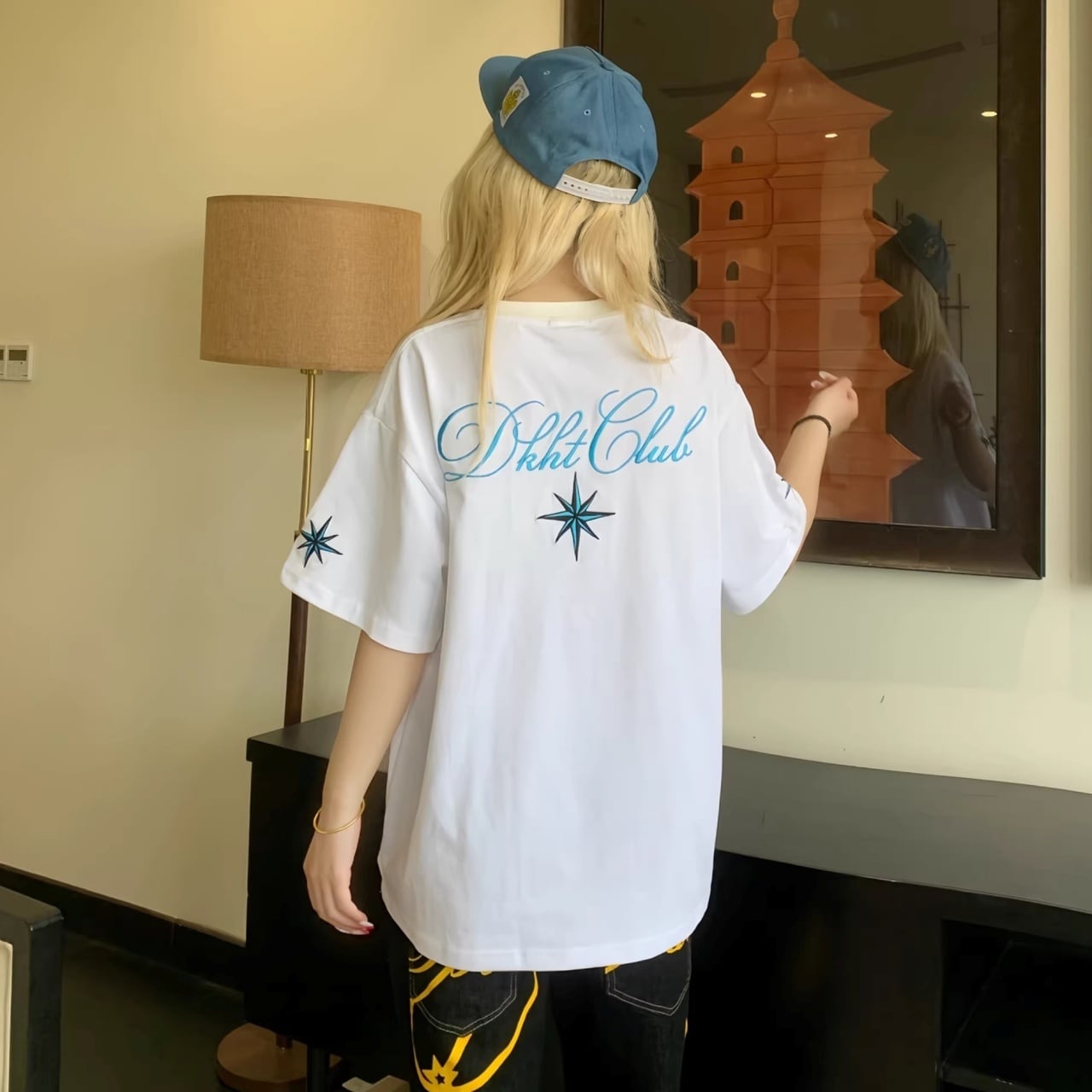 ワイドデニムやバケットハットを合わせて、ルーズなこなれ感を楽しむスタリングがおすすめです。
