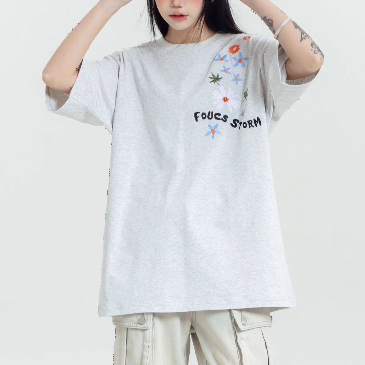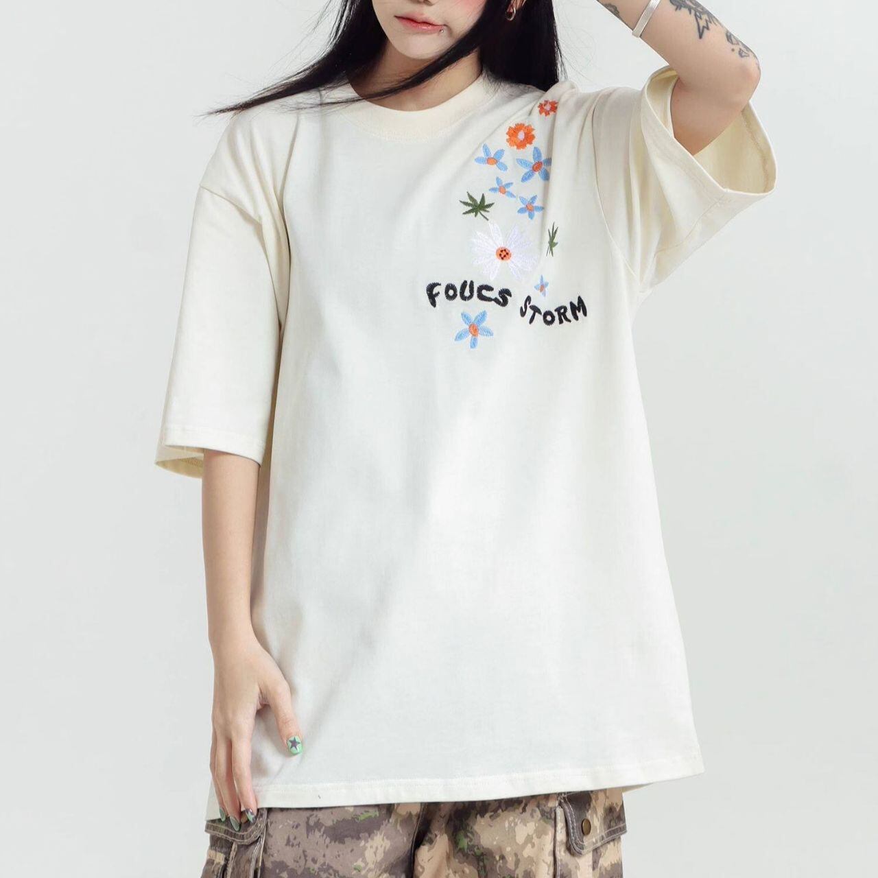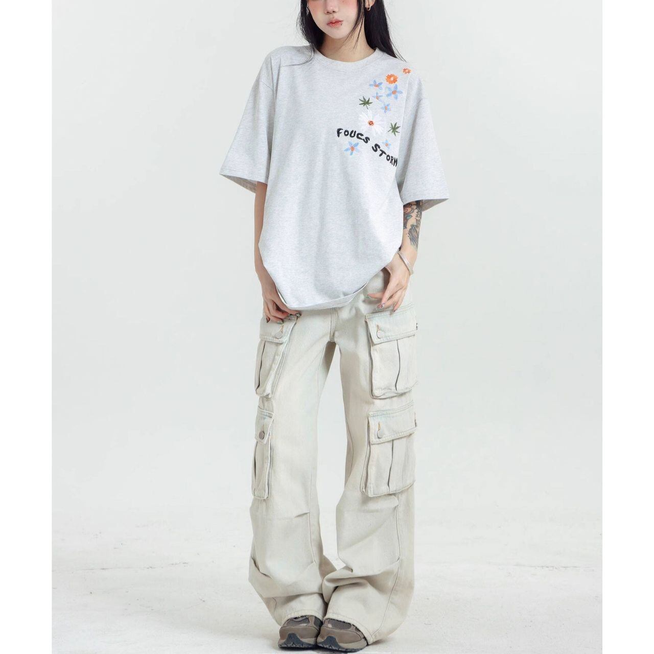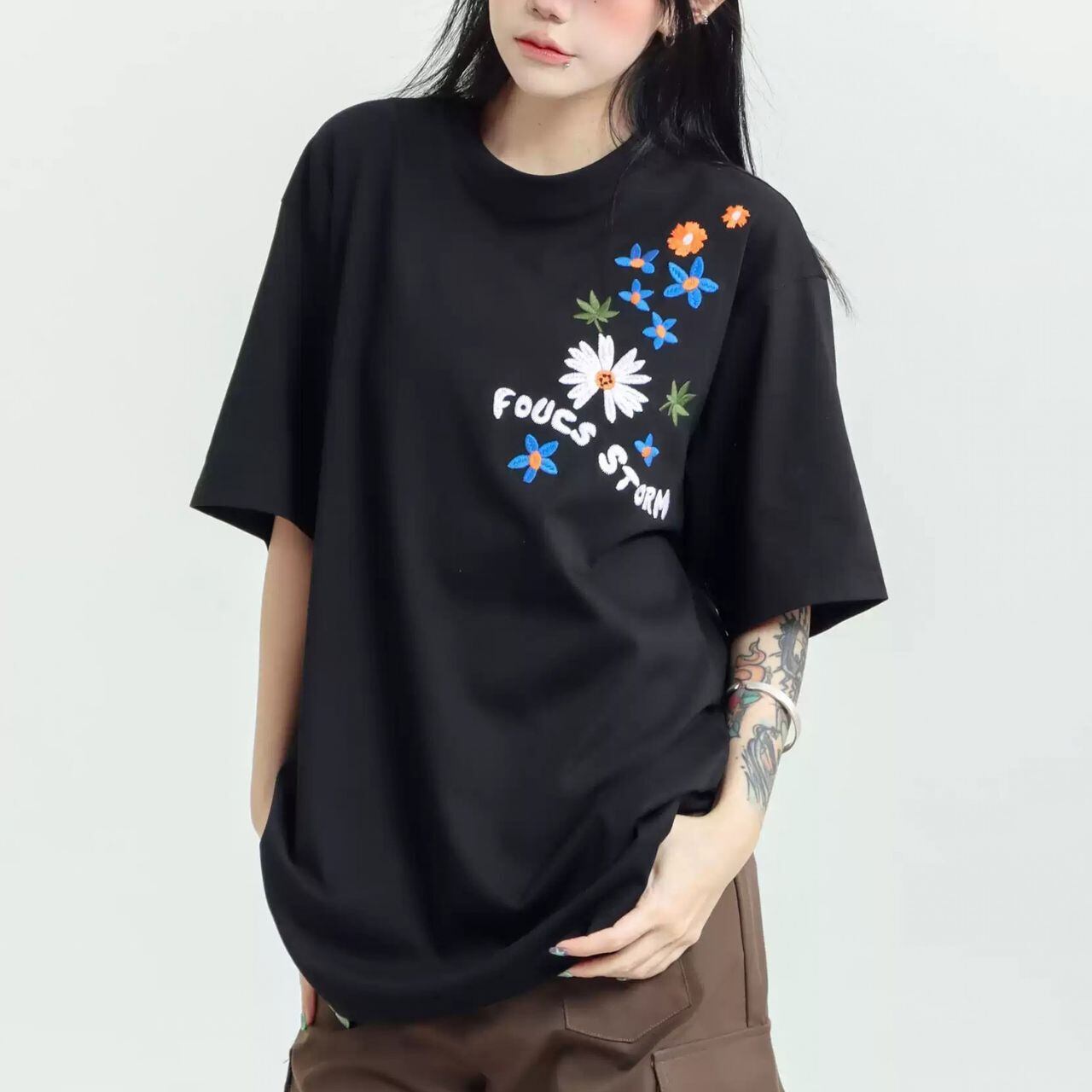フラワーグラフィックロゴアートプリントTシャツ 3col R01959