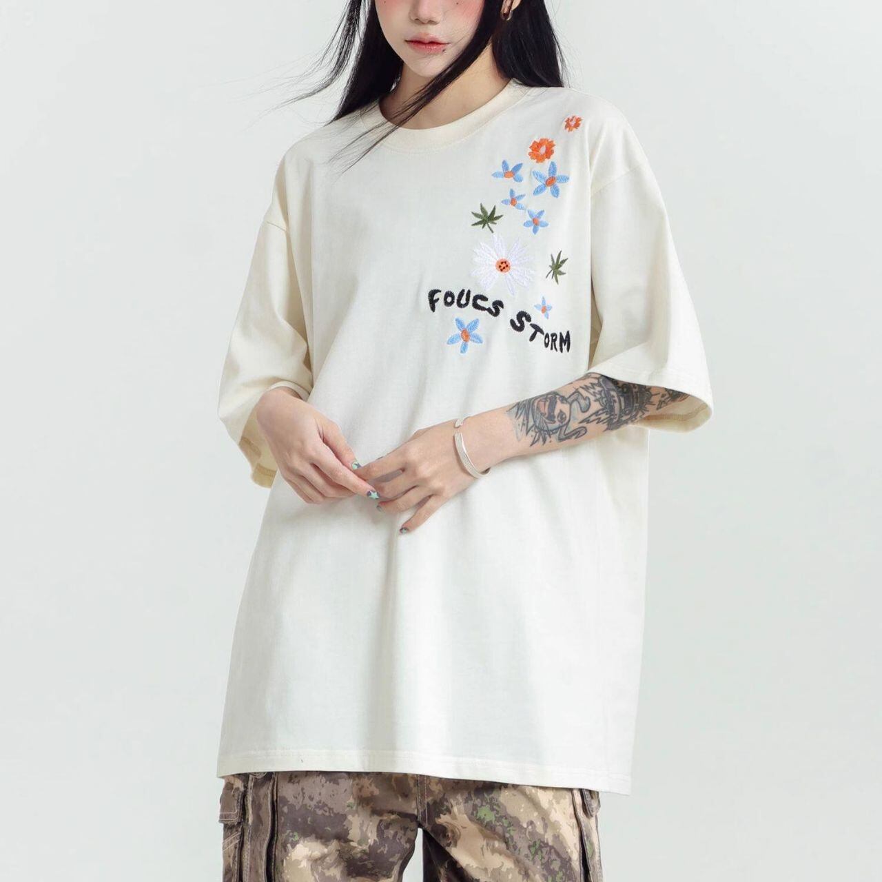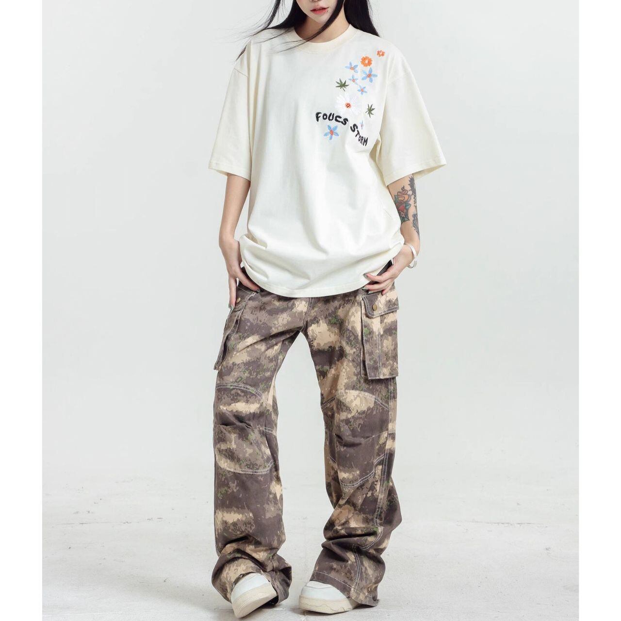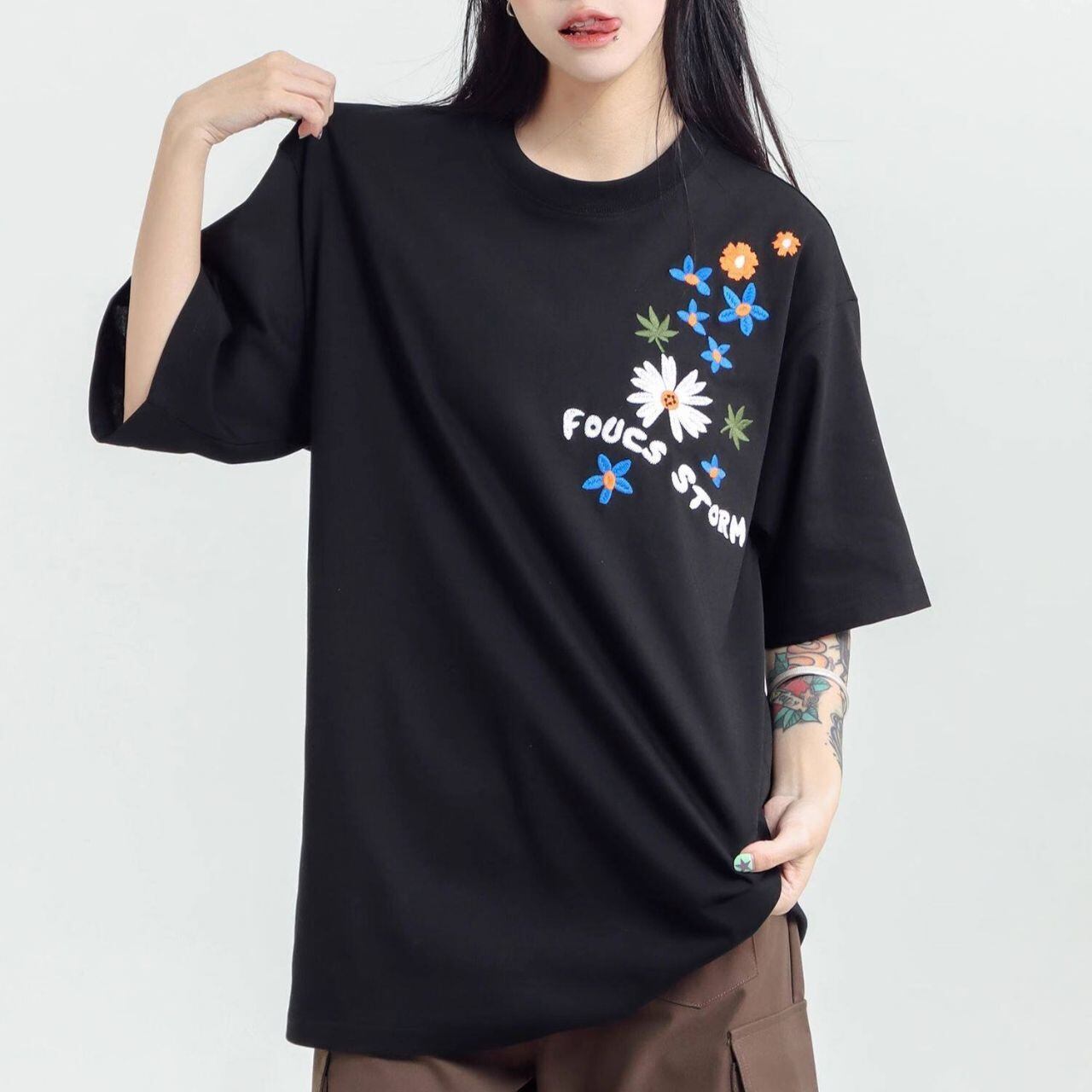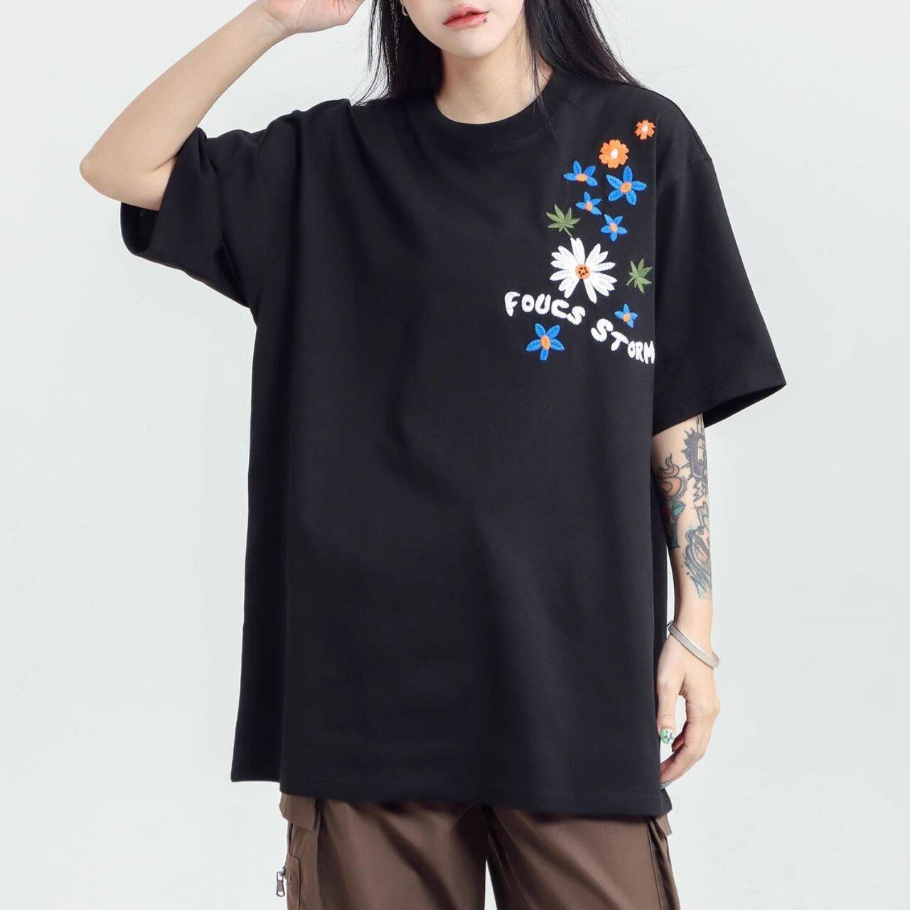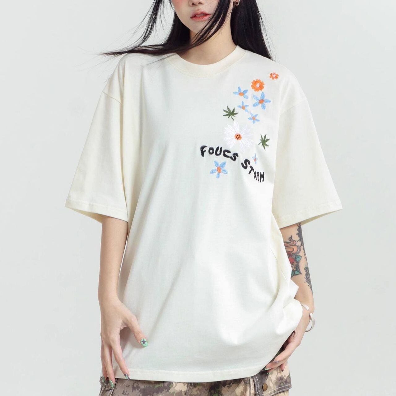フラワーグラフィックロゴアートプリントTシャツ 3col R01959