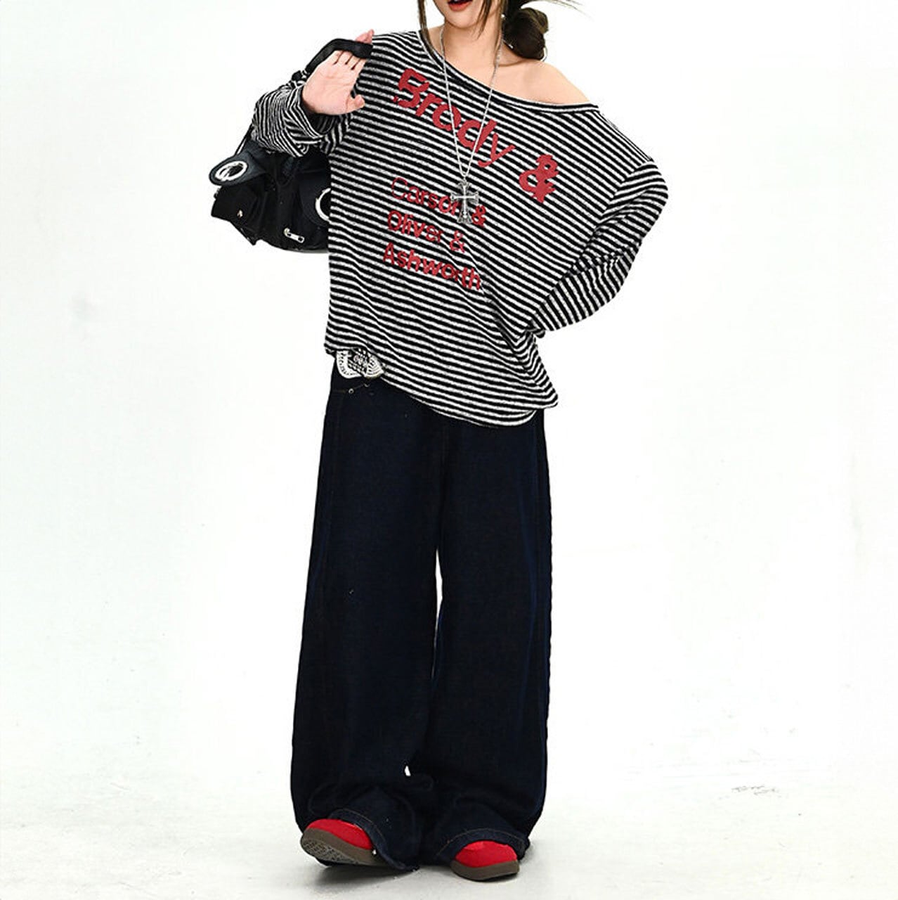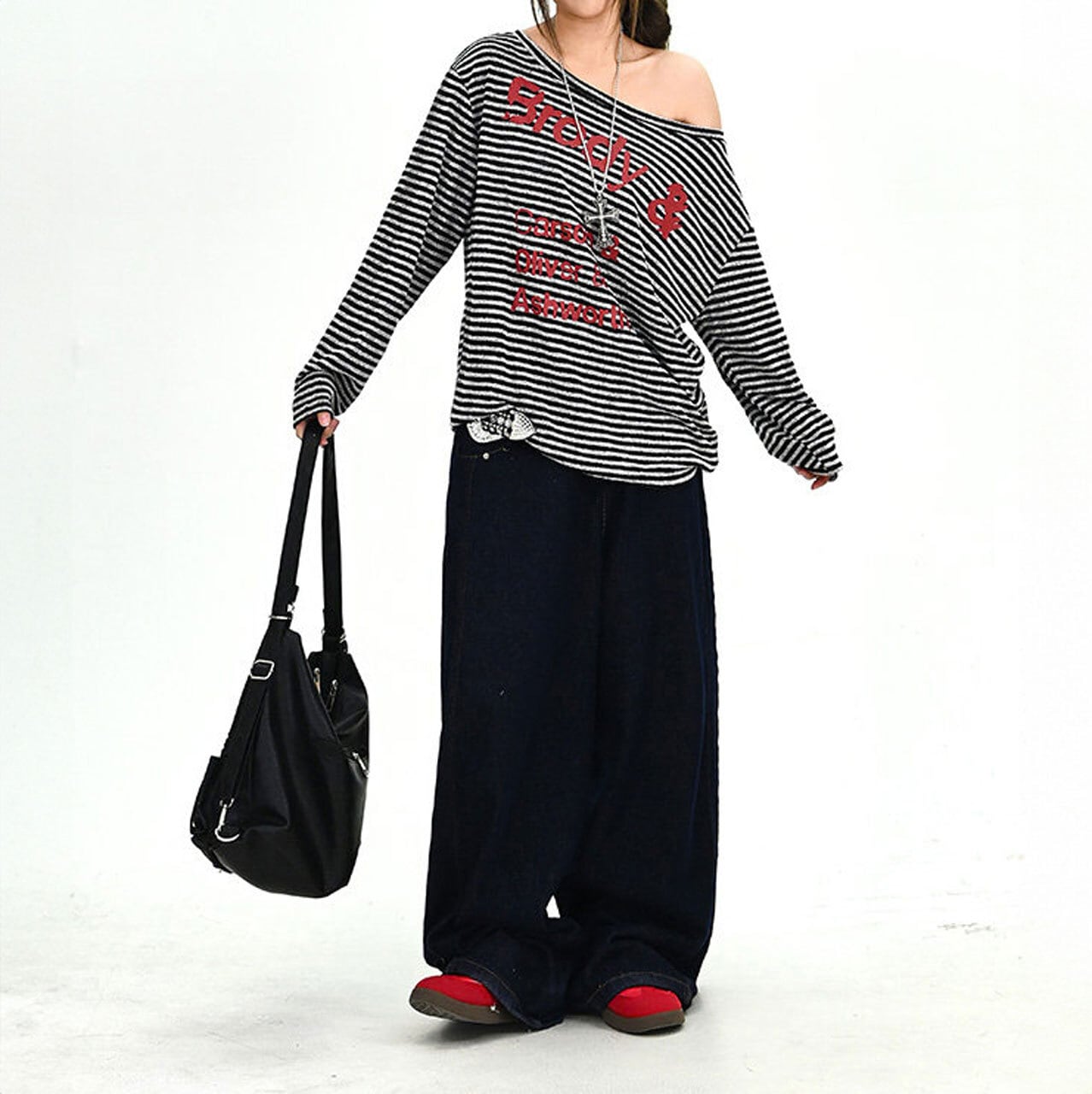 デニムやワイドパンツと合わせたラフな着こなしで、ストリートムードを楽しめる一枚。