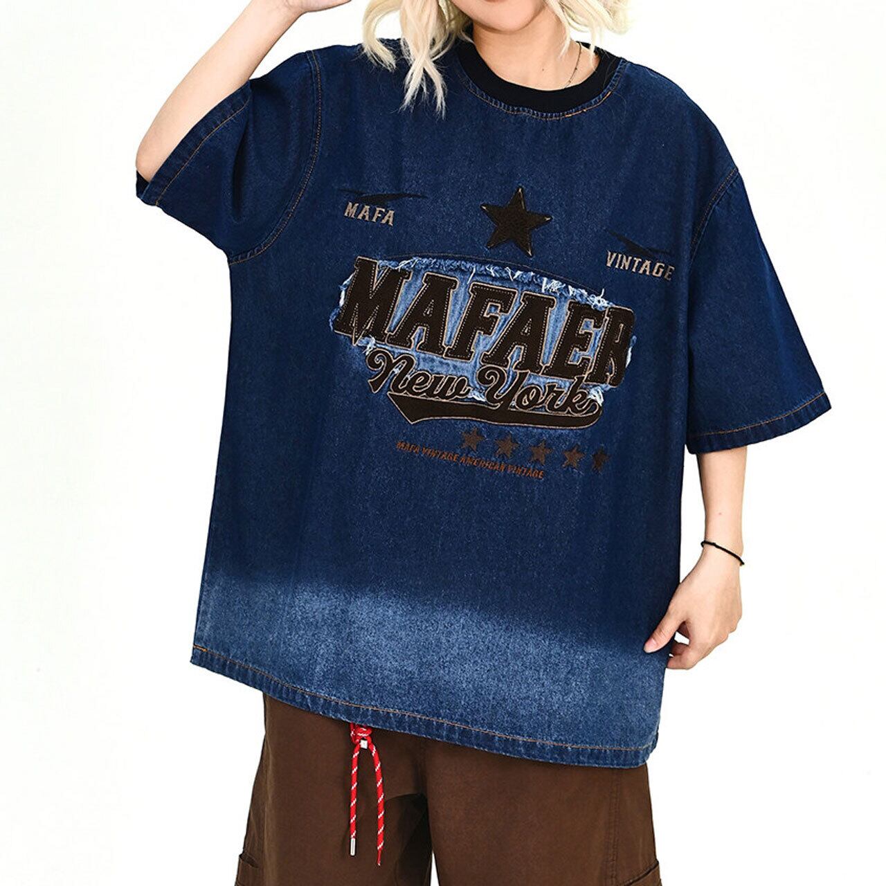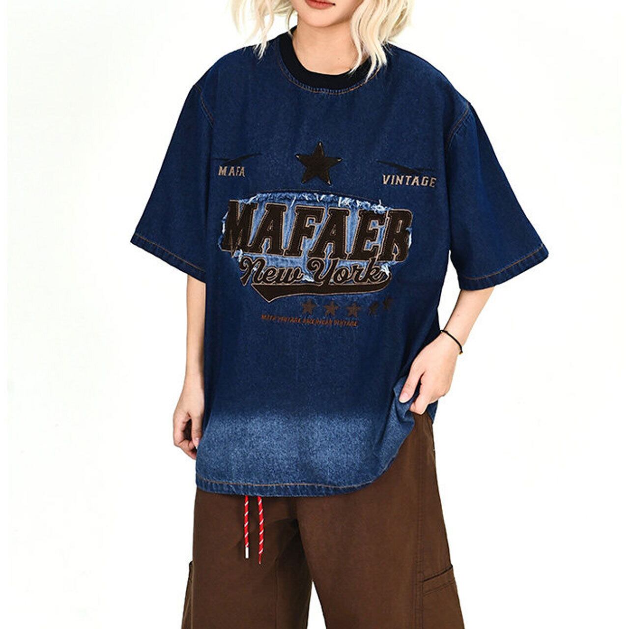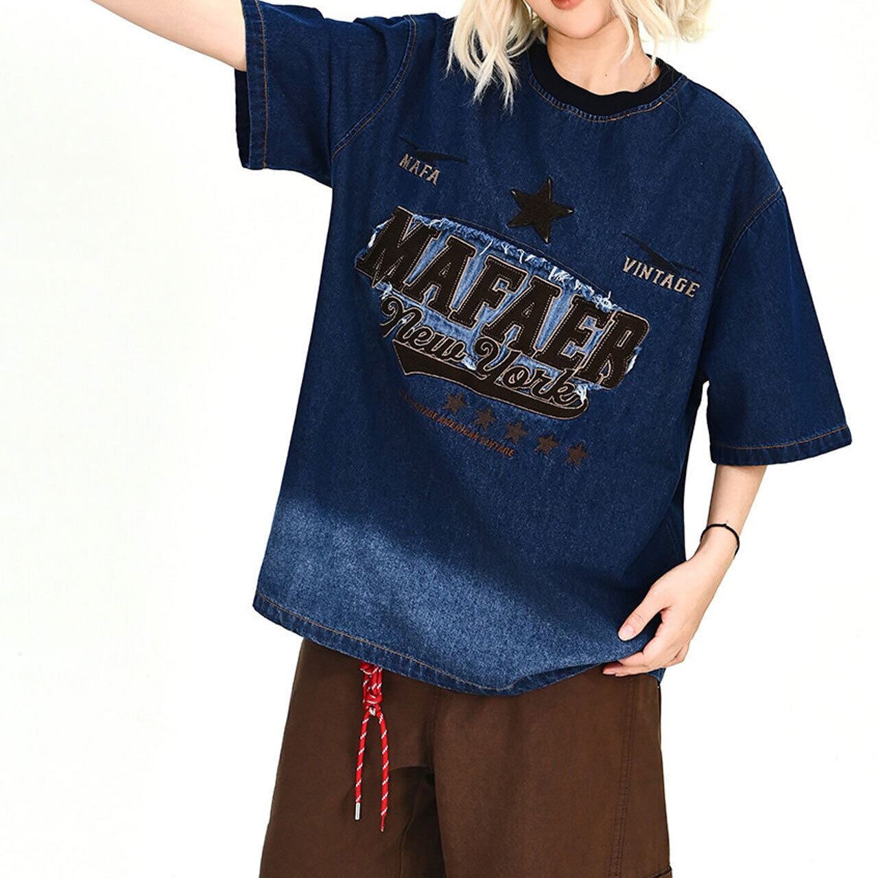 ヴィンテージライクグラデーションデニムTシャツ 1col R01916