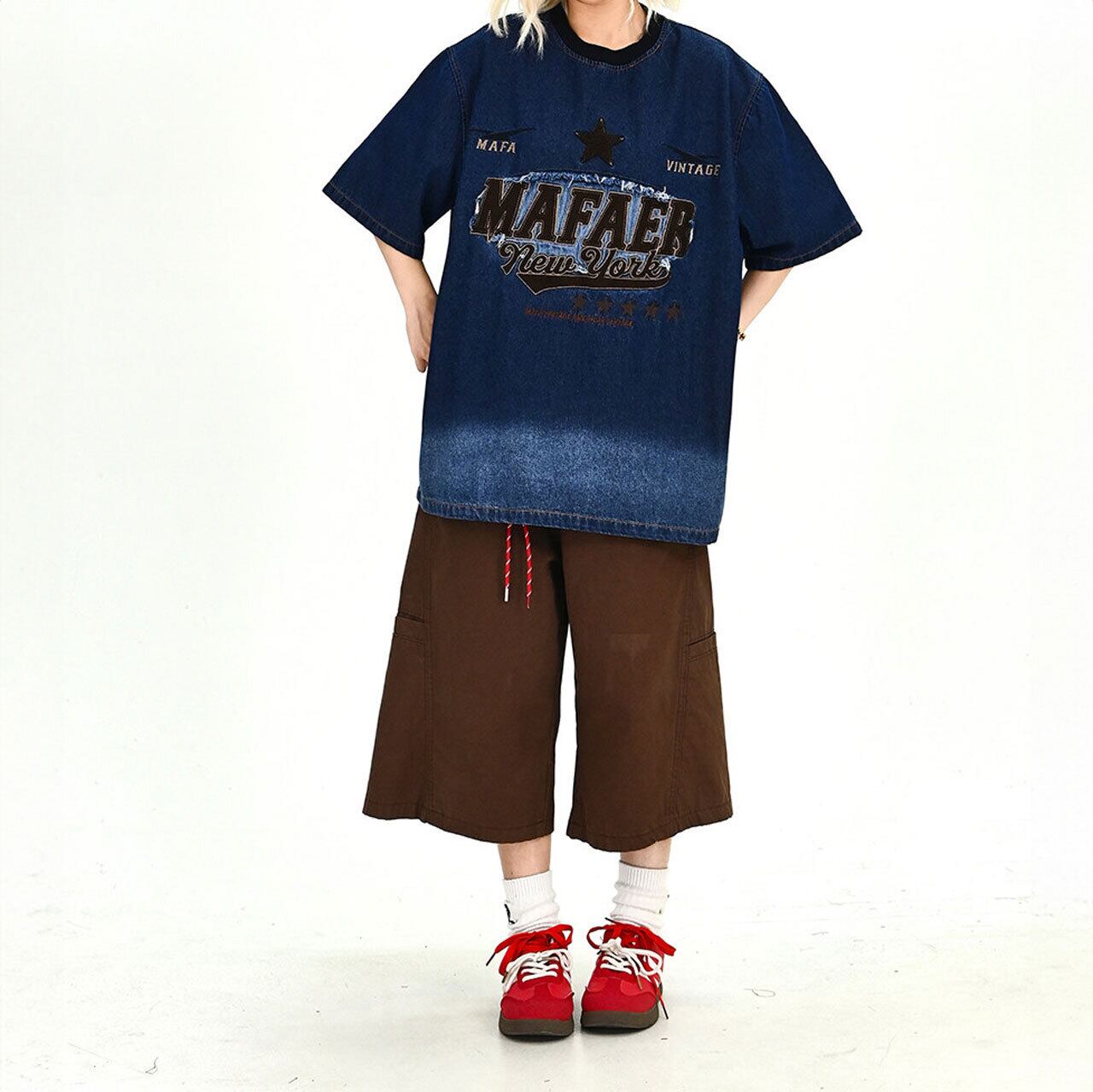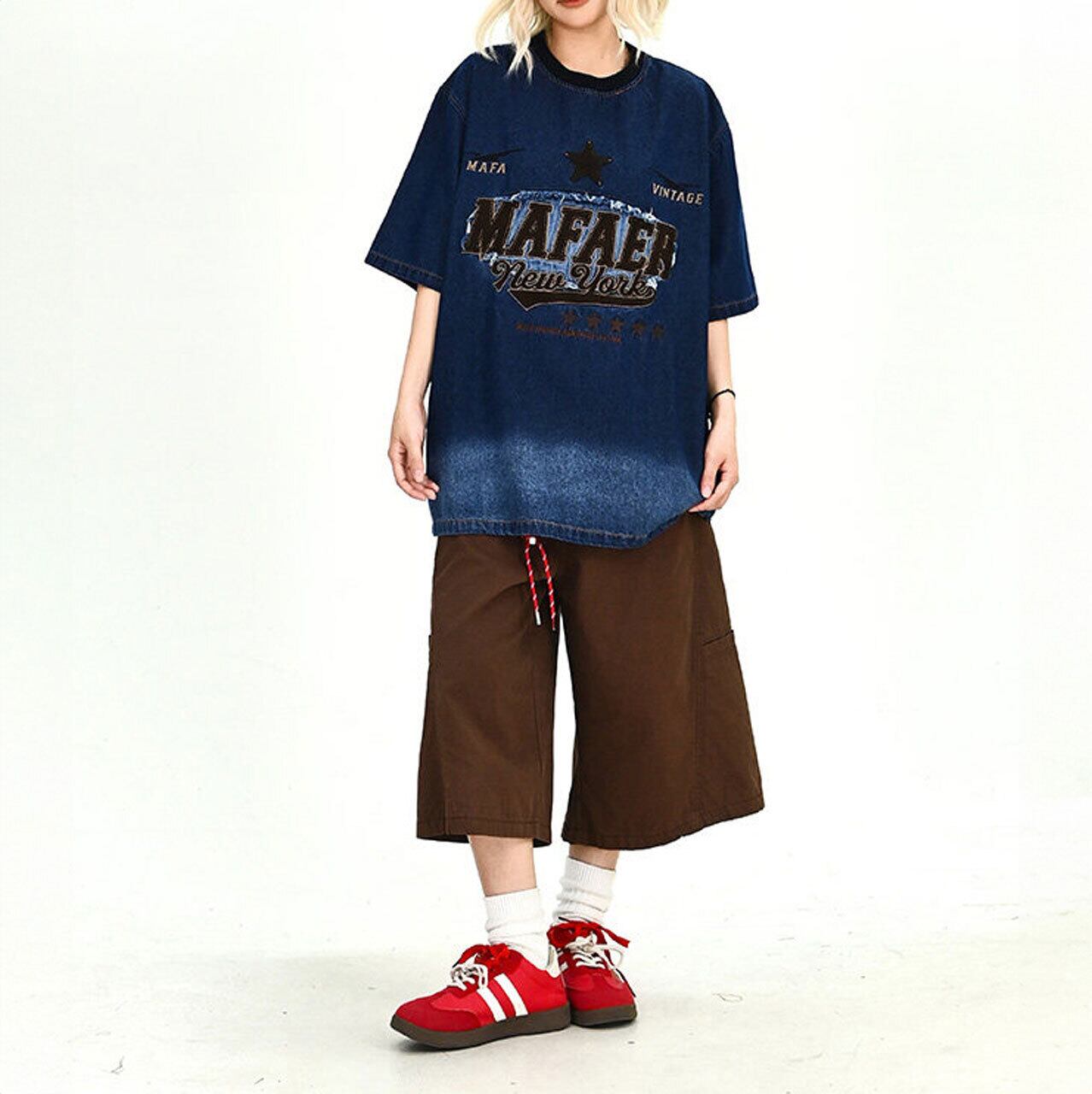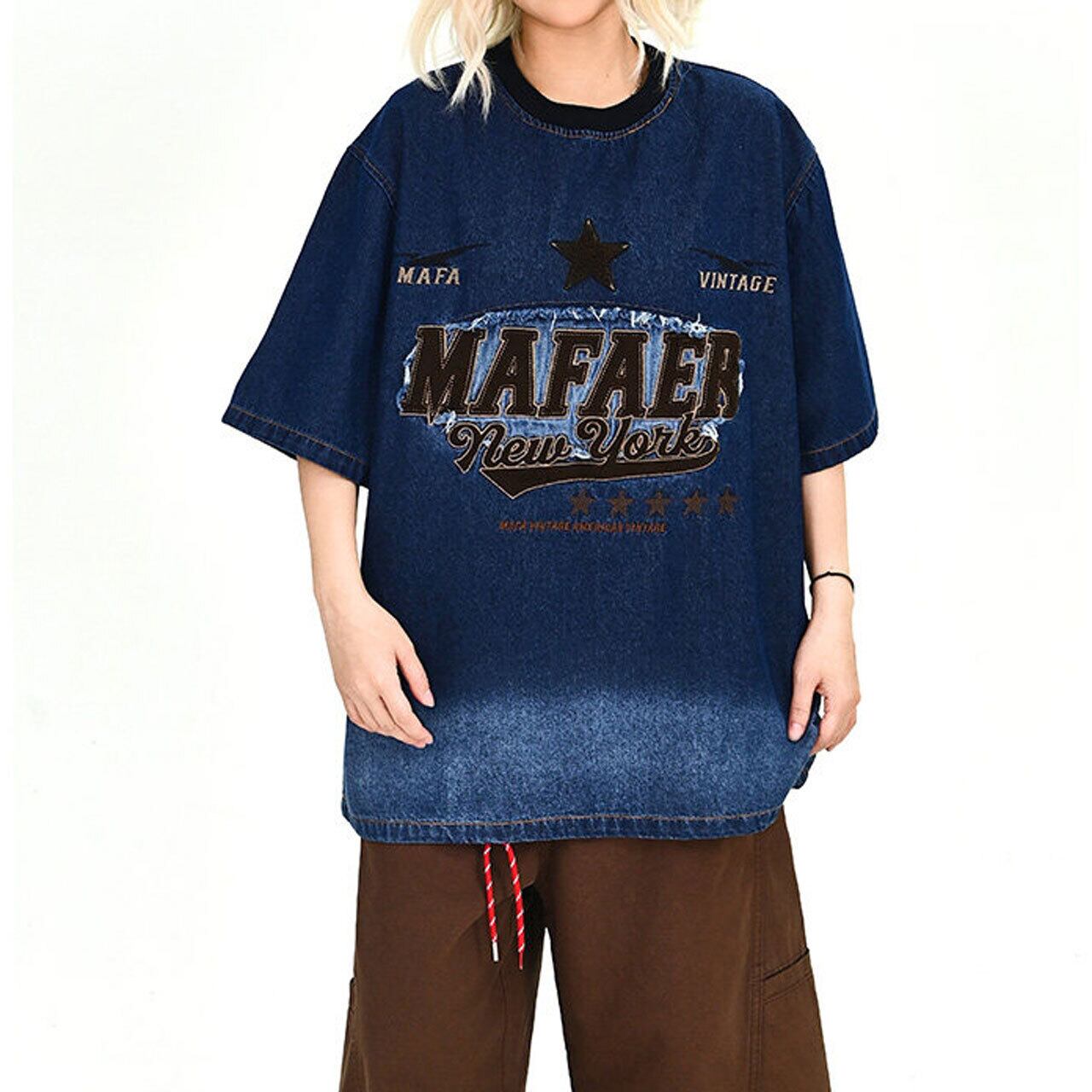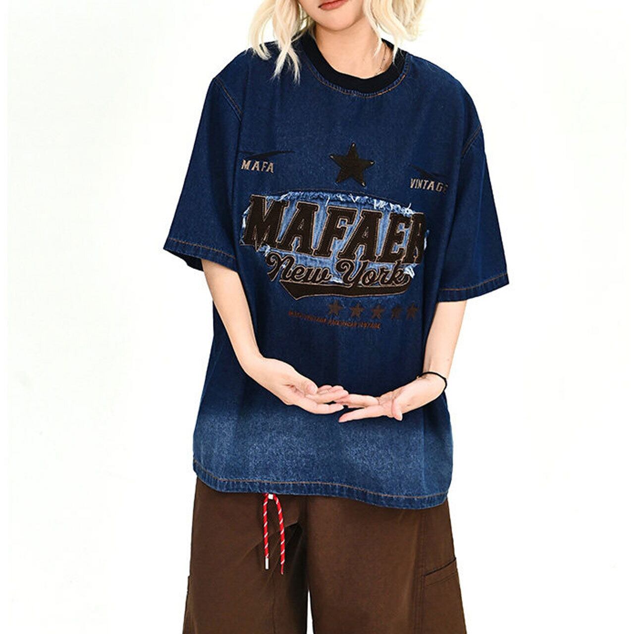 ヴィンテージライクグラデーションデニムTシャツ 1col R01916