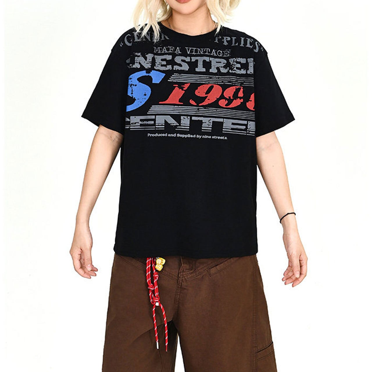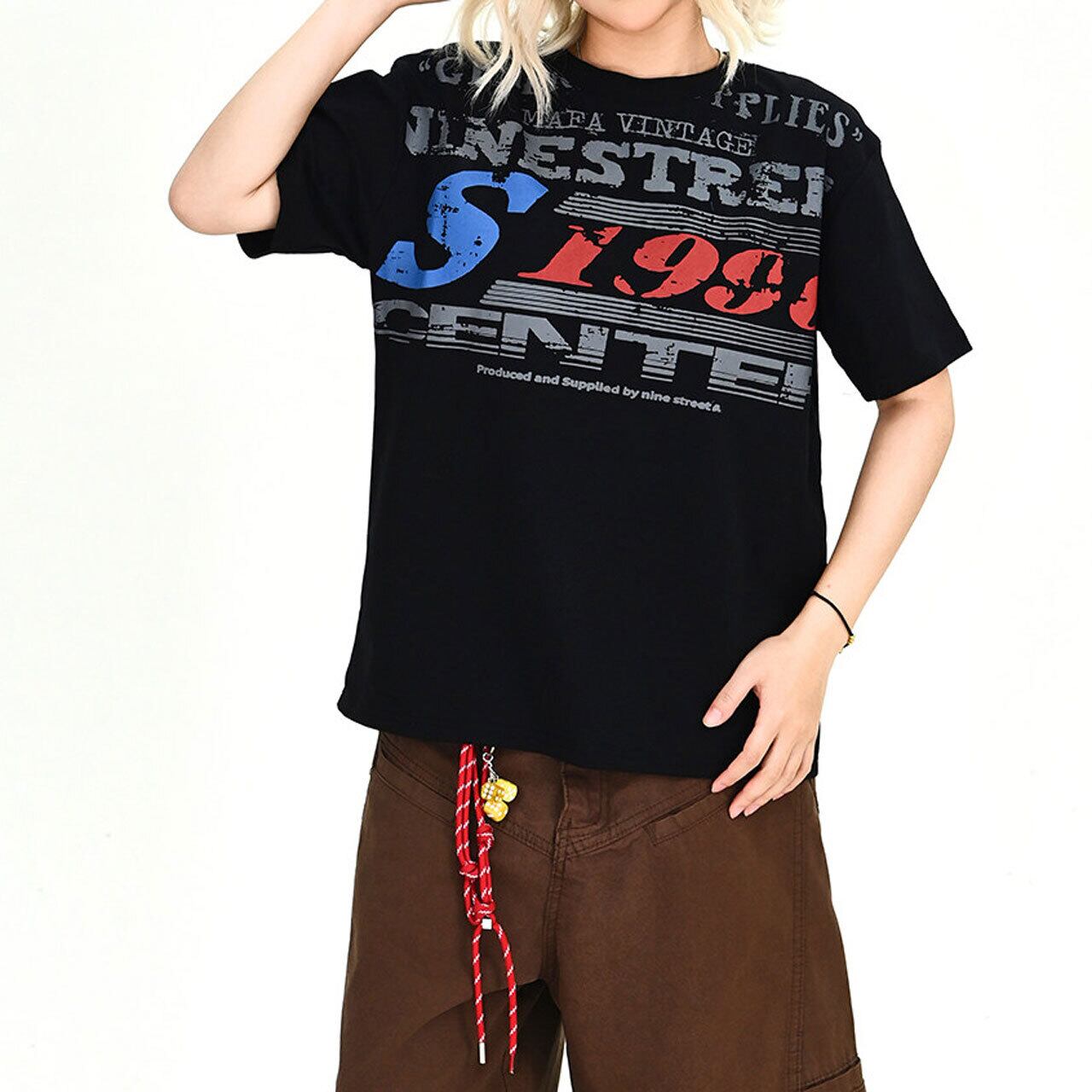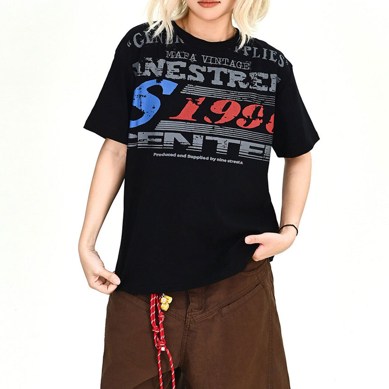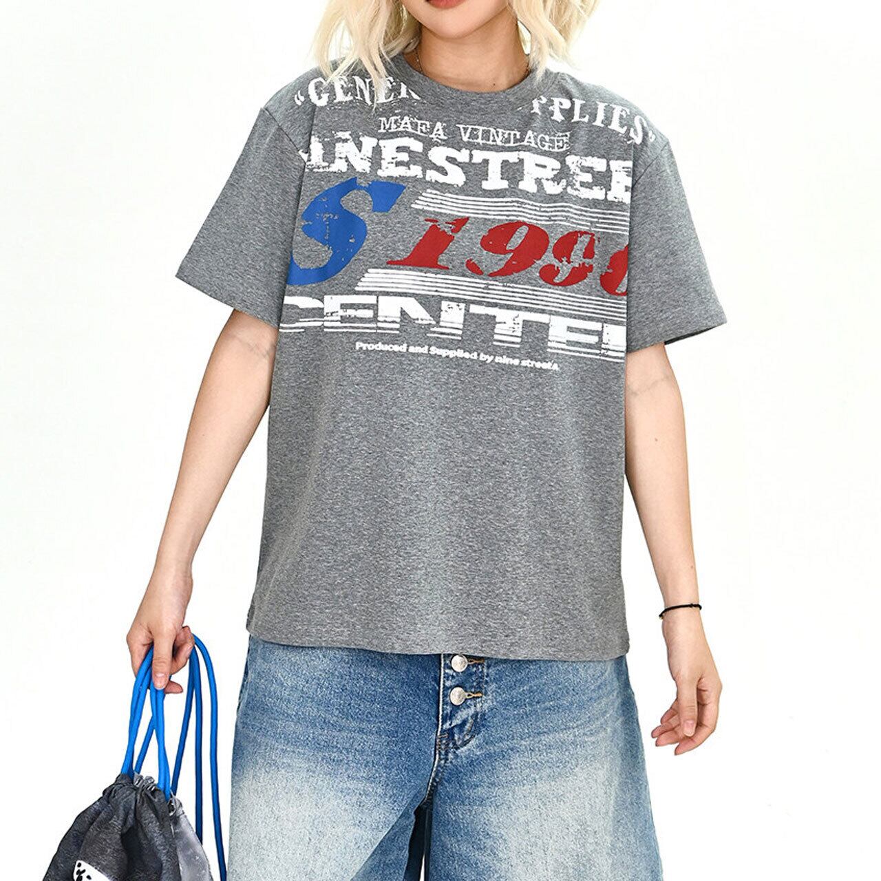 掠れた質感のデザインや大胆に配置されたナンバー、英字モチーフが、ストリートスタイルにこなれ感をプラスします。