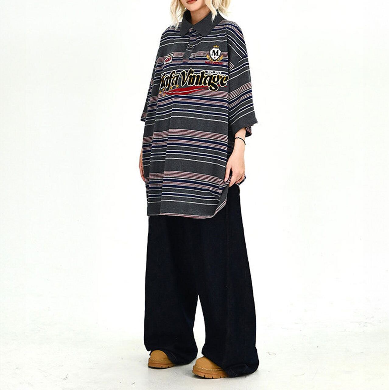 程よいピッチのボーダーが着こなしにリズムを生み、1枚でポップなカジュアルスタイルが完成します。
