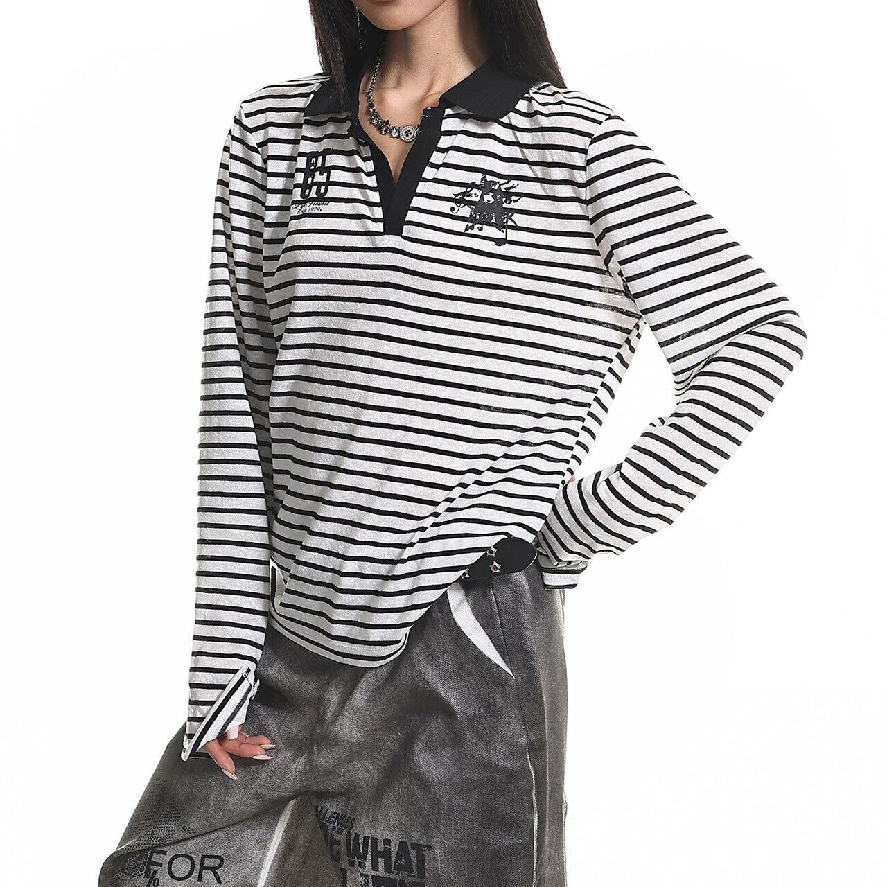 スキッパーカラーボーダーリラックスTシャツ 2col R01967
