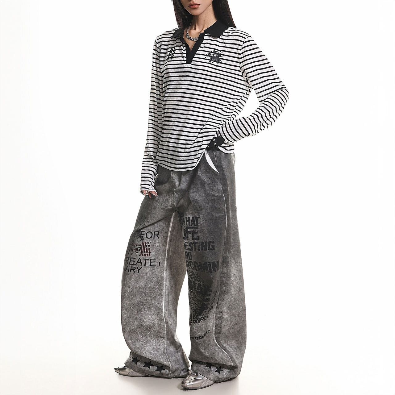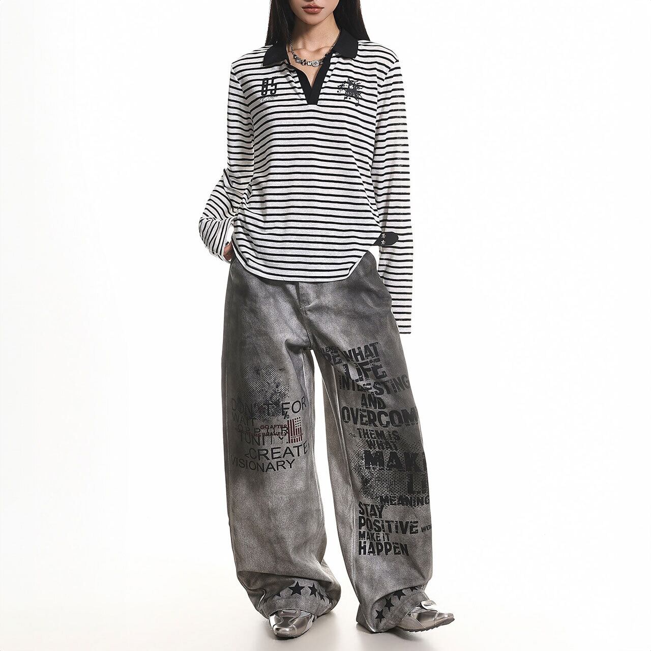 フロントのアイコニックなアクセントが、シンプルなボトムスとの合わせでも個性を引き立てます。