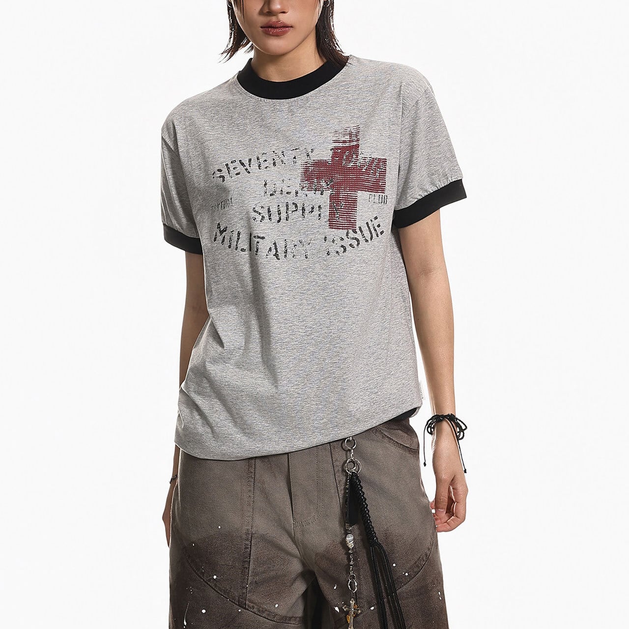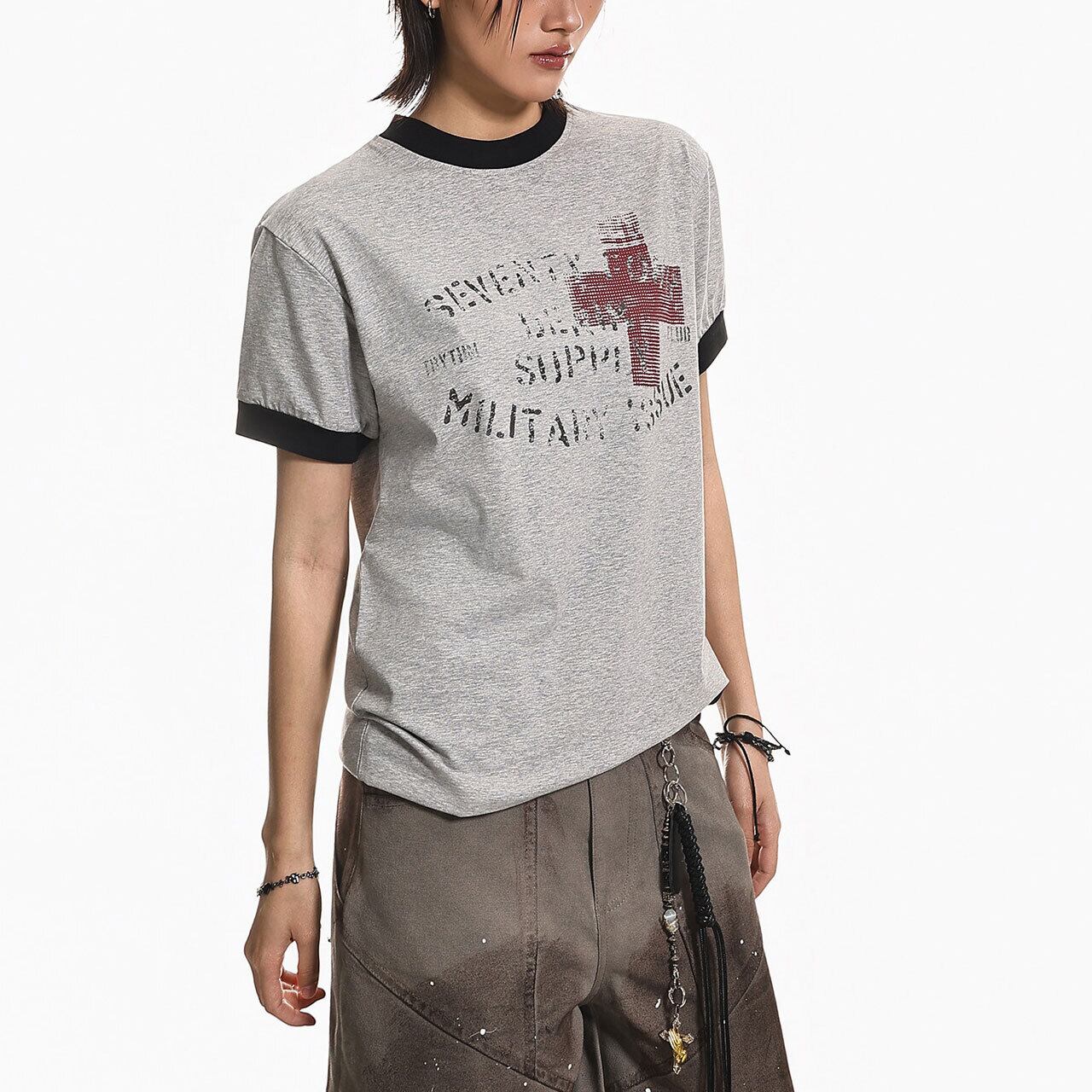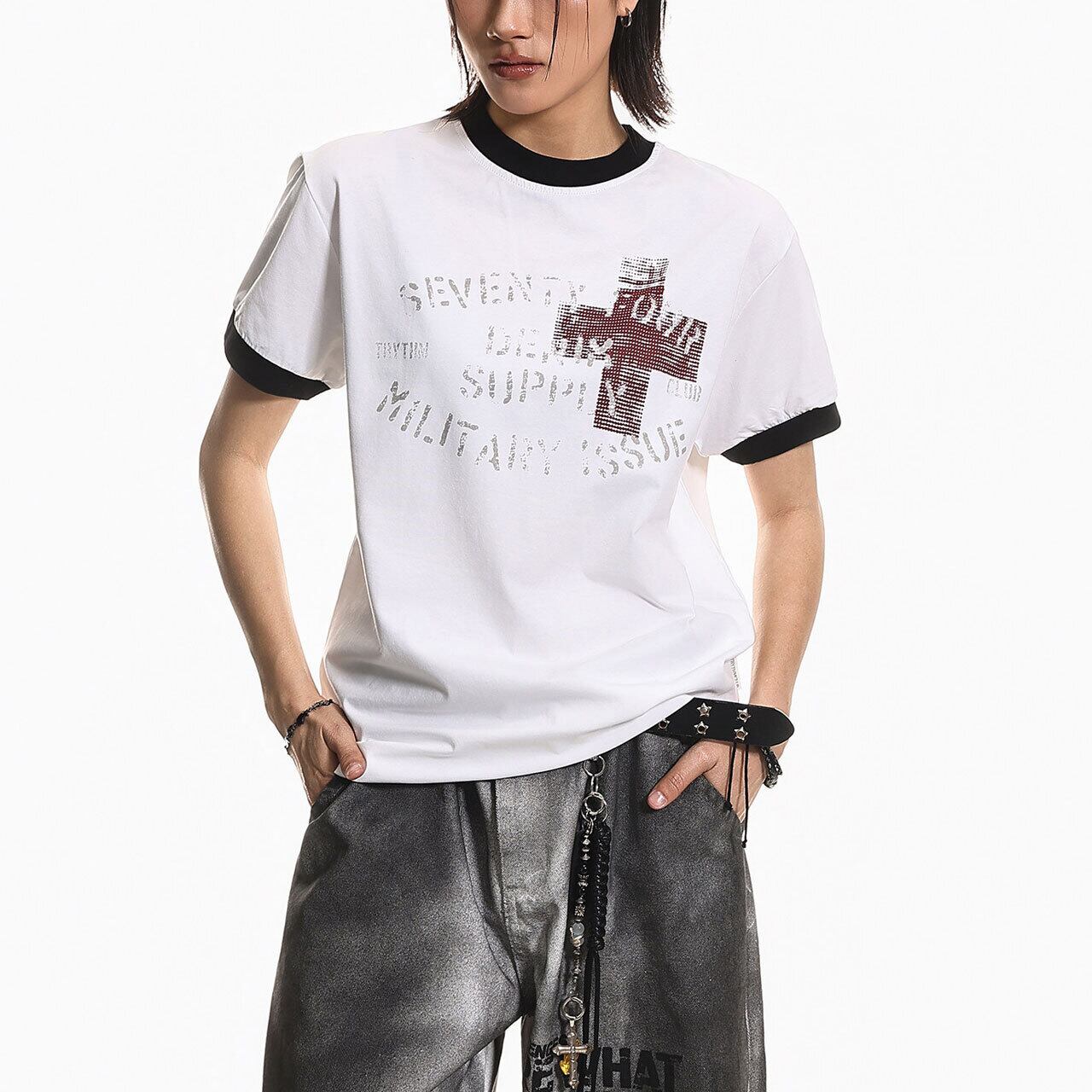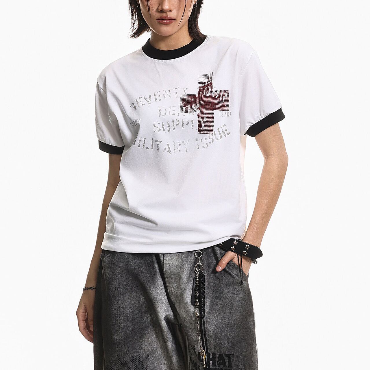 クロスプリントリンガーTシャツ 2col R01973