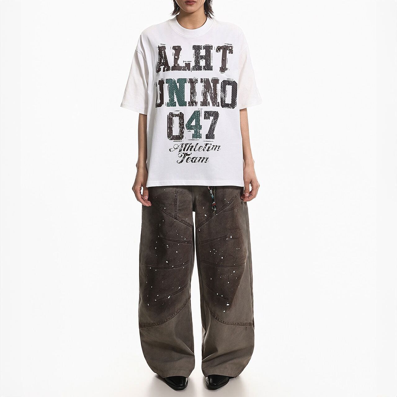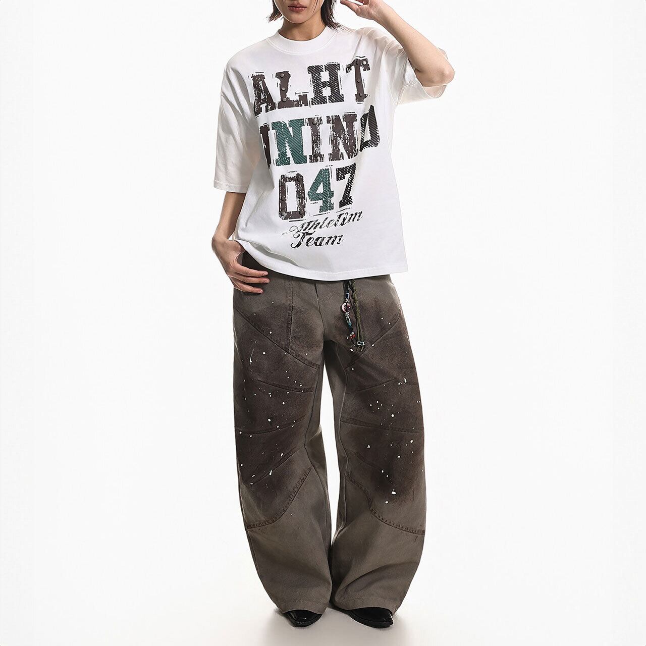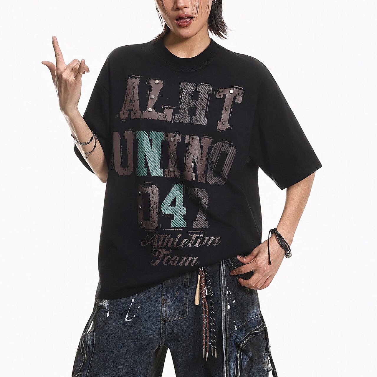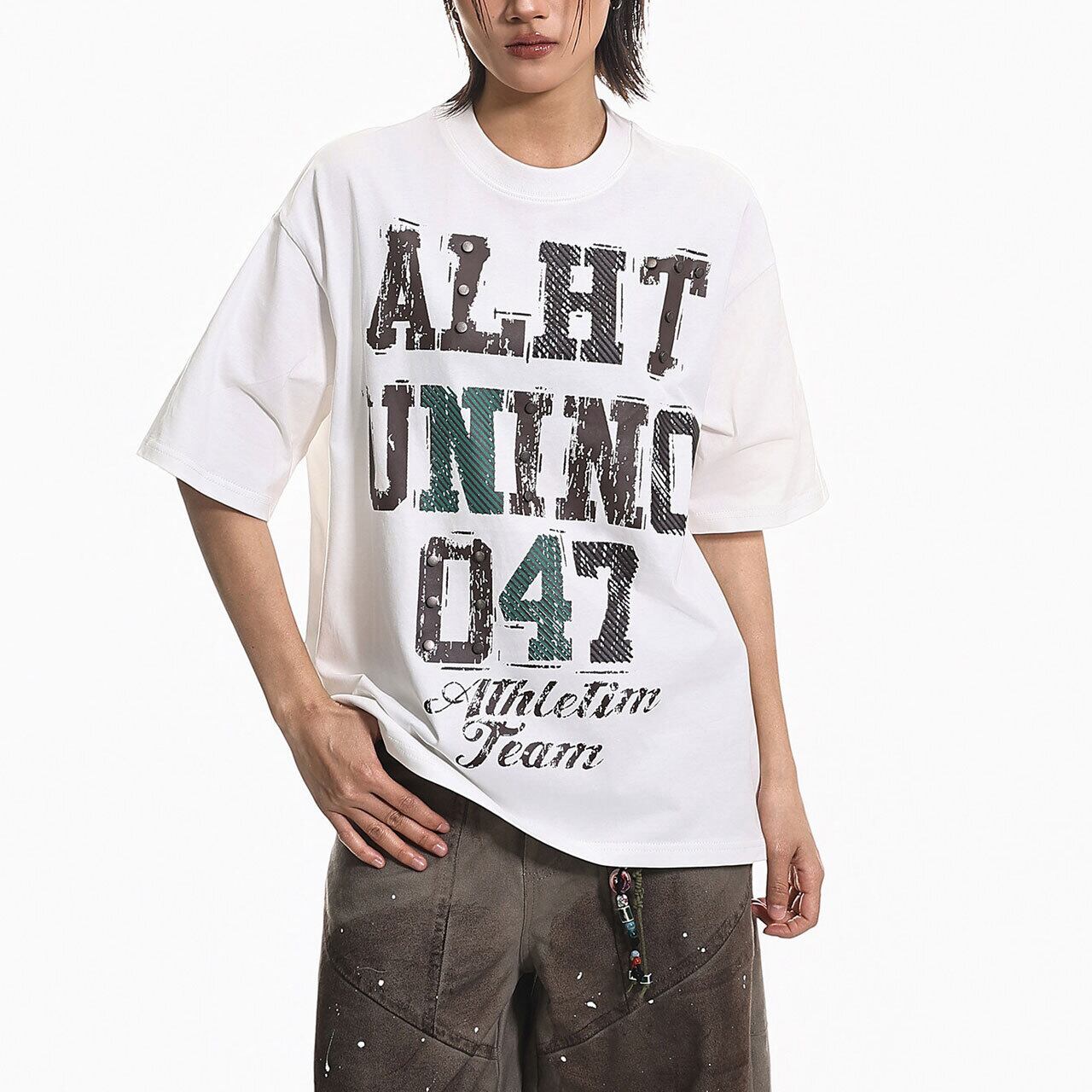 スタッズアクセントグラフィックTシャツ 2col R01975